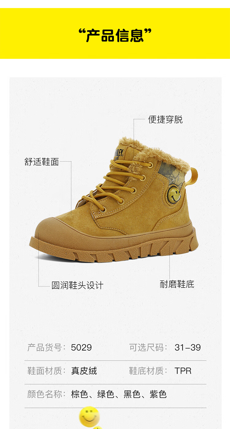 SMILEY童鞋儿童时尚马丁靴春季新款女童洋气短靴小皮靴黑色低帮鞋子 棕色 39 内长25.3cm