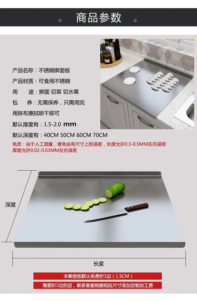 溥畔m加厚不锈钢菜板面板和面板砧板厨房双面特大揉面案板 私人订制拒绝退换
