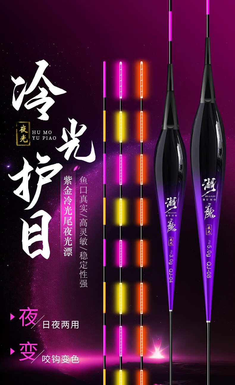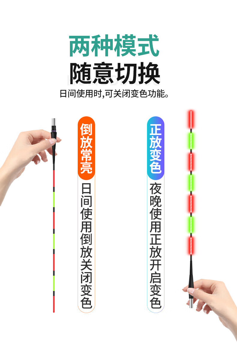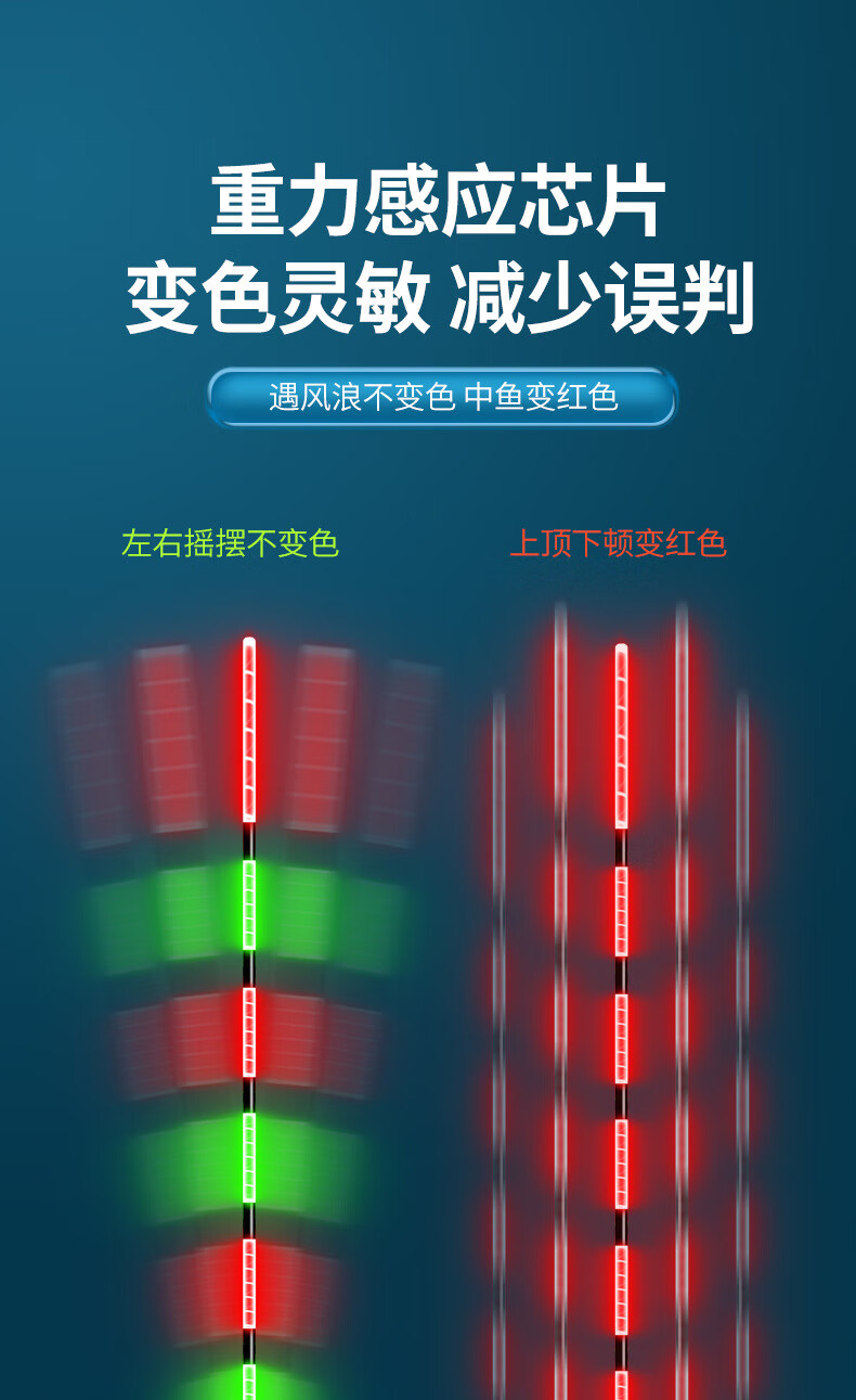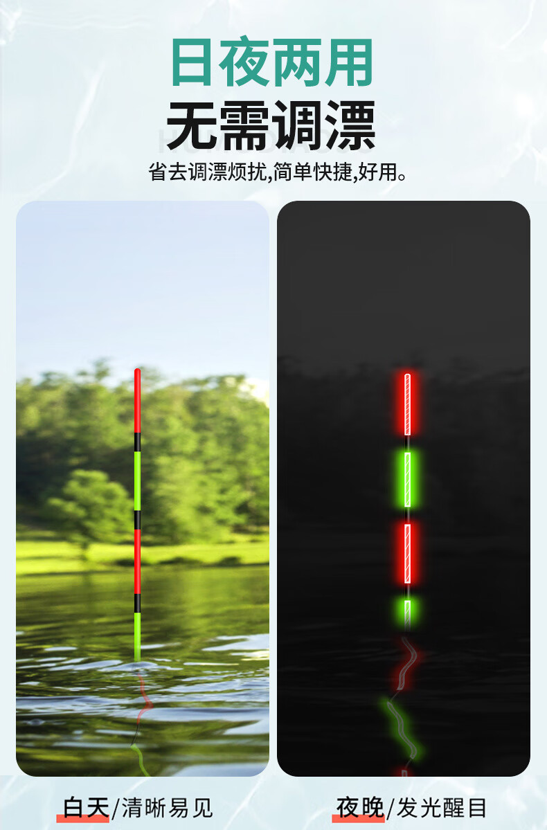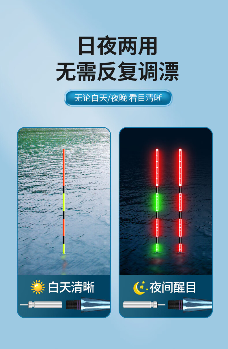 【甄选百货】鱼漂夜光漂电子漂咬钩变色浮漂日夜两用钓鱼具鲫鱼漂 镂空激光硬尾【DM03 铅2.1克】 不变色水无影【管装+送电池】