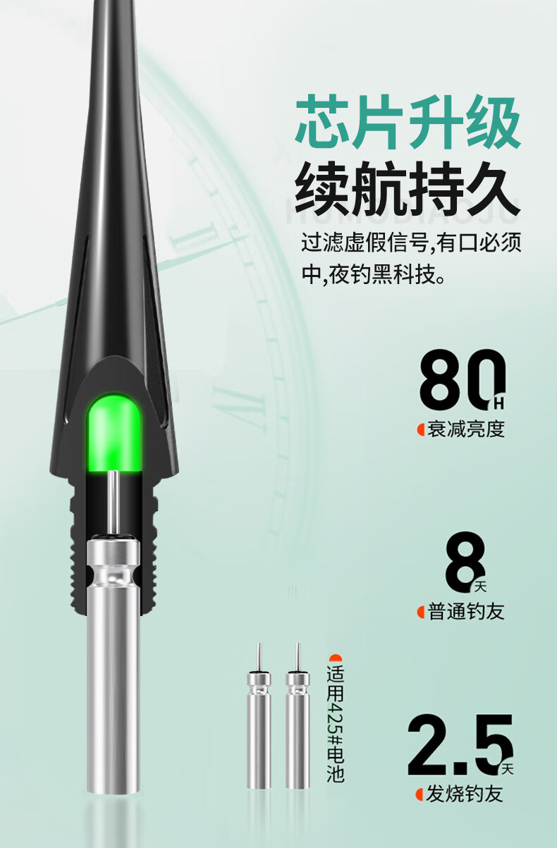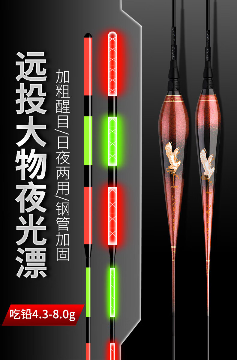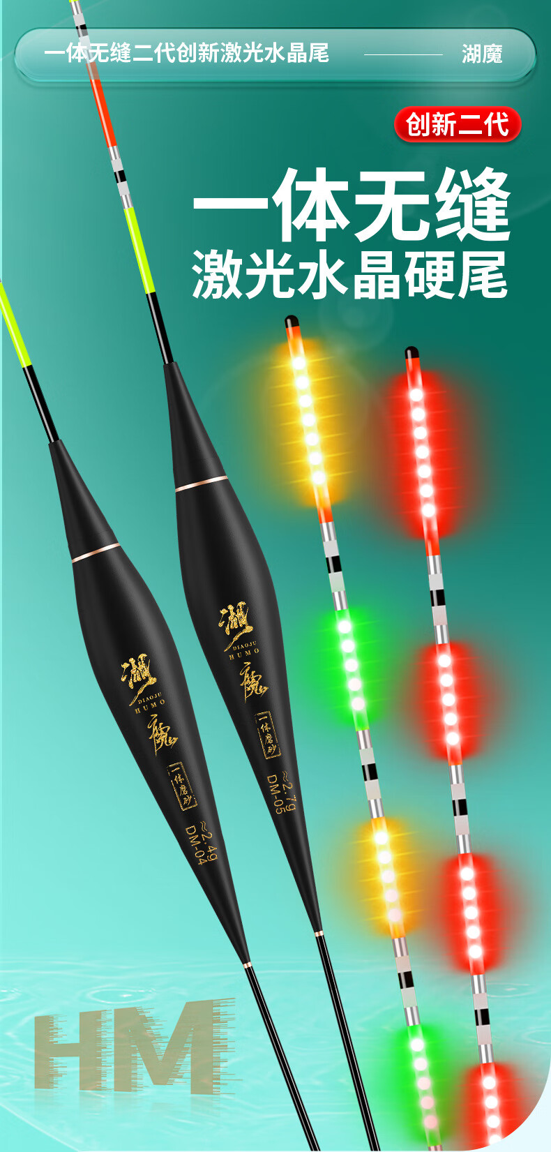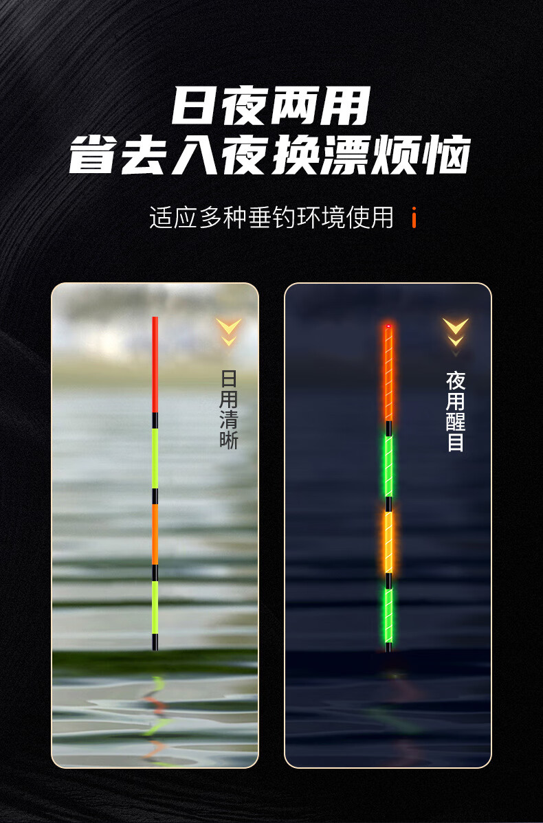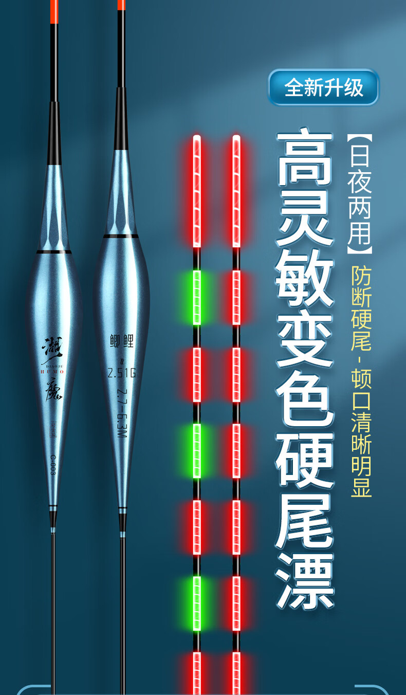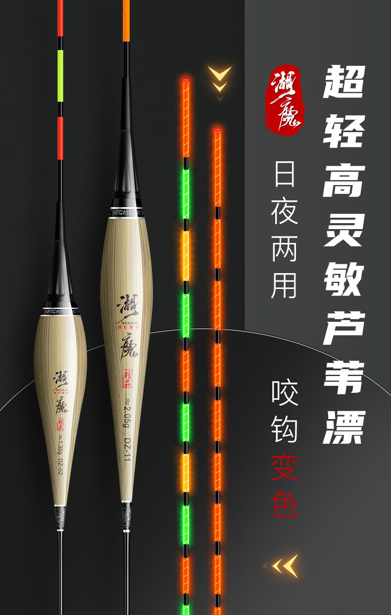 【甄选百货】鱼漂夜光漂电子漂咬钩变色浮漂日夜两用钓鱼具鲫鱼漂 镂空激光硬尾【DM03 铅2.1克】 不变色水无影【管装+送电池】