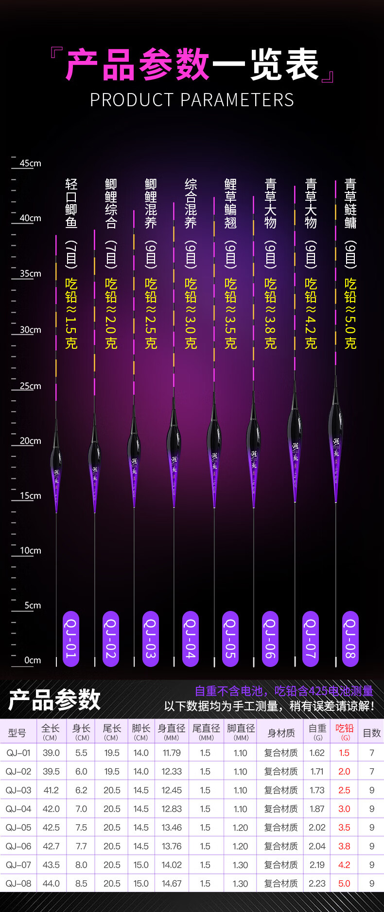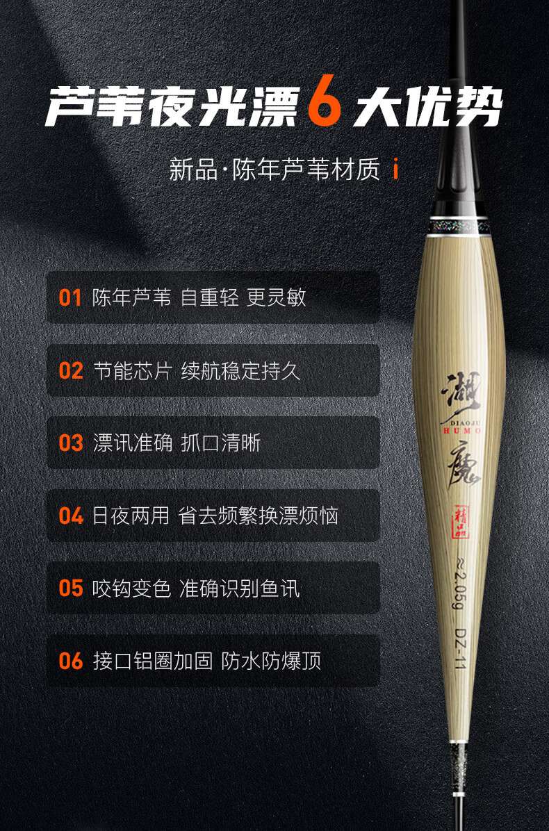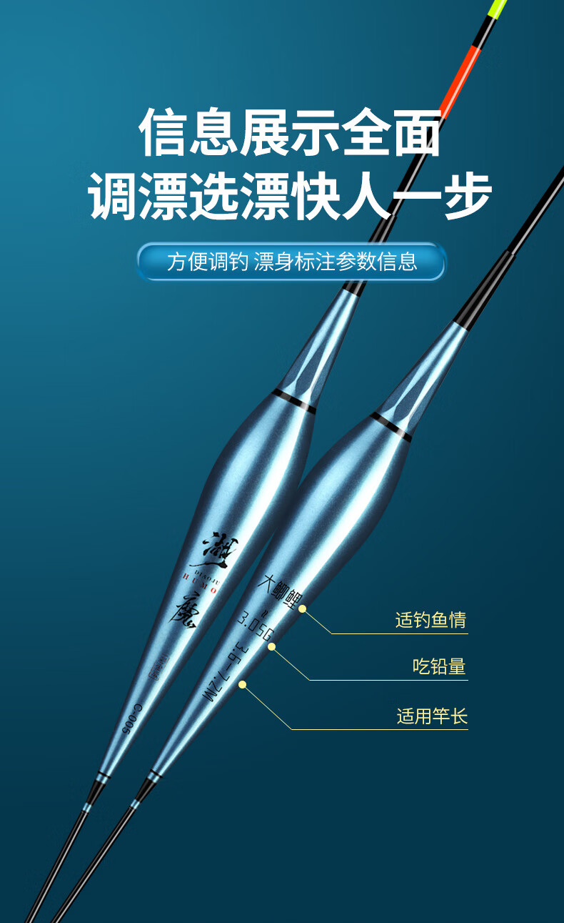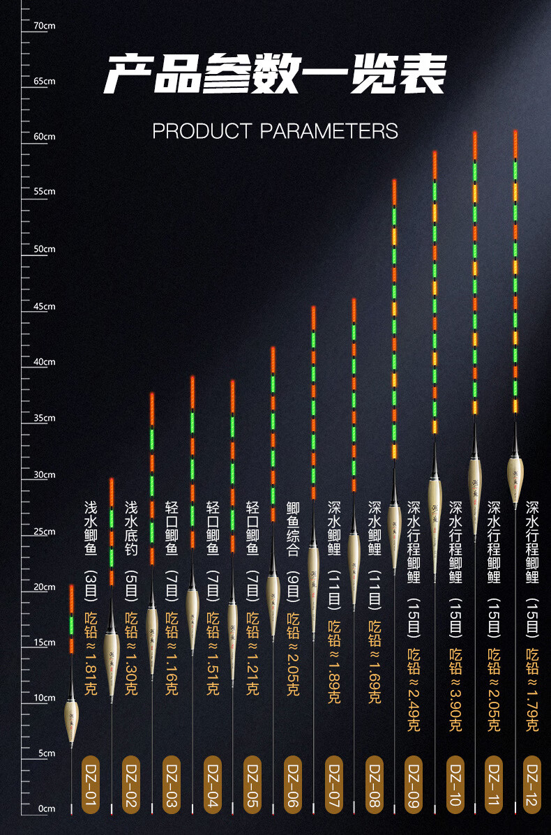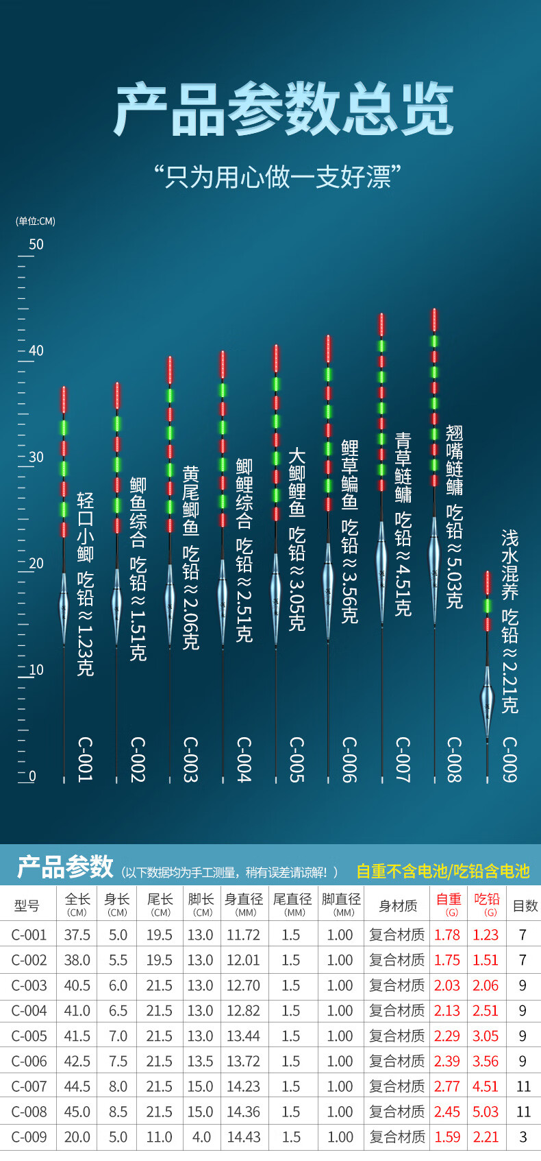 【甄选百货】鱼漂夜光漂电子漂咬钩变色浮漂日夜两用钓鱼具鲫鱼漂 镂空激光硬尾【DM03 铅2.1克】 不变色水无影【管装+送电池】