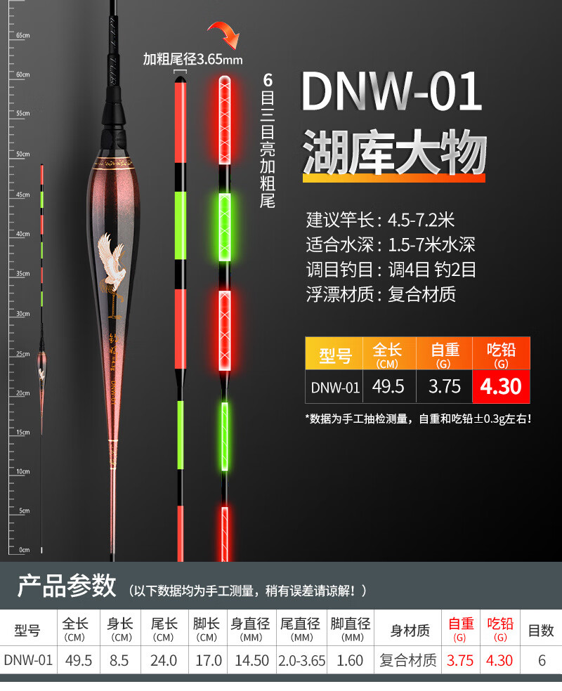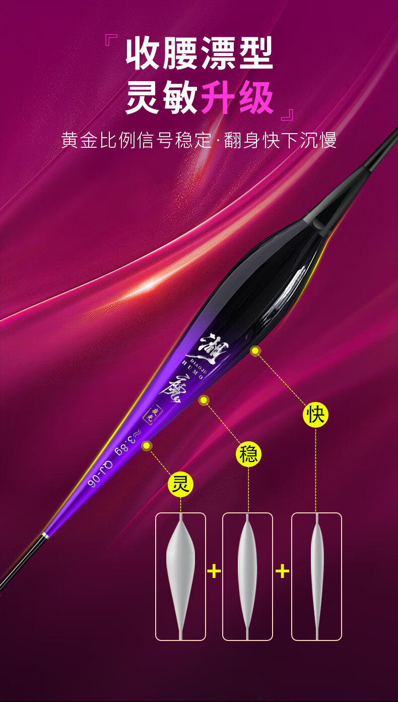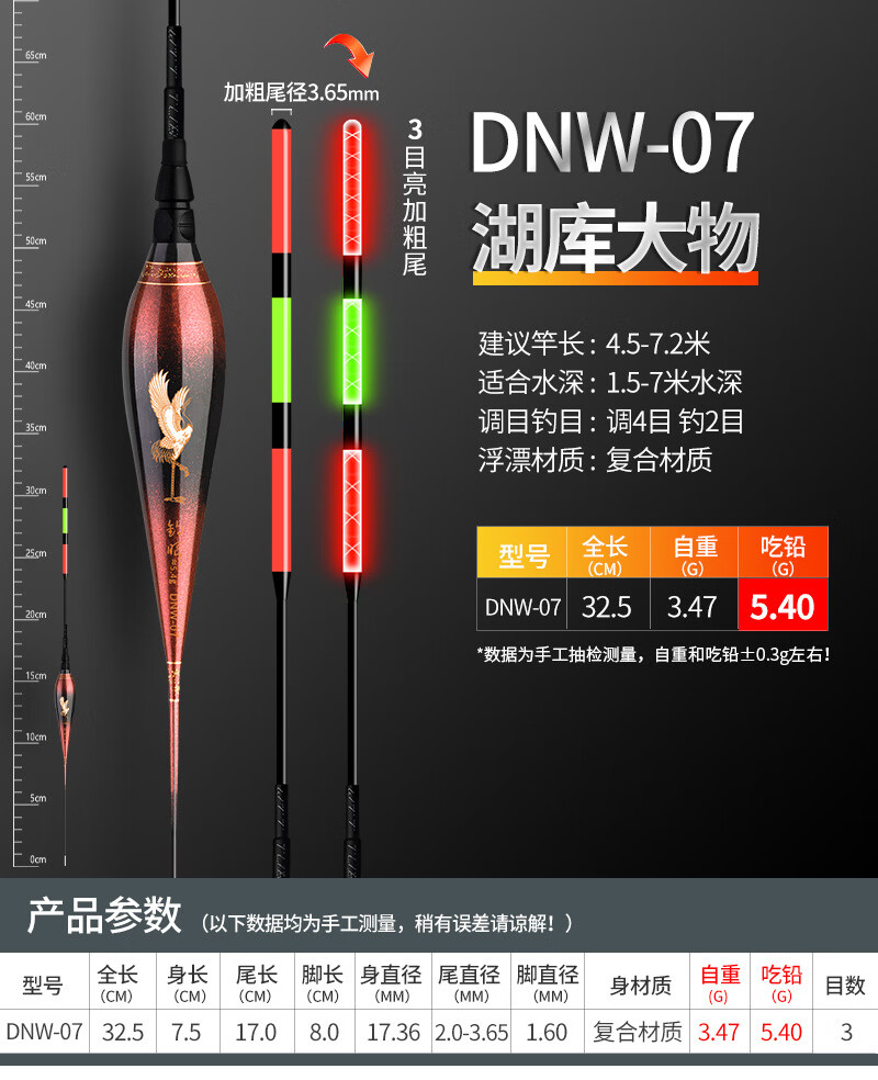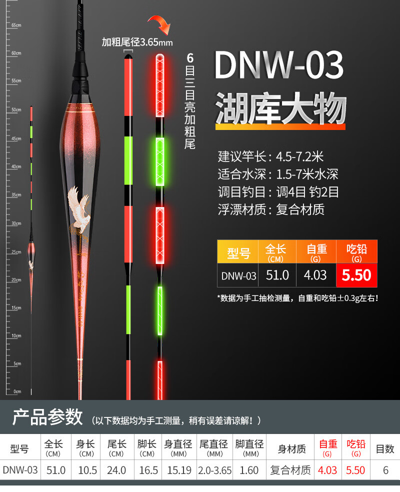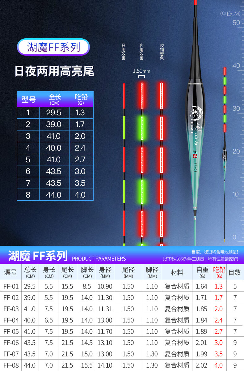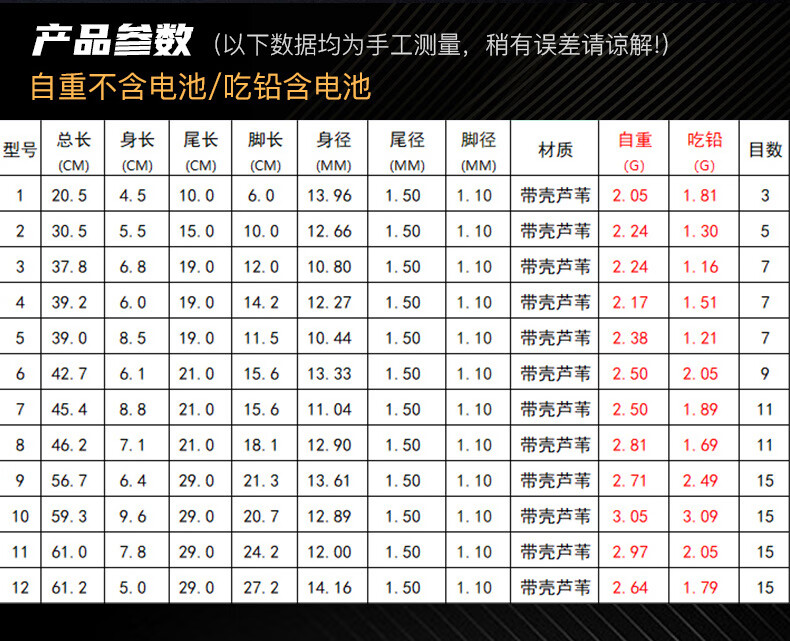 【甄选百货】鱼漂夜光漂电子漂咬钩变色浮漂日夜两用钓鱼具鲫鱼漂 镂空激光硬尾【DM03 铅2.1克】 不变色水无影【管装+送电池】