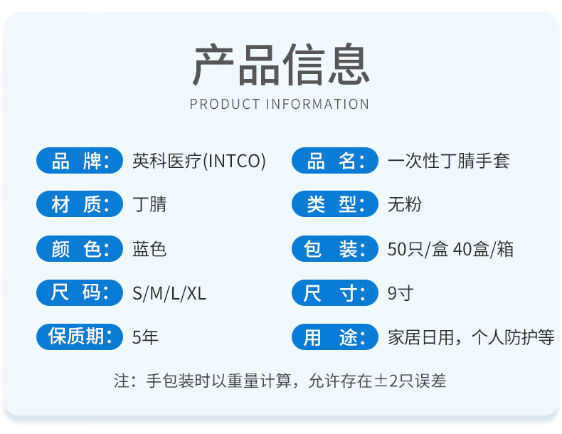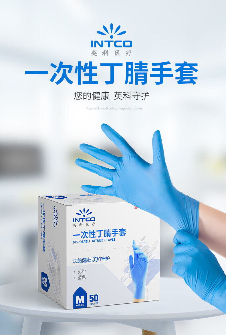英科医疗 一次性丁腈手套 劳保工业清洁餐饮 蓝色 M码 50支装