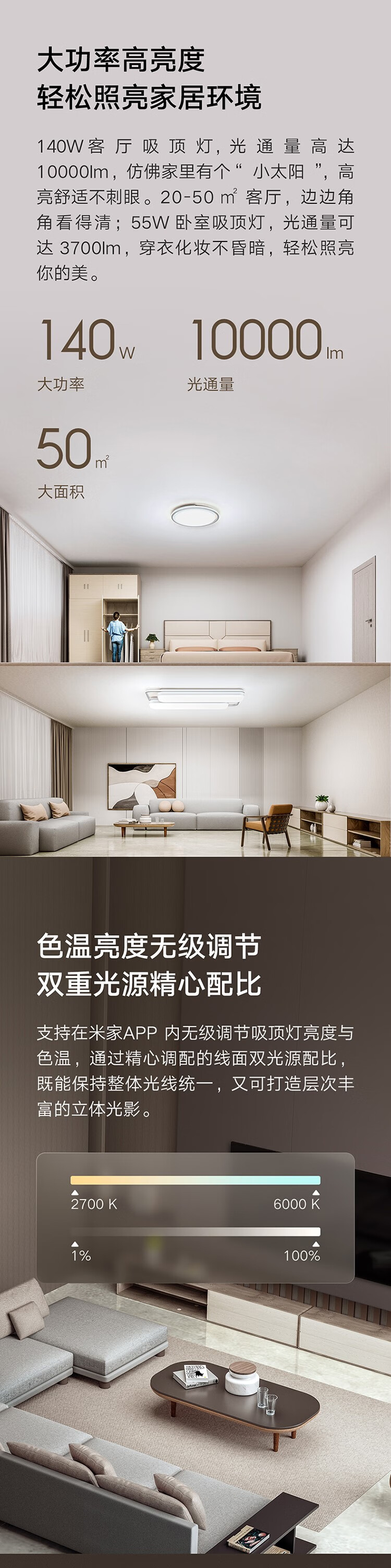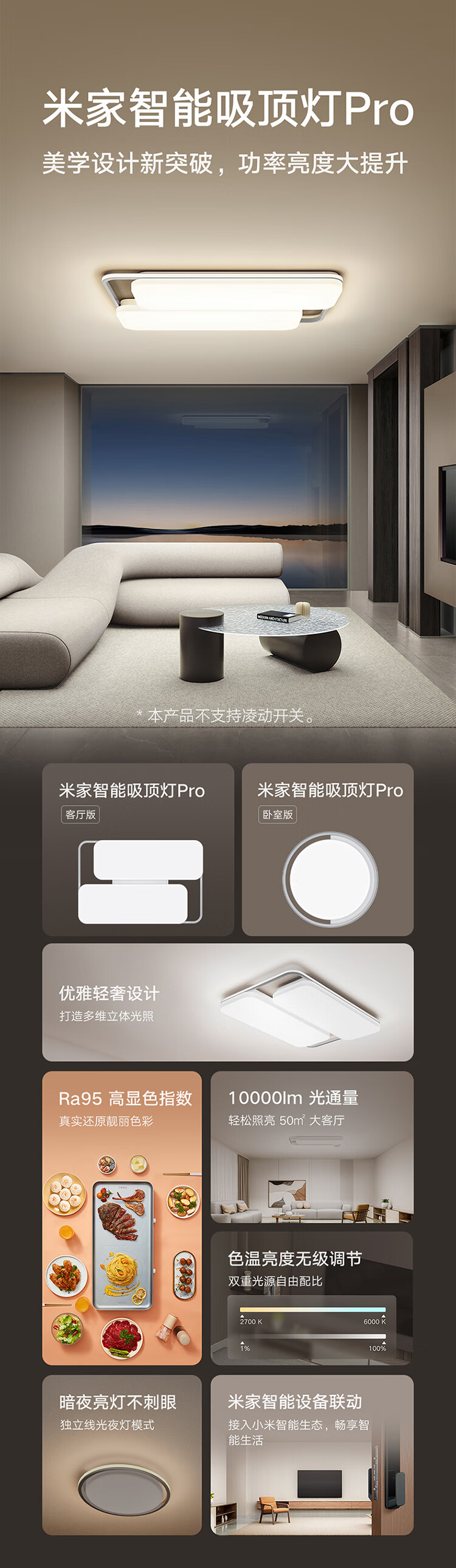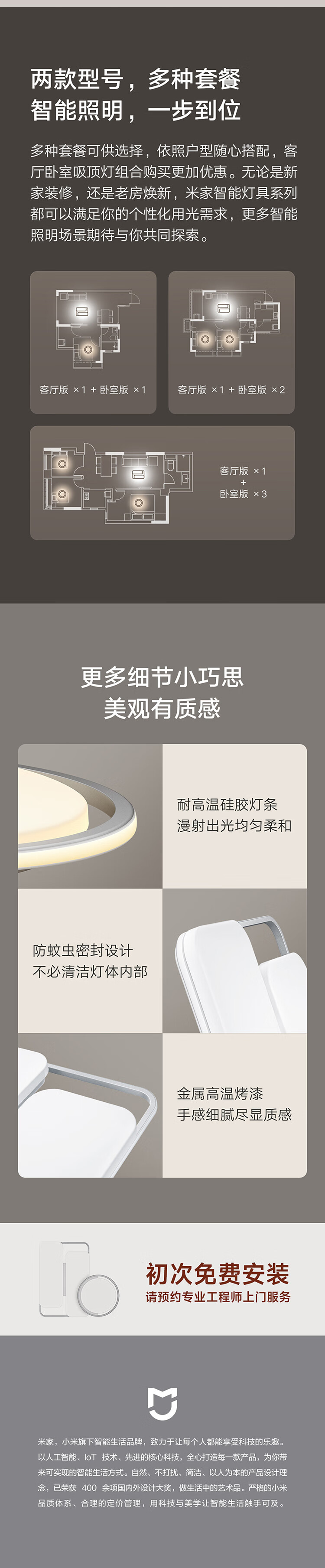 米家(MIJIA)小米米家智能吸顶灯Pro卧室版【政府补贴】【包安装】空间感灯具