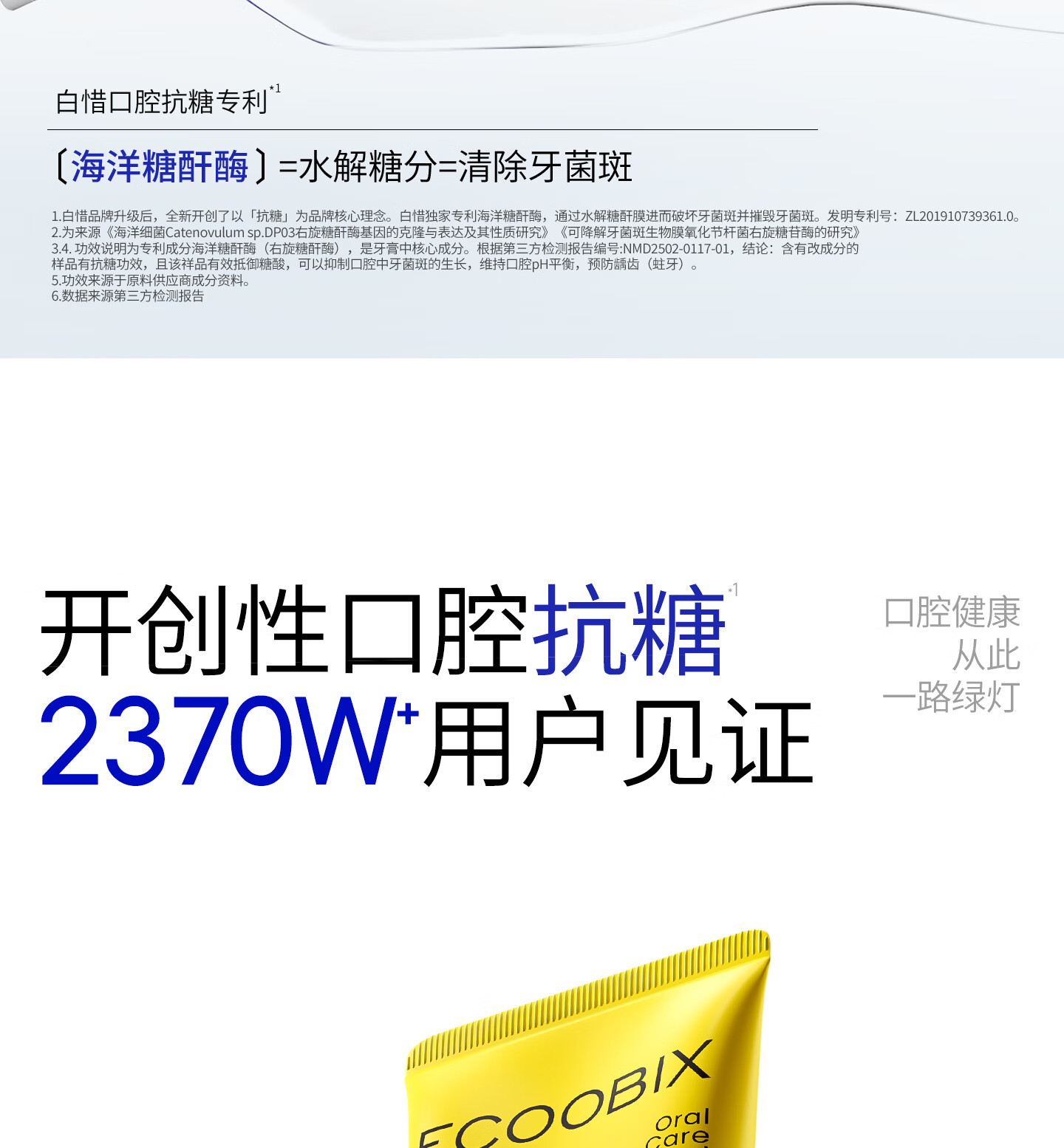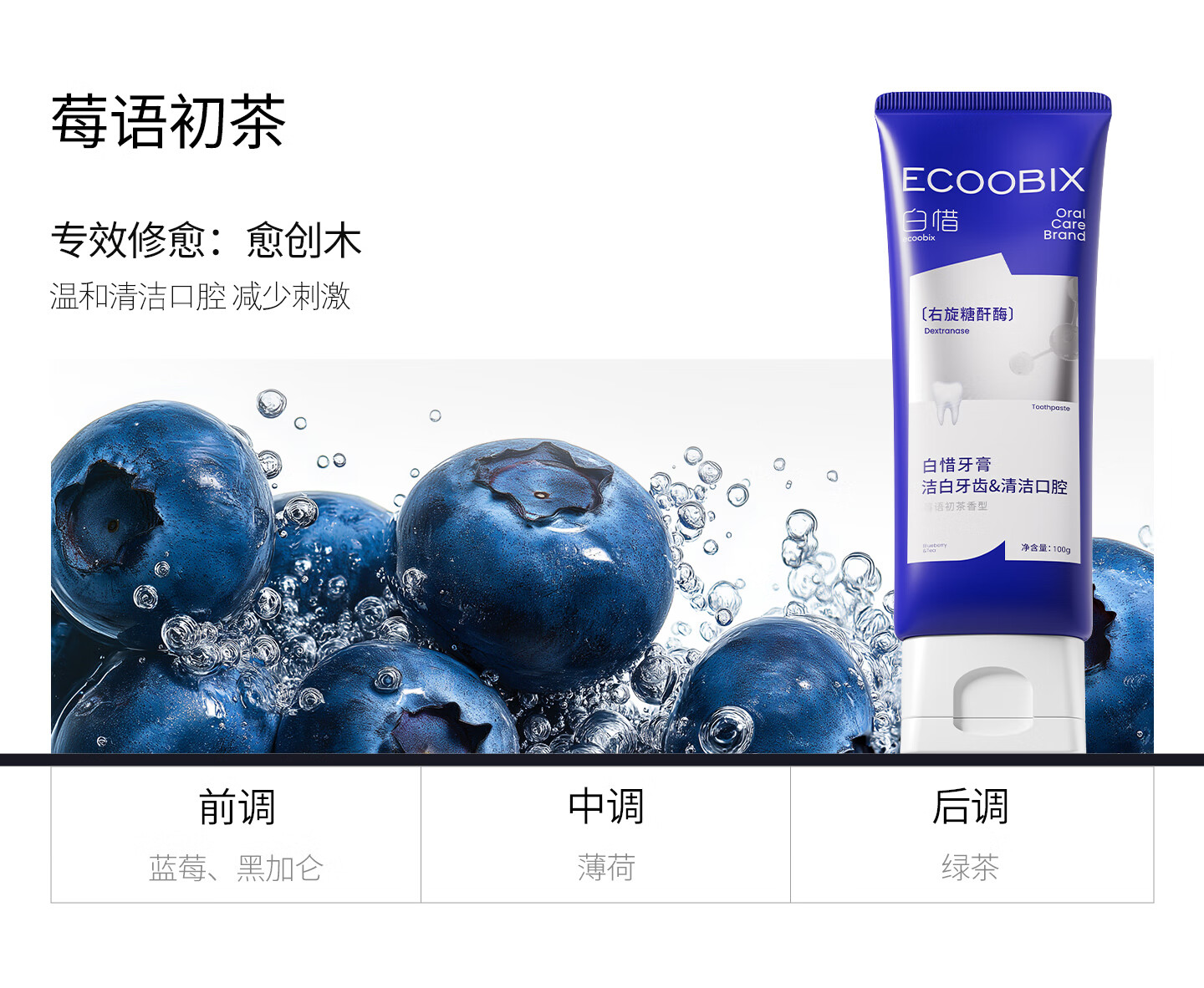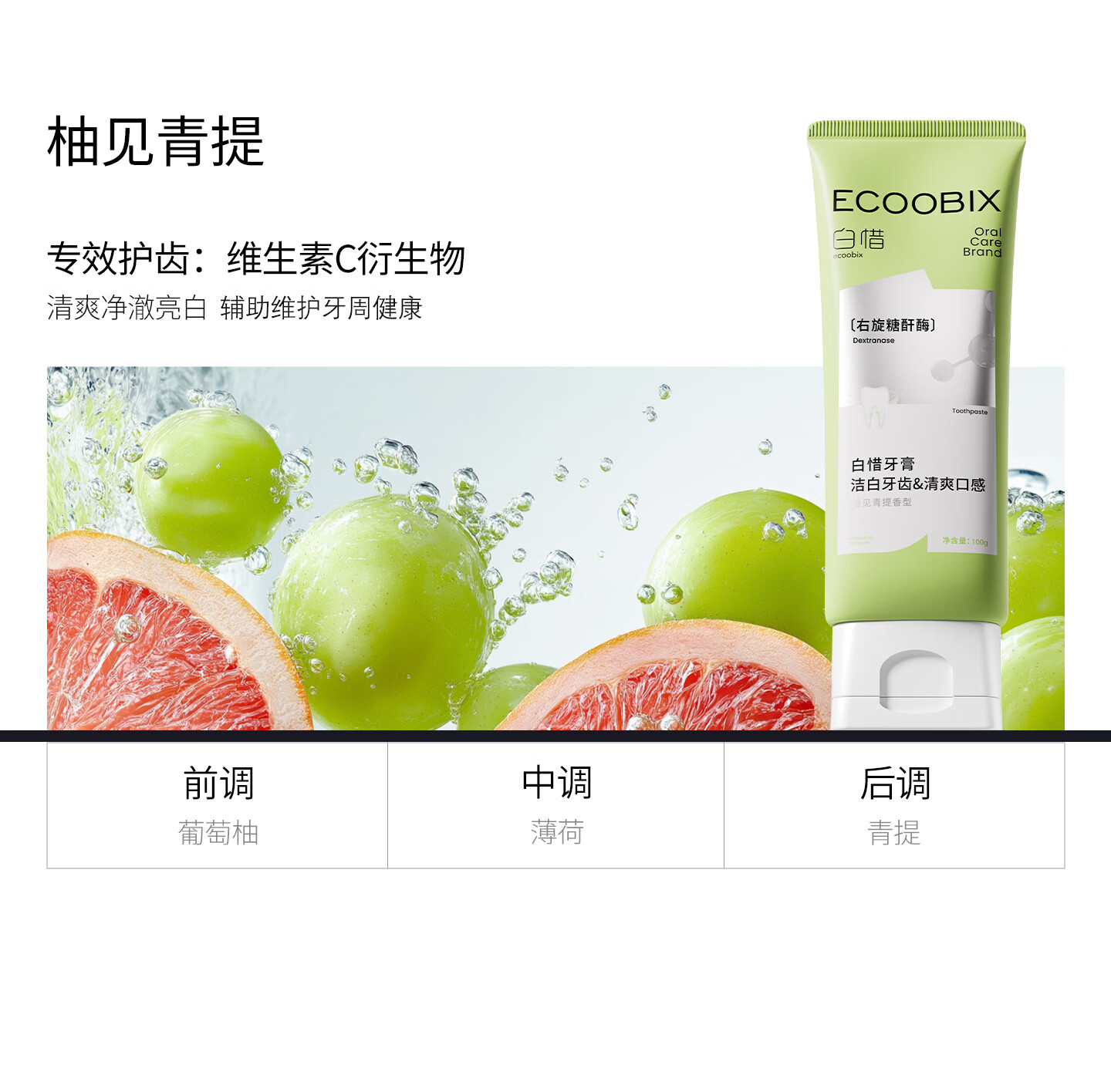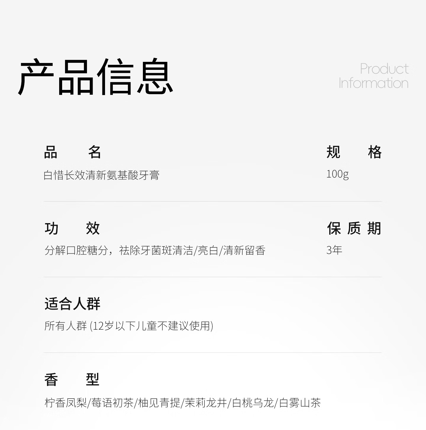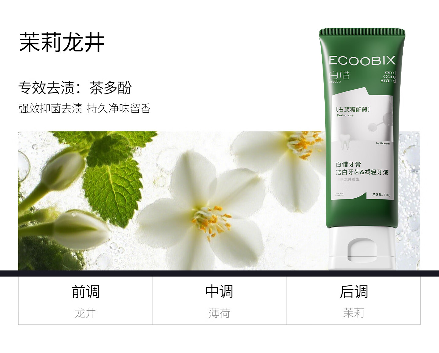 白惜牙膏龙井味100g抗糖益生菌抑氨基酸含氟护龈净白清新口气男女圣诞