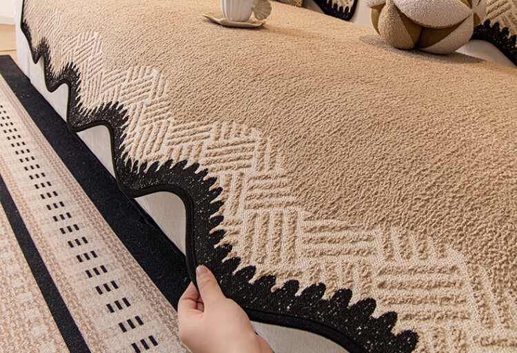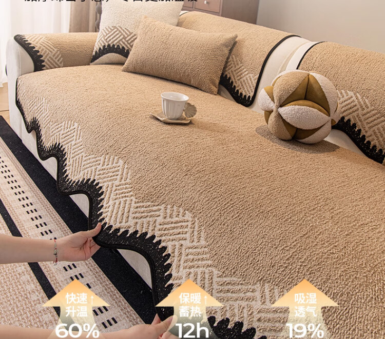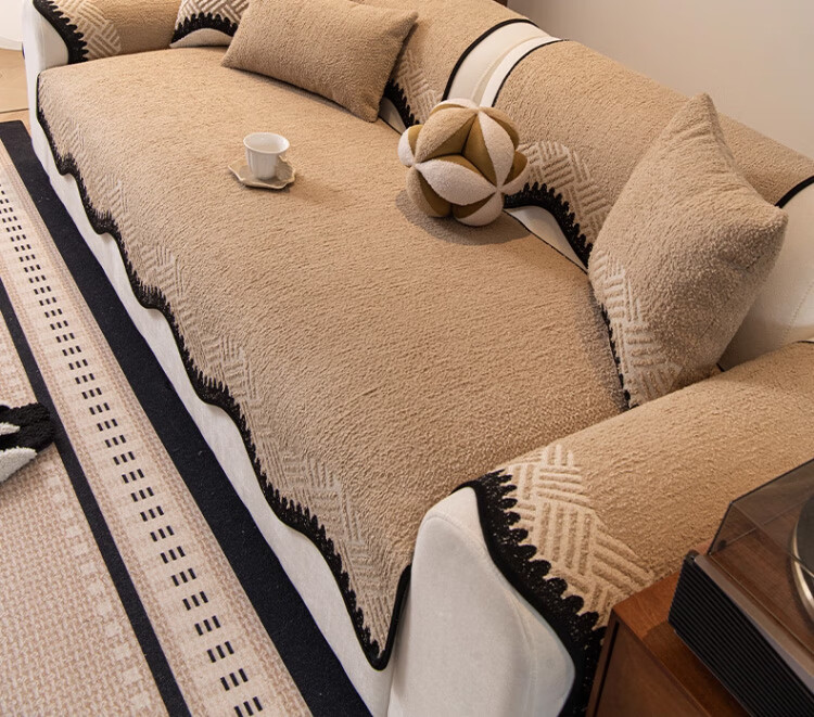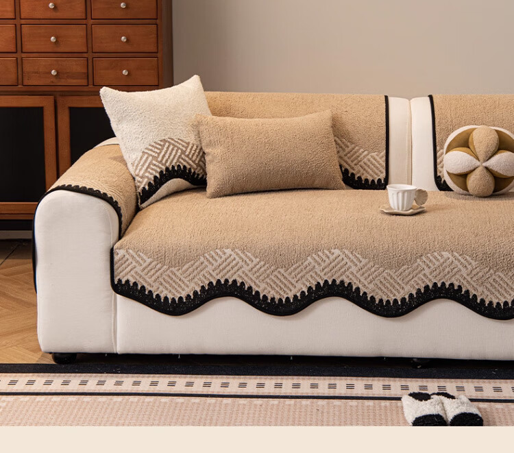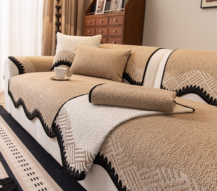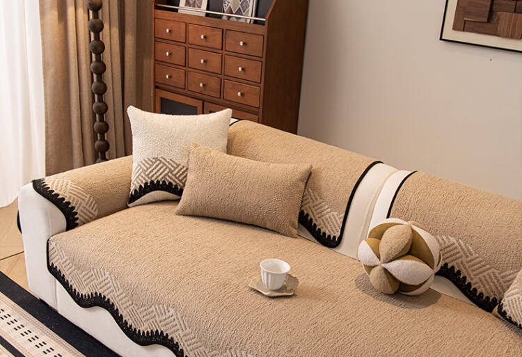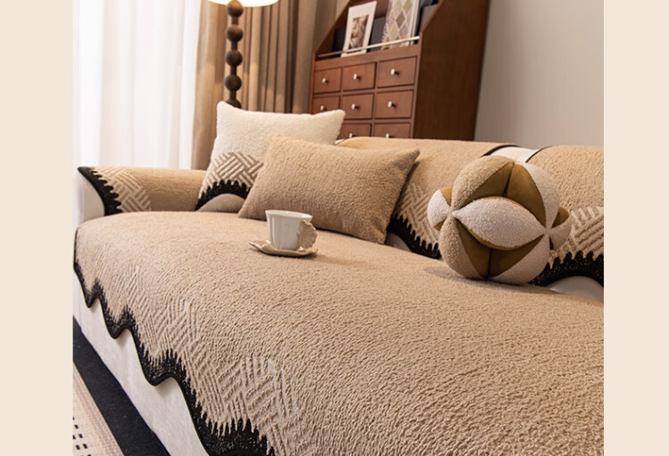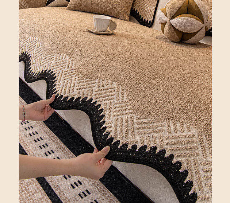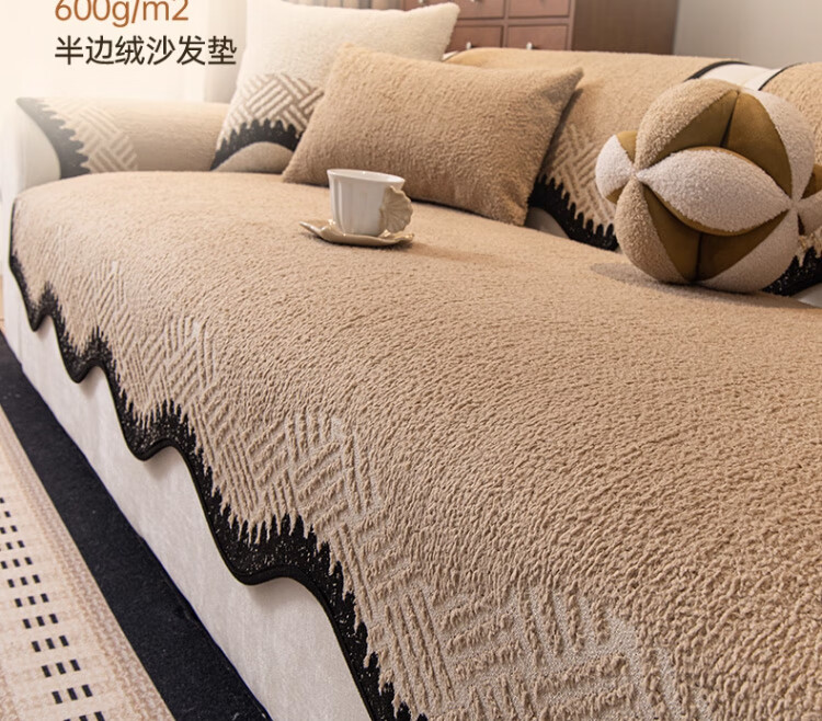 无印良品复古极简风新款异形沙发垫四季通用一片式固定防滑直排沙发坐垫 星轮-卡其 【加厚保暖 锁温不掉毛】 90*90cm (加大加宽扶手/靠背)