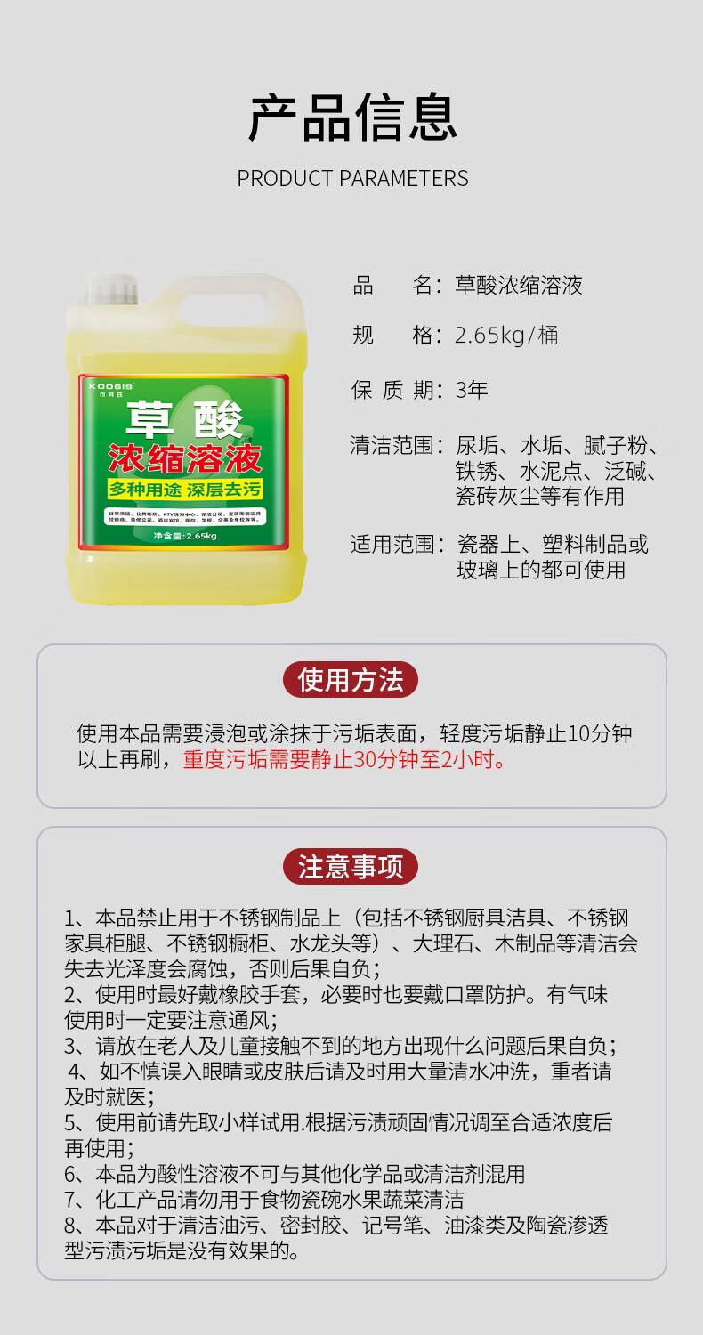 可其氏高浓度草酸清洗剂洁厕泡泡液马桶厕所瓷砖清洁剂开荒保洁去污垢