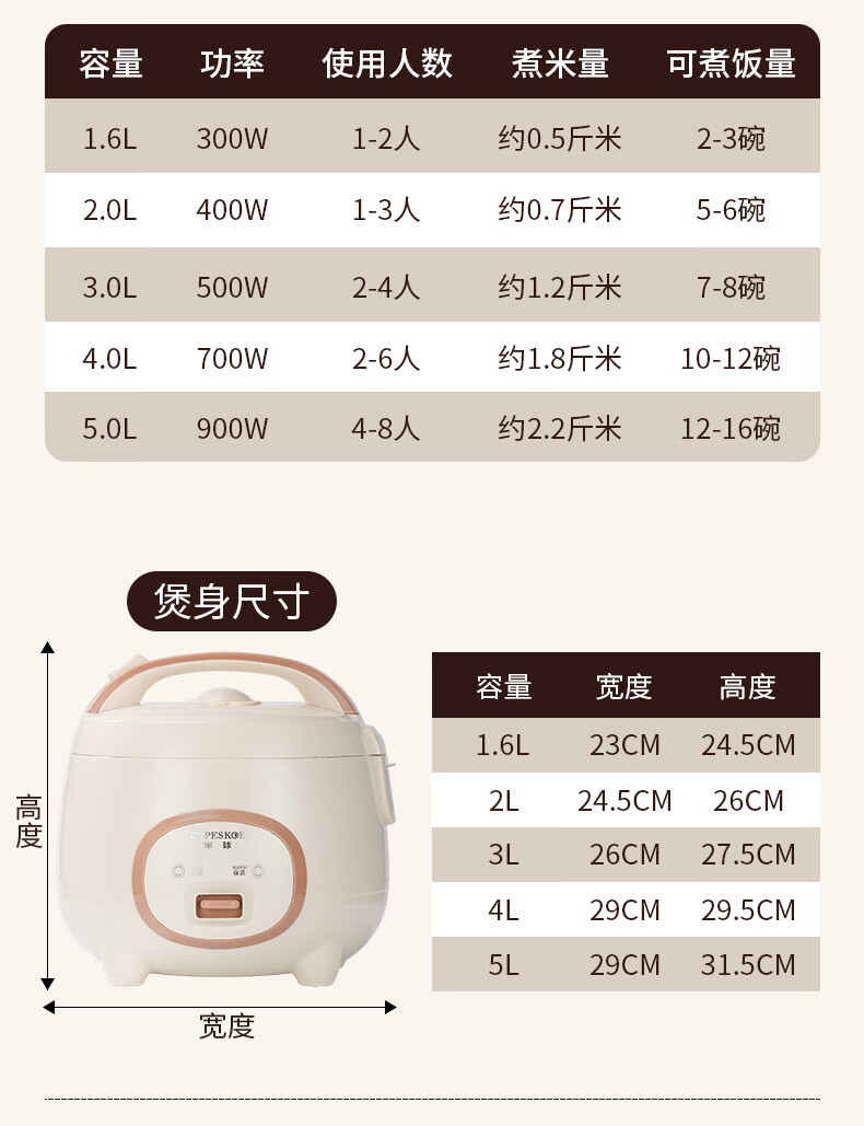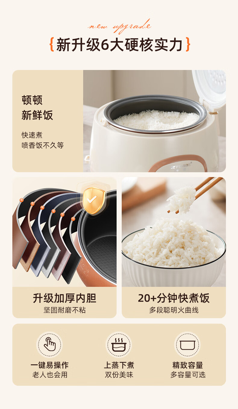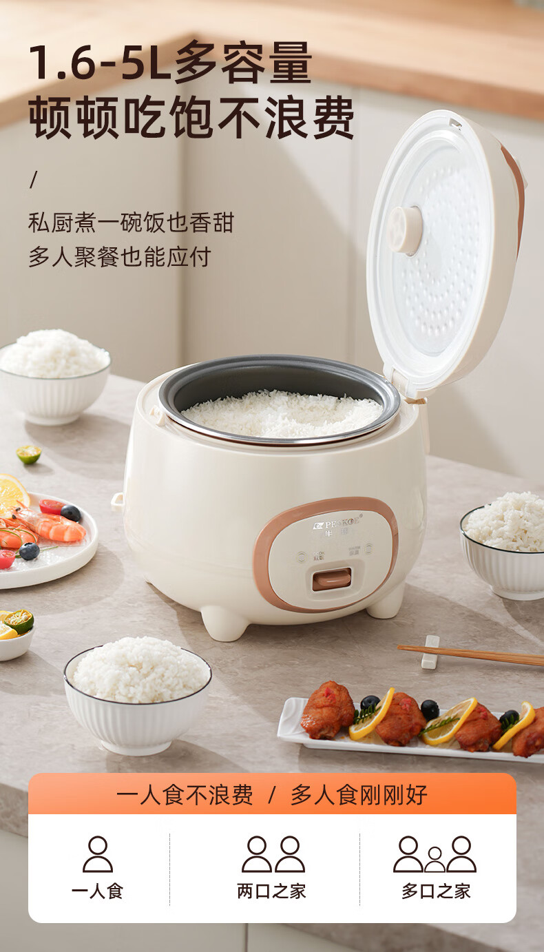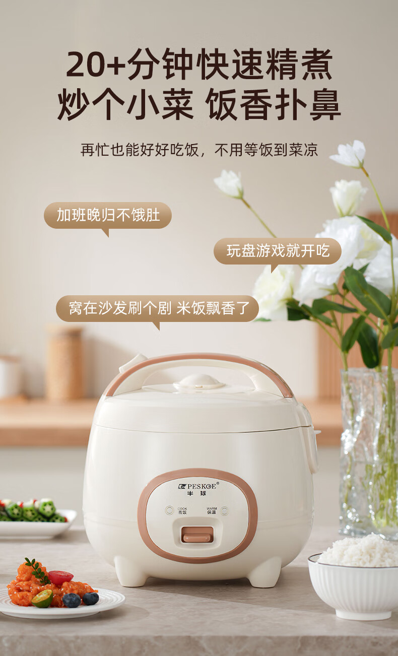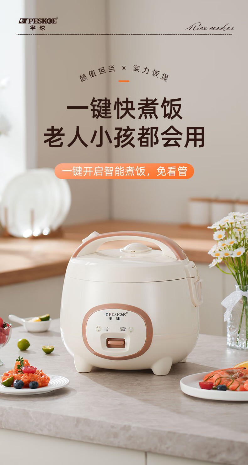半球(PESKOE)电饭煲电饭锅家用电饭煲1-2人升可蒸煮宿舍可用不粘锅不溢锅1.6-5L小型单人老式家用电 机械款 2L 【不粘厚球胆】1-3人用