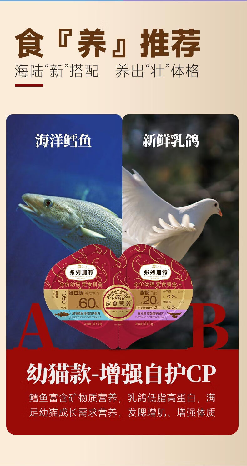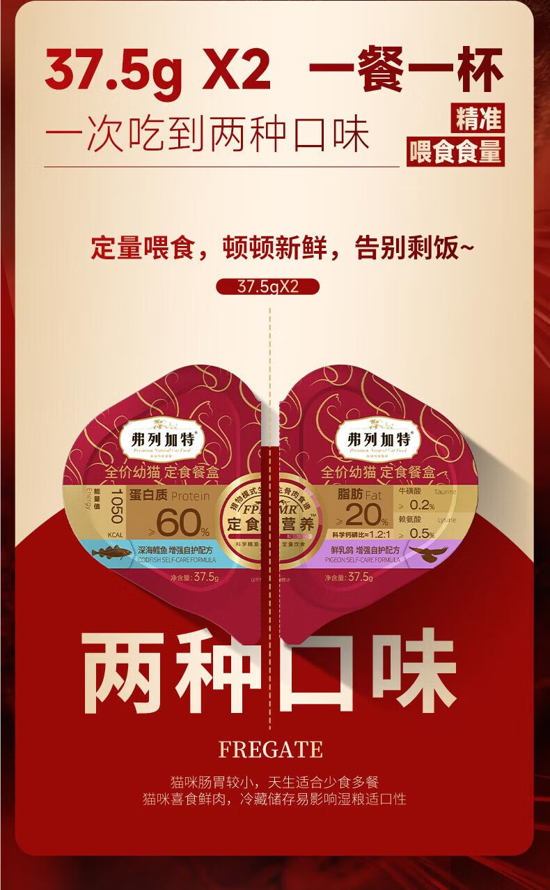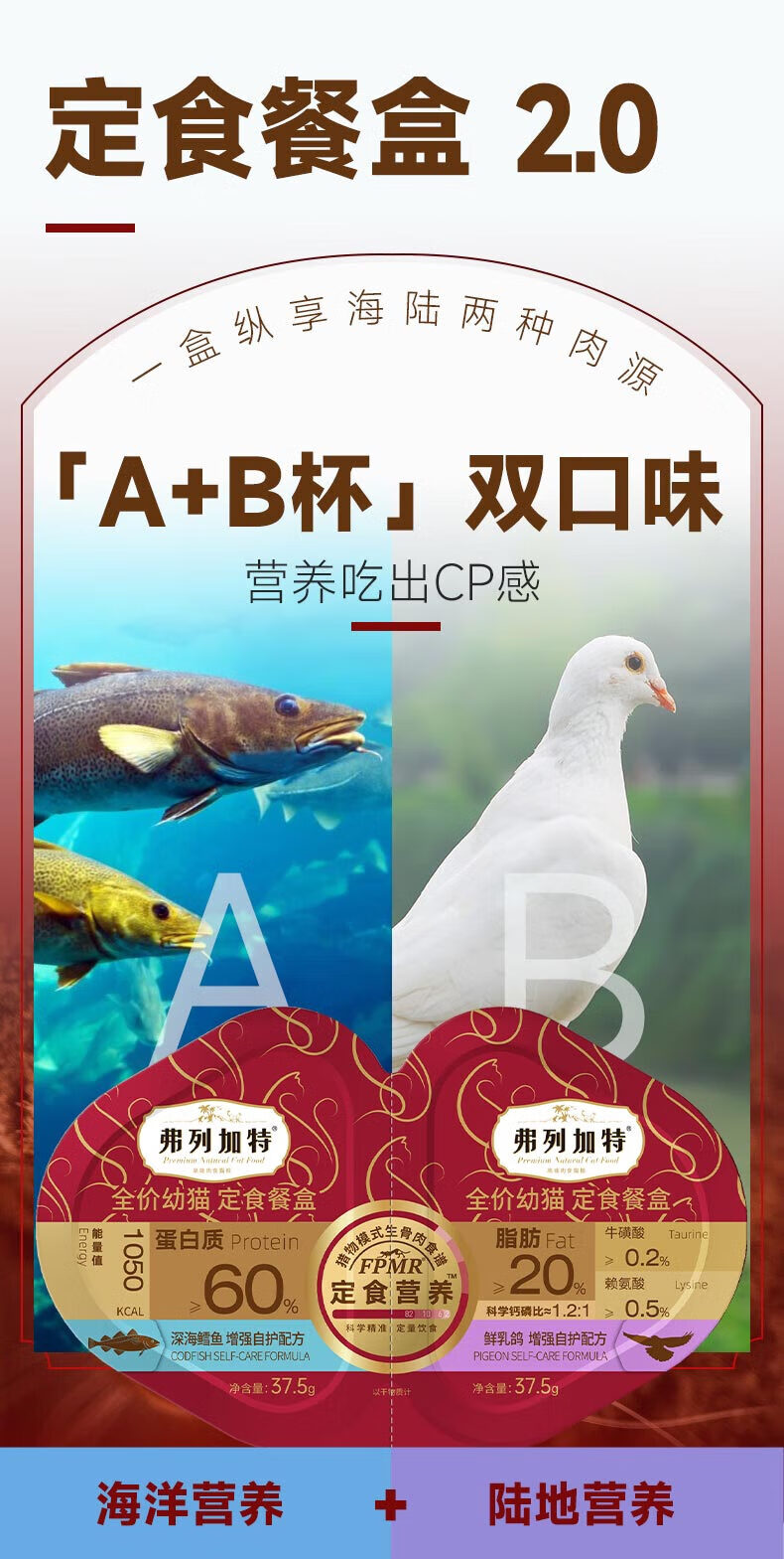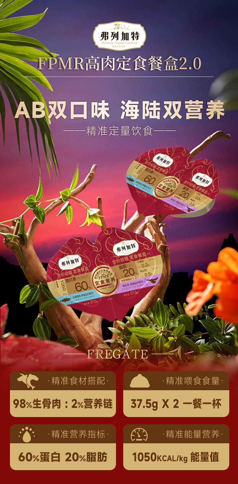 FREGATE ISLAND PREMIUM SELECTION弗列加特全价生骨肉猫咪双餐杯高营养小鸟胃主食罐头湿粮餐盒鱼肉 成猫随机口味6组【12杯不带纸盒子发】
