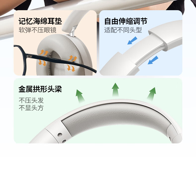 勒姆森耳机头戴式无线蓝牙耳机主动深度降噪超长续航低延迟高音质高颜值app智联复古时尚美拉德穿搭耳机 月光白 APP智联+38dB深度降噪+高颜值百搭单品