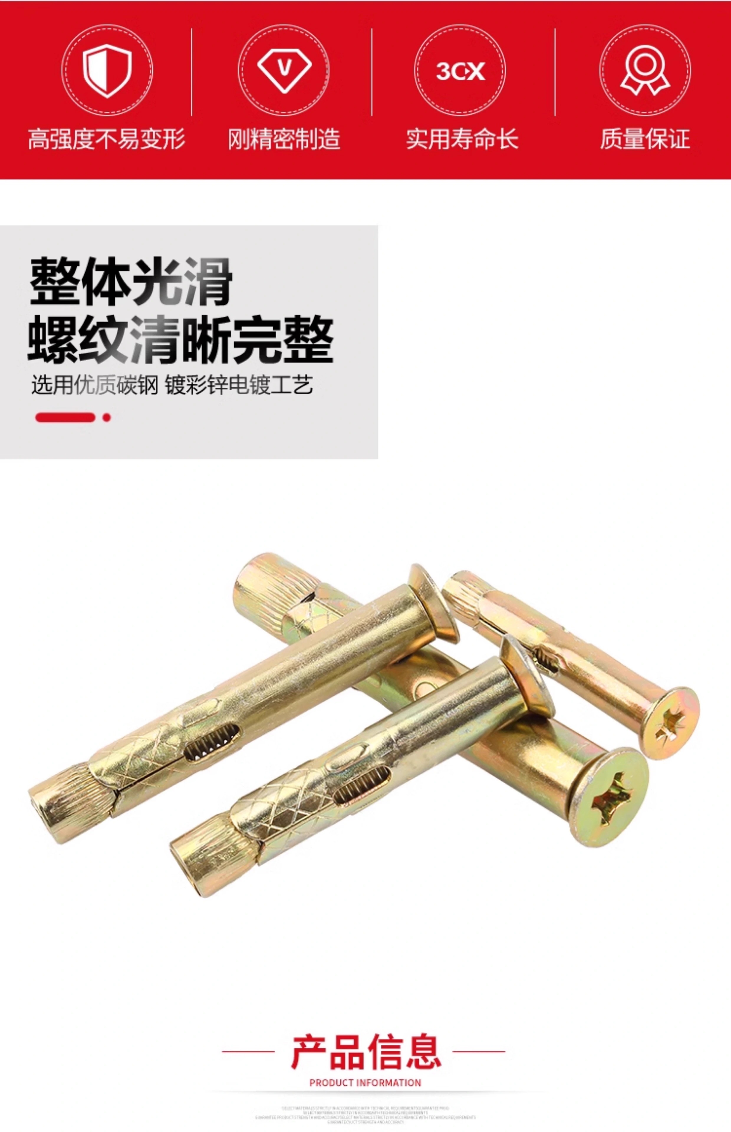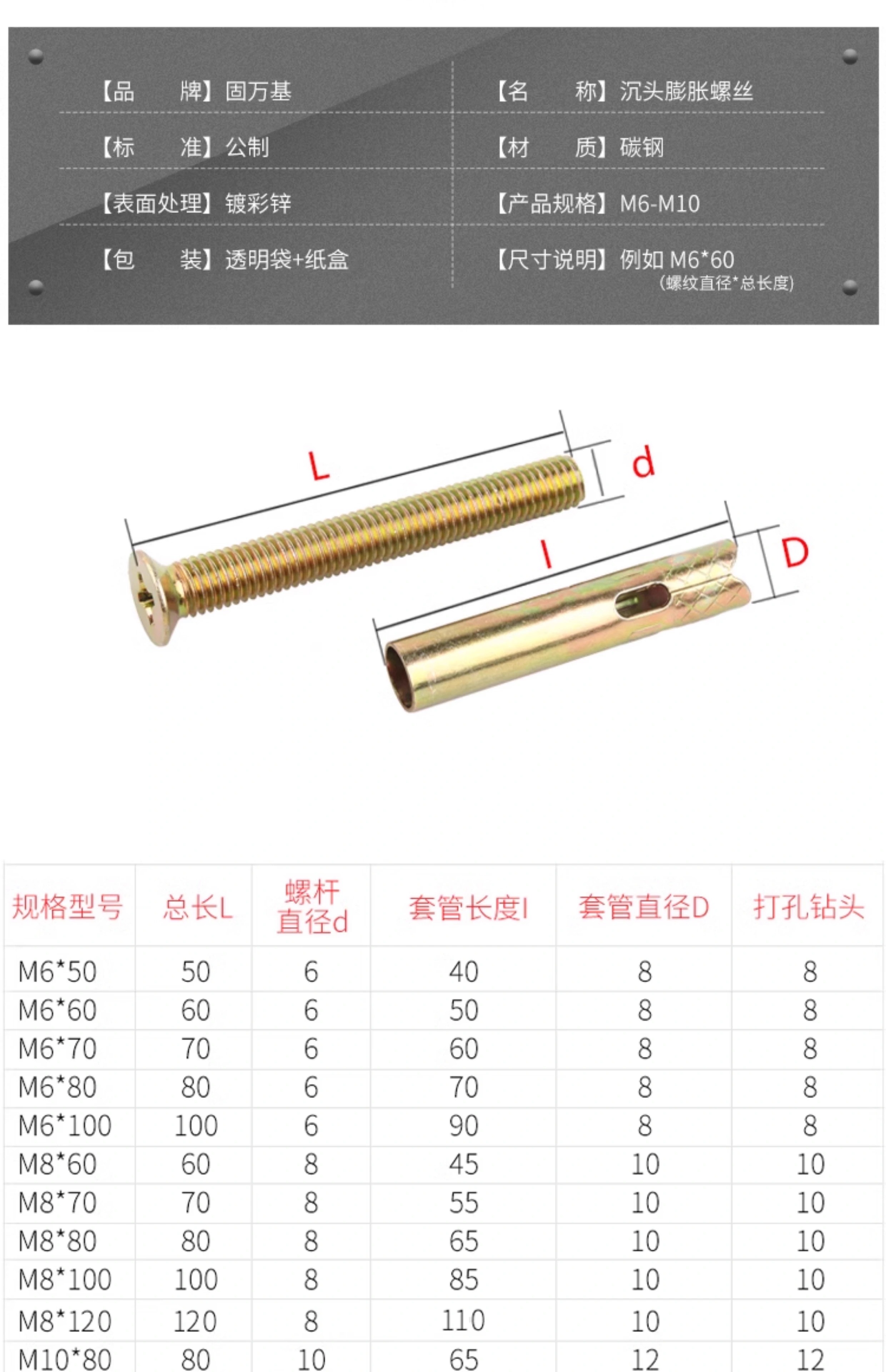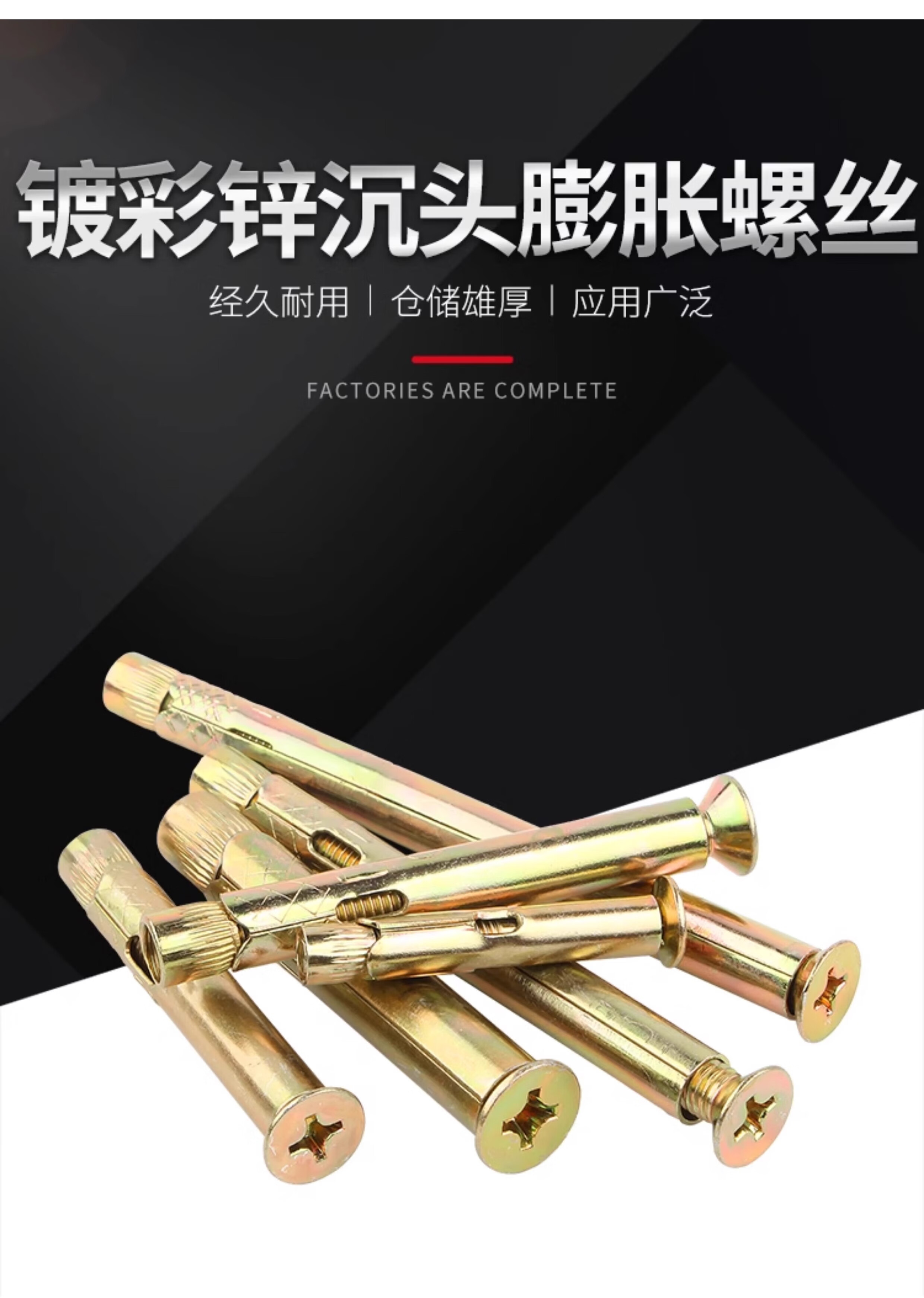 固万基彩锌十字沉头内膨胀螺丝304不锈钢平头内置式门窗拉爆膨胀螺栓内爆紧固件大全 M6x60[5个]彩锌十字沉头