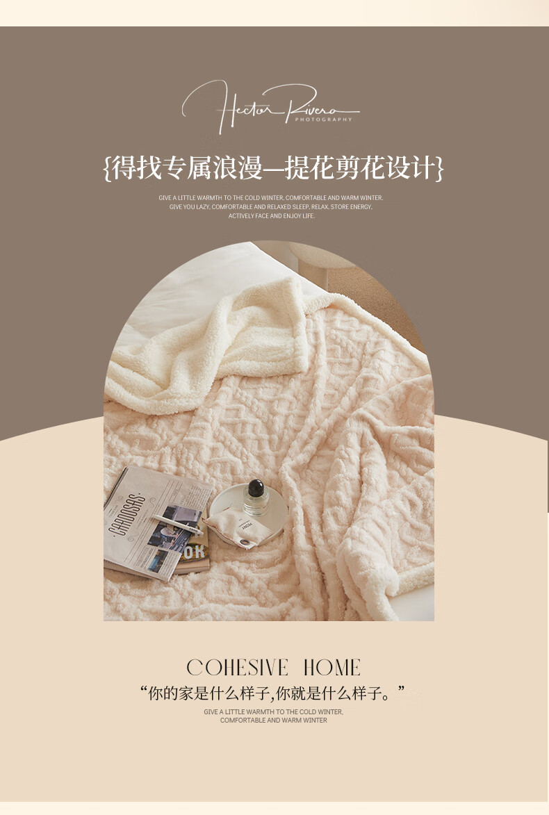 VJE冬季毛毯2米沙发盖毯加厚办公室午睡毯午休毯子珊瑚绒被子床上用 浅咖【双面加绒不掉毛无静电】 200*230cm