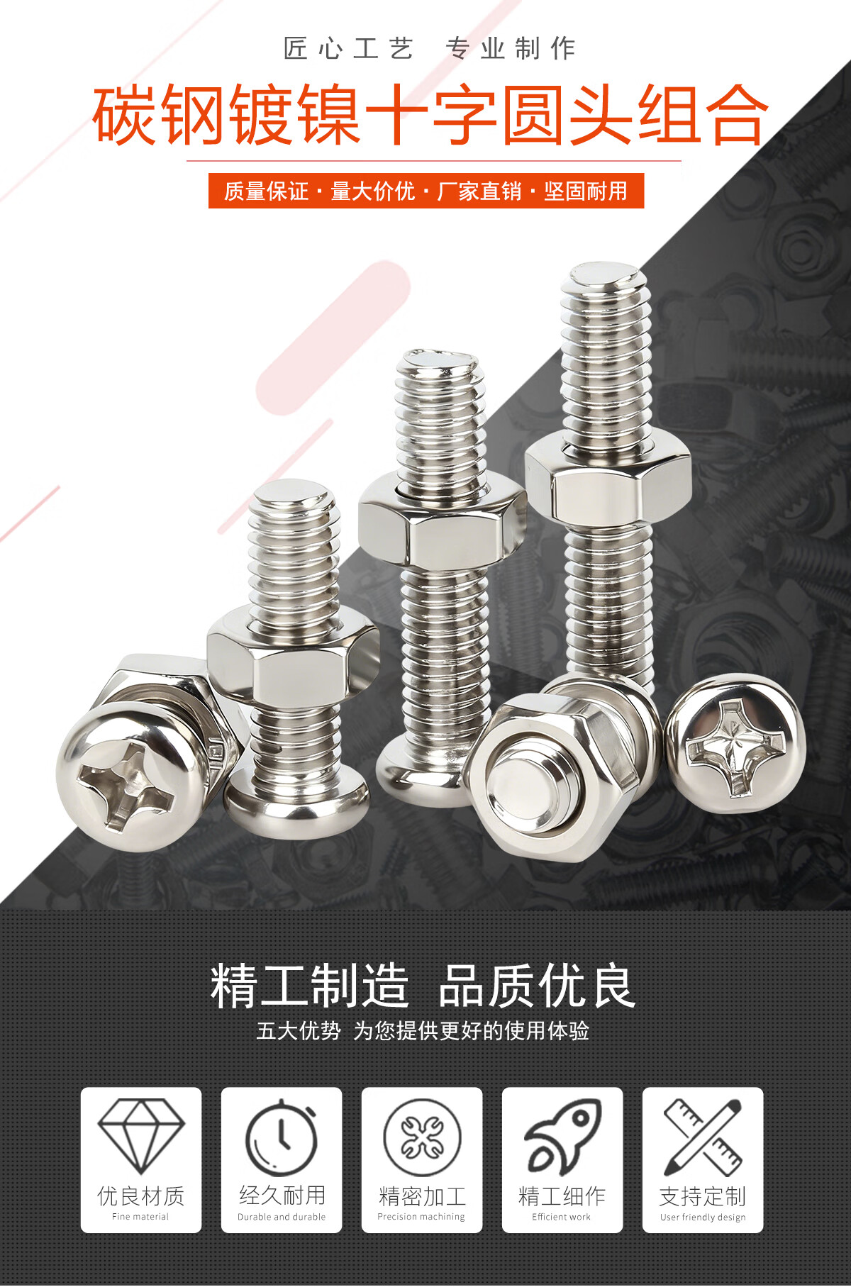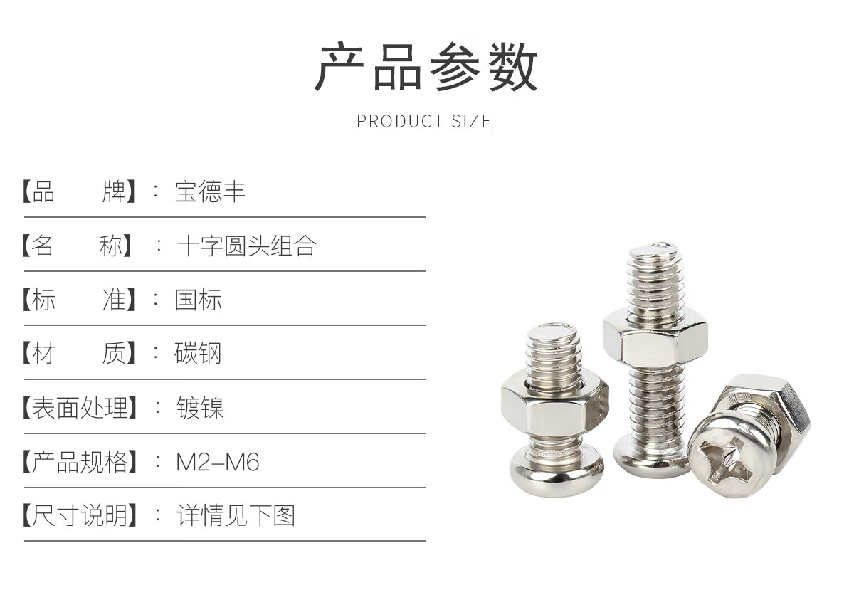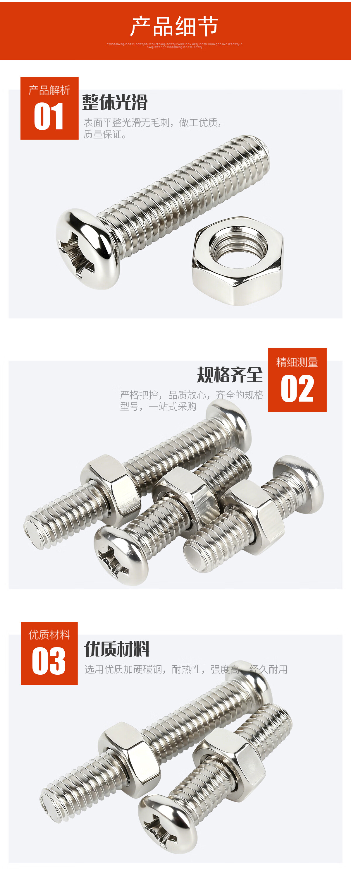 宝德丰铁镀镍十字圆头组合螺丝钉大全盘头带六角螺母套装螺栓M2M3M4M5M6 M2x2头3.5[500套]