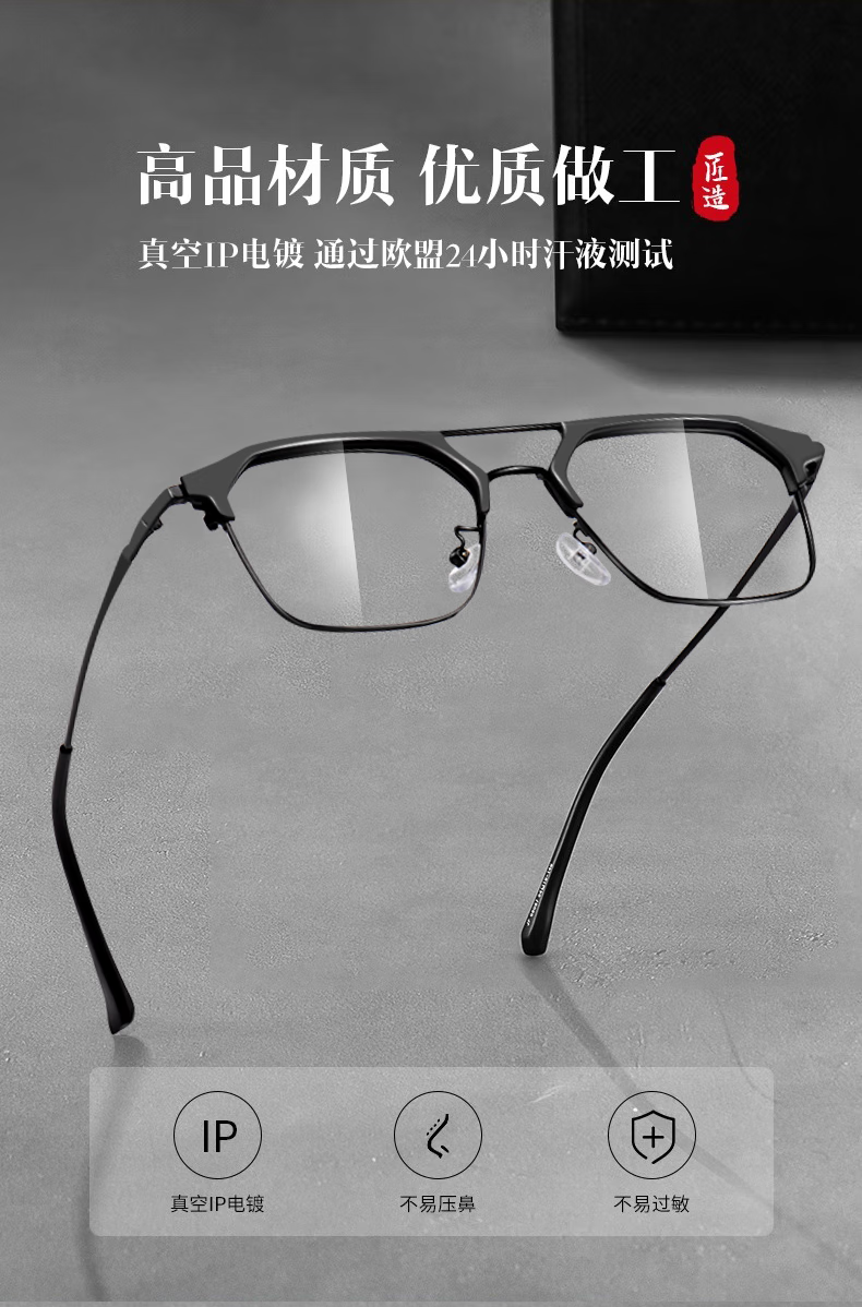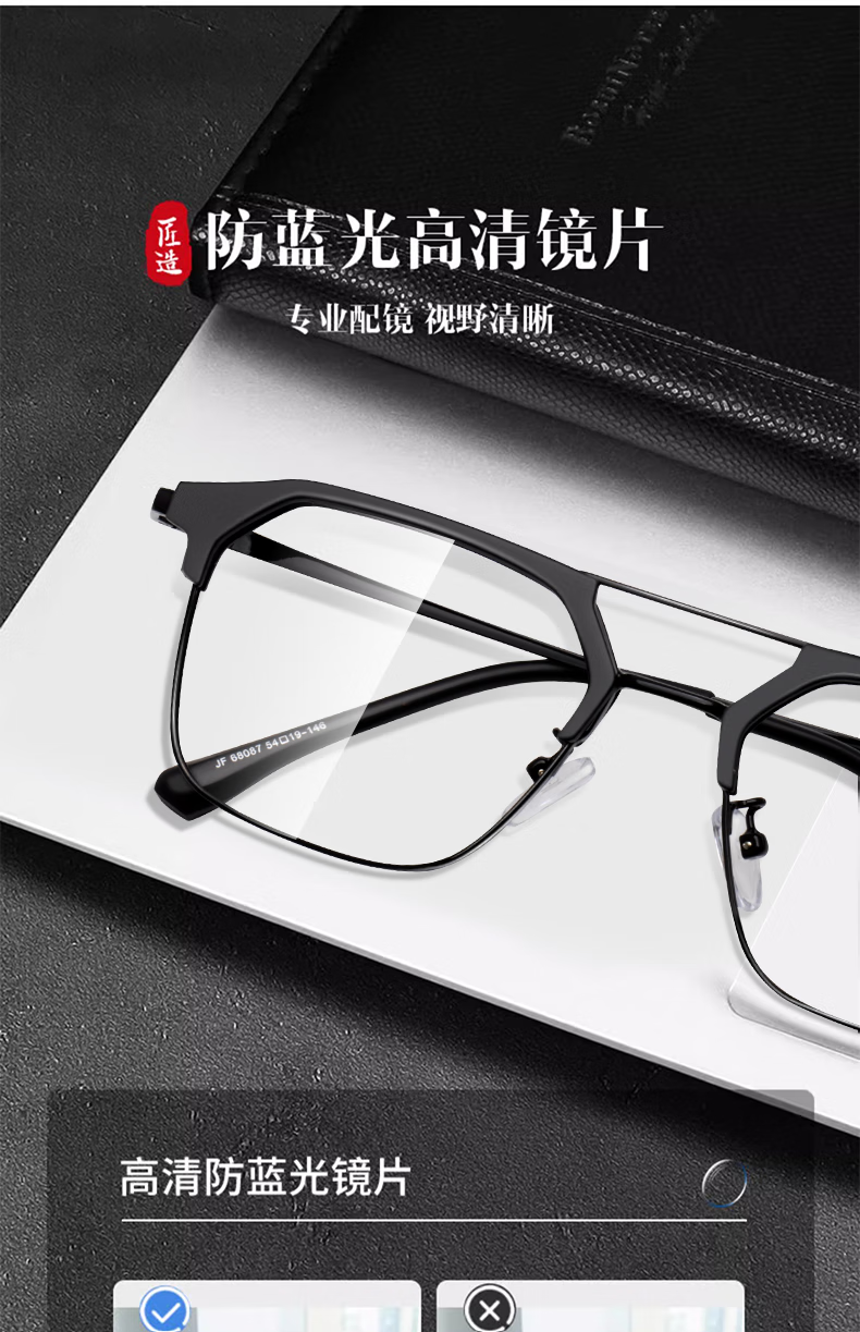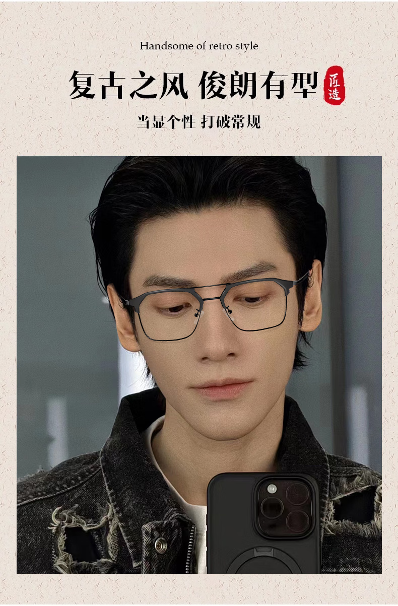 潮库双梁全框近视眼镜框男款可配度数痞帅黑色复古黑武士眼镜架 68087 砂黑 万新1.60防蓝光镜片0-800