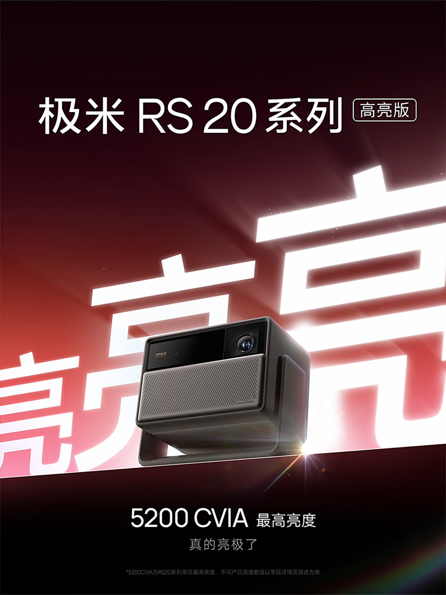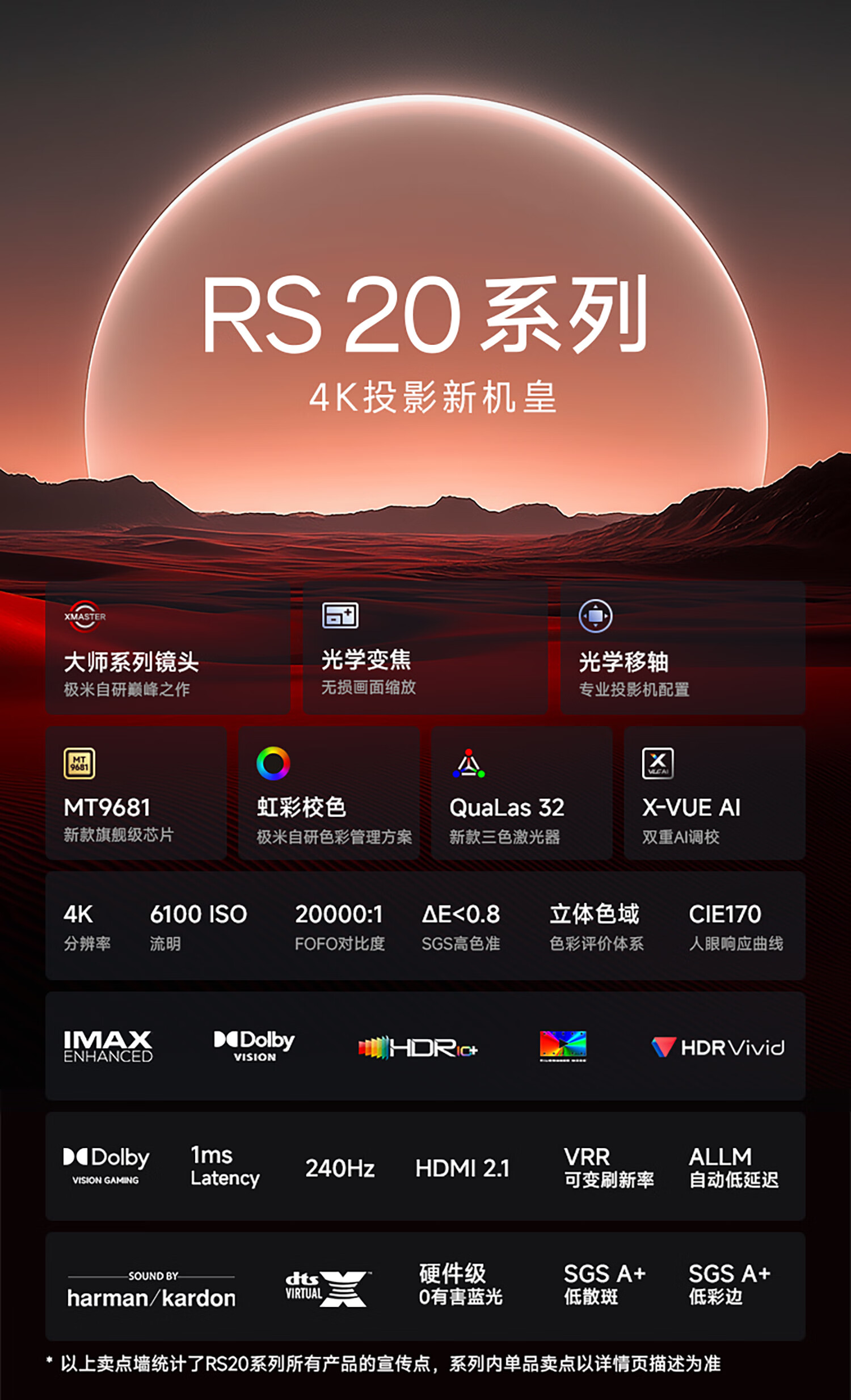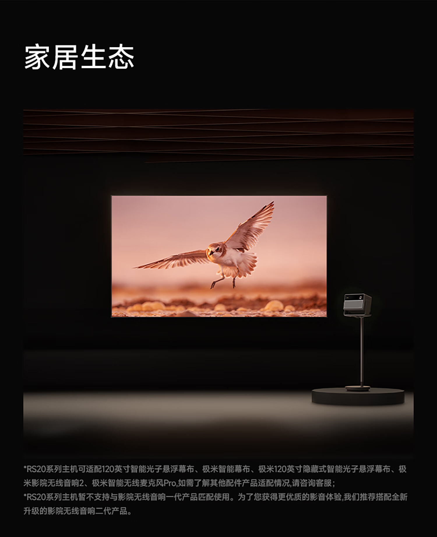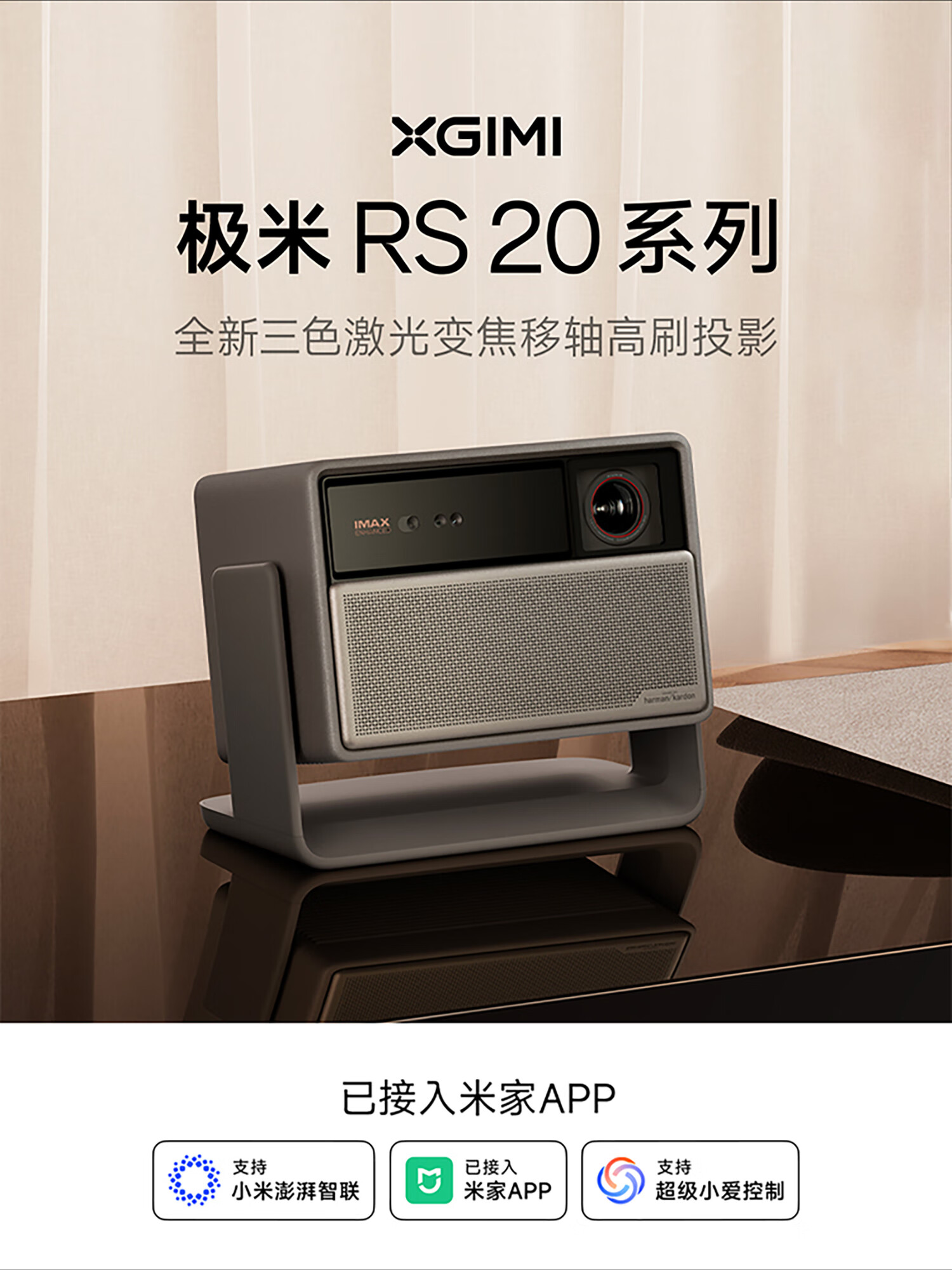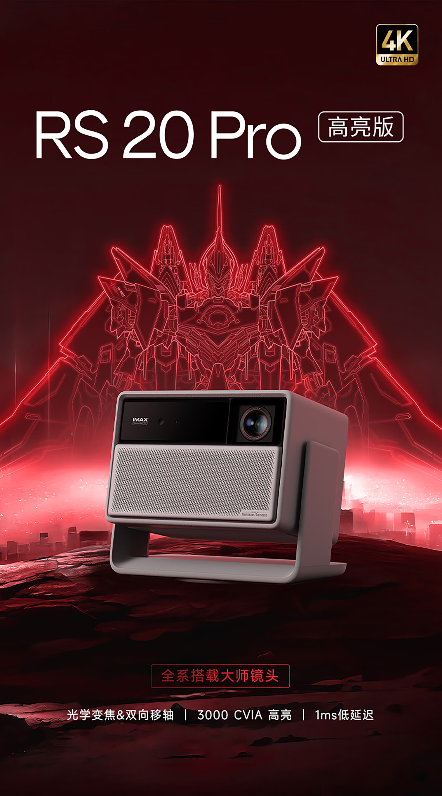 极米RS 20 Pro 高亮版 全新三色激光变焦移轴高刷投影 3000CVIA 家用投影仪 4K超清 国家补贴