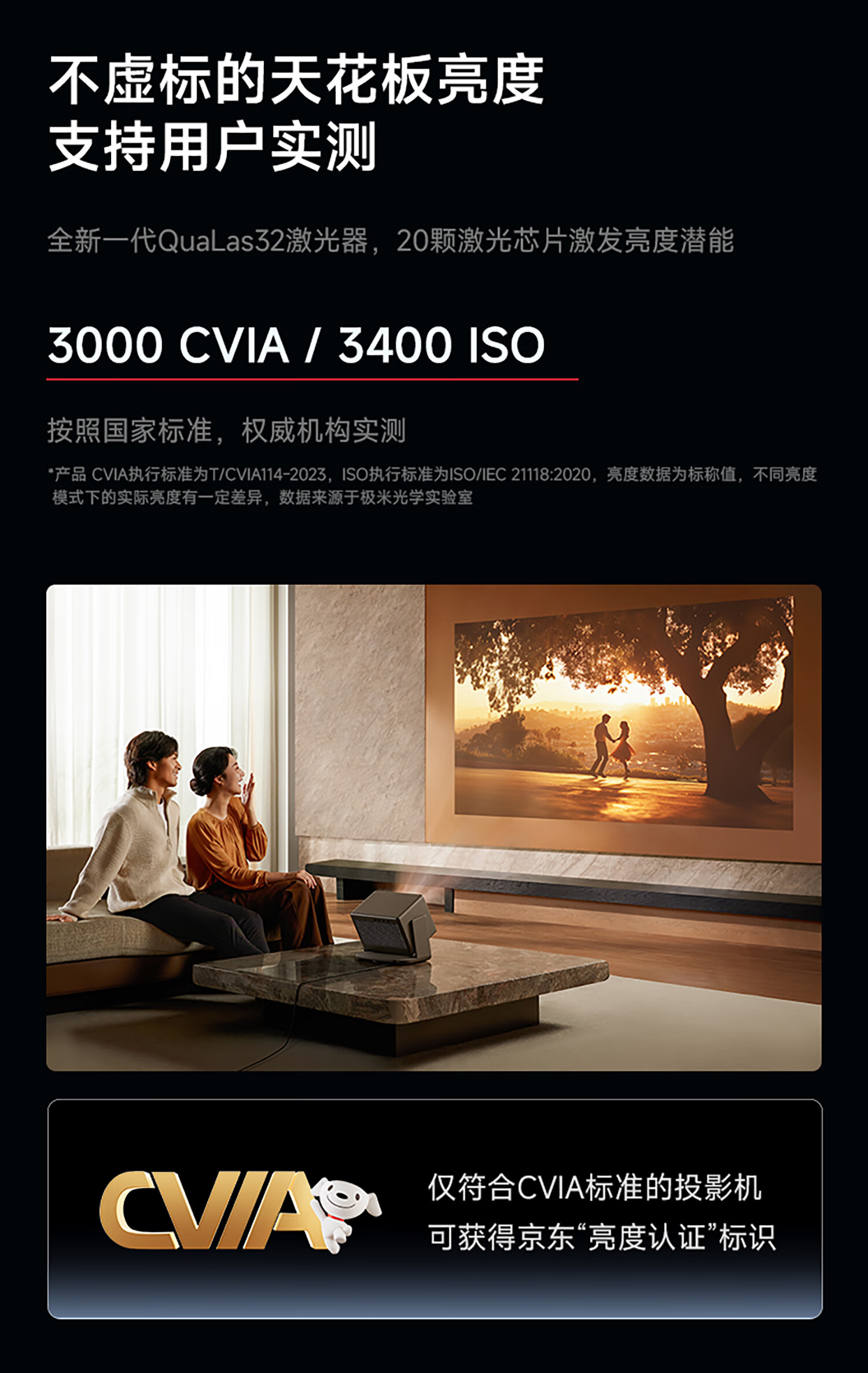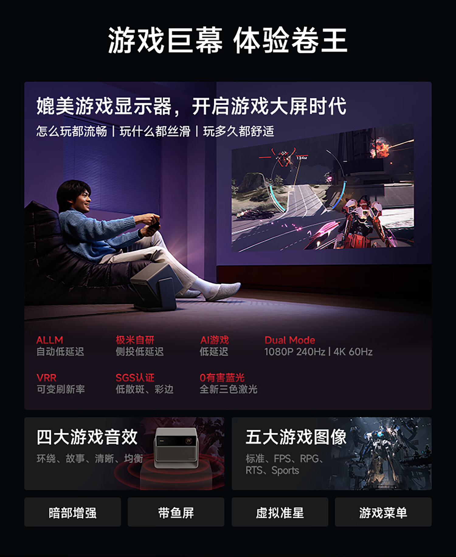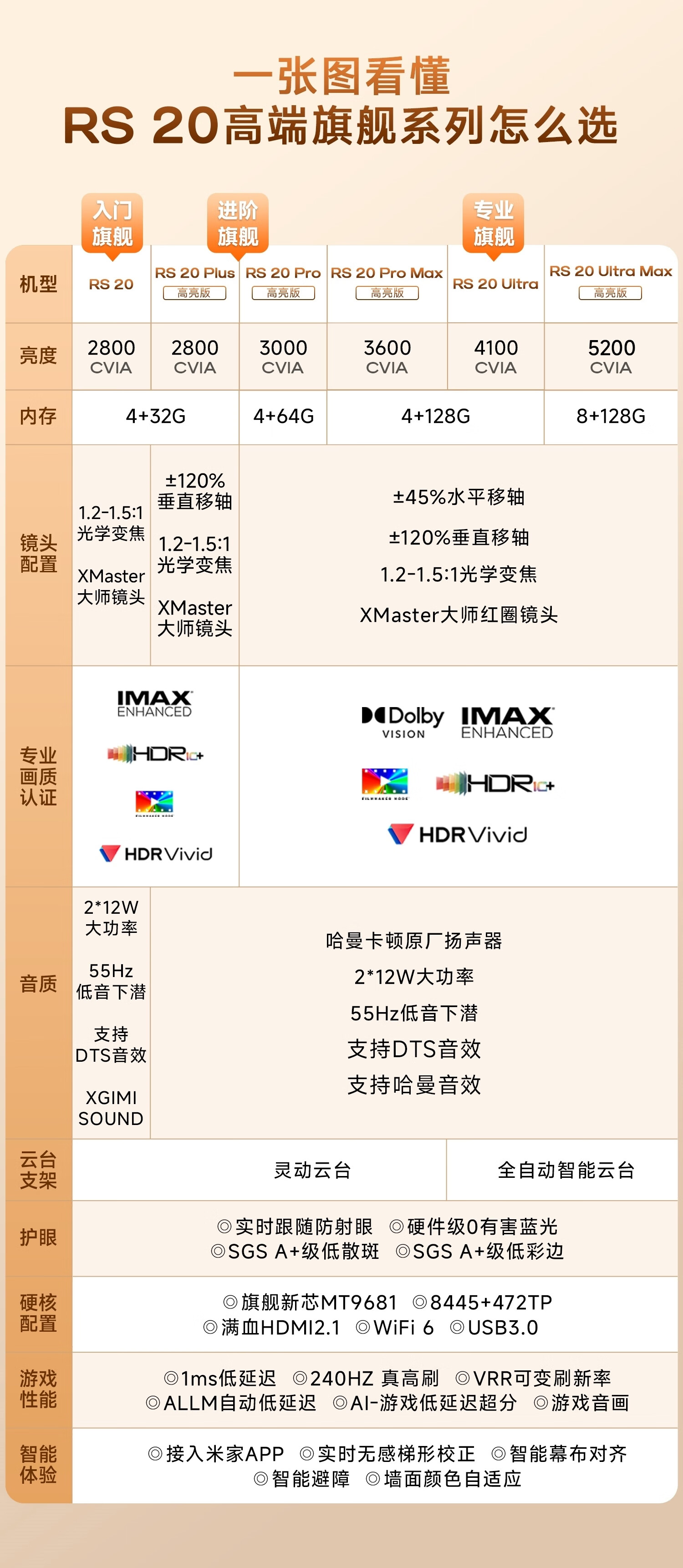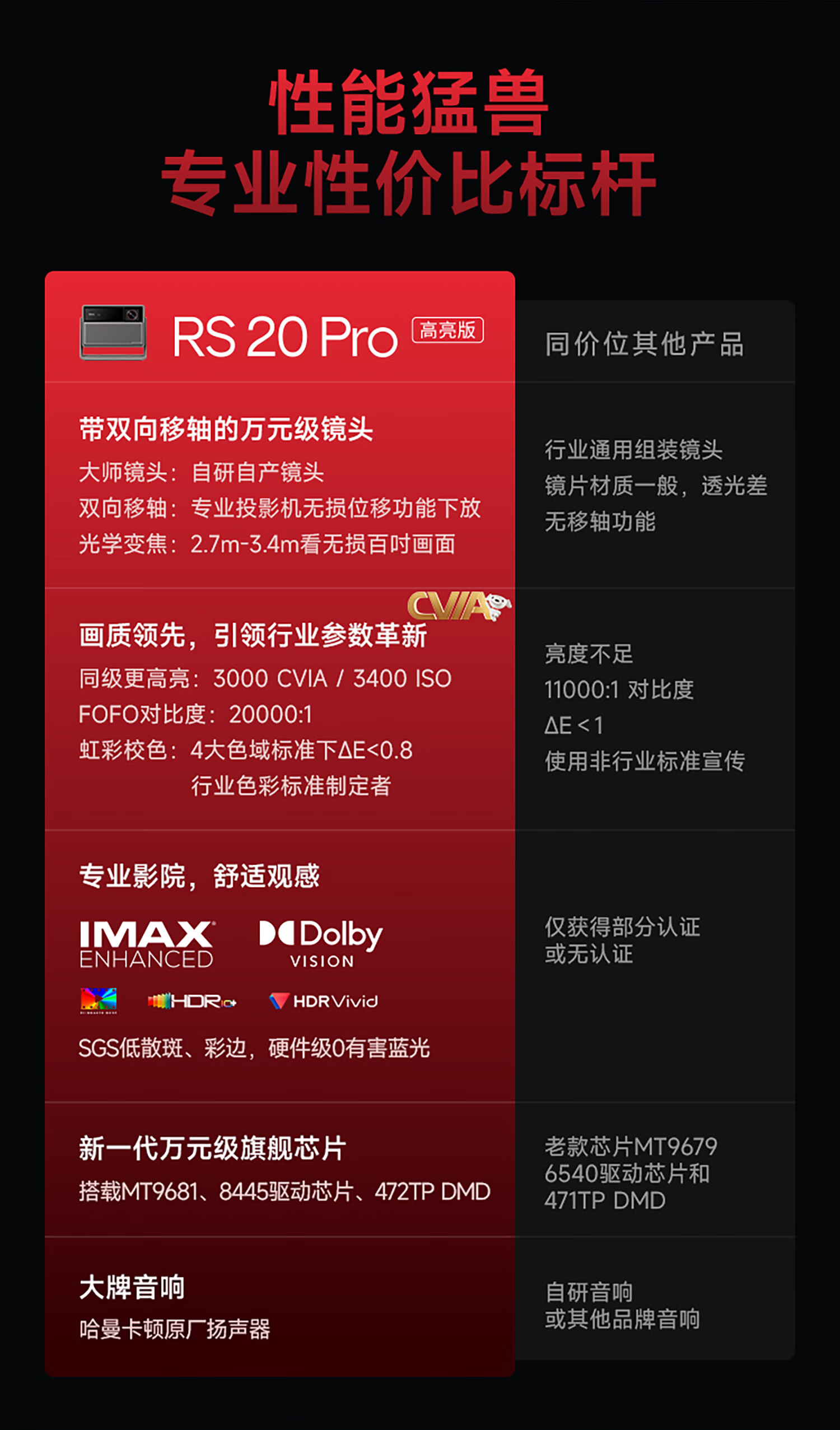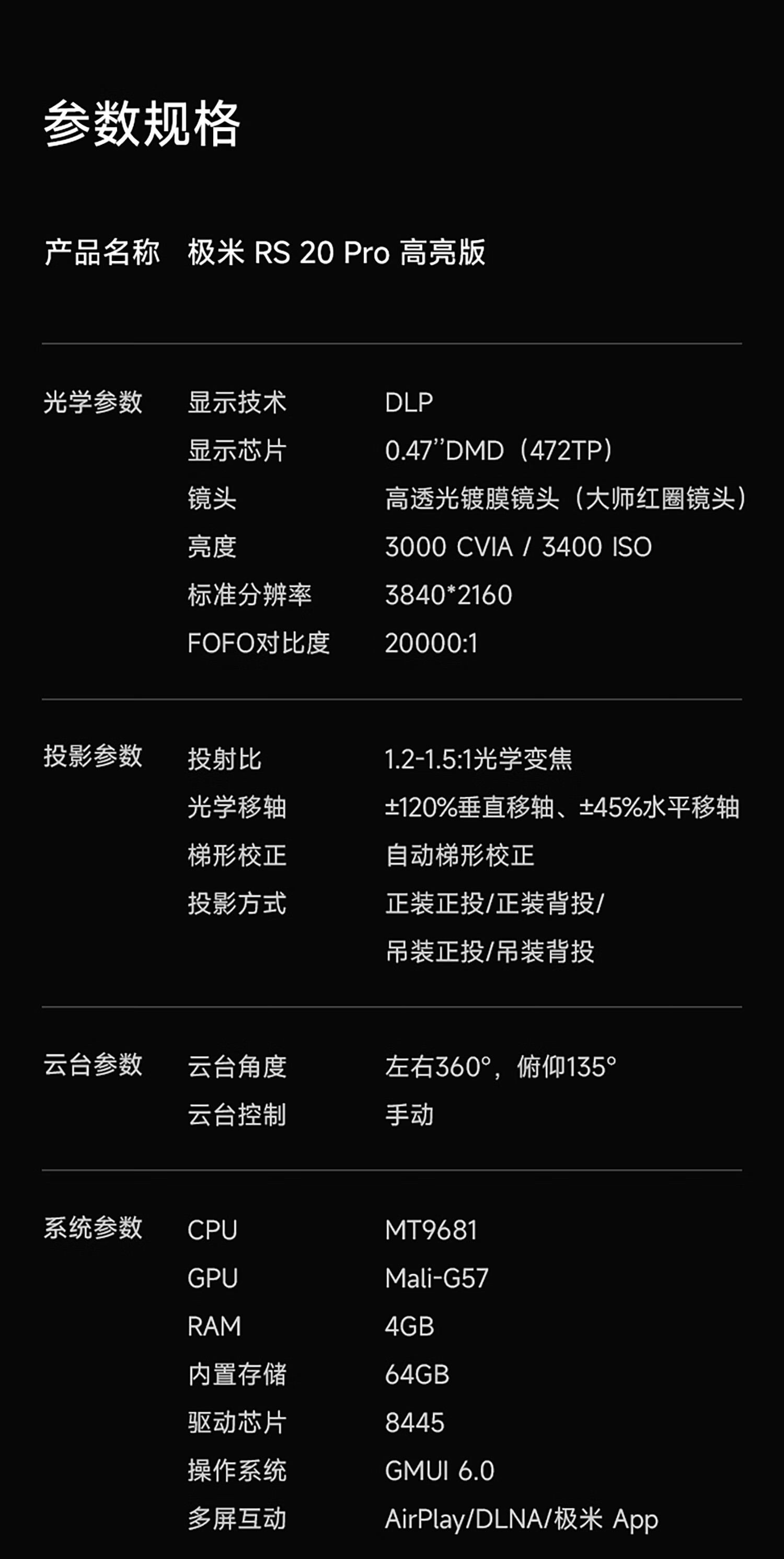 极米RS 20 Pro 高亮版 全新三色激光变焦移轴高刷投影 3000CVIA 家用投影仪 4K超清 国家补贴
