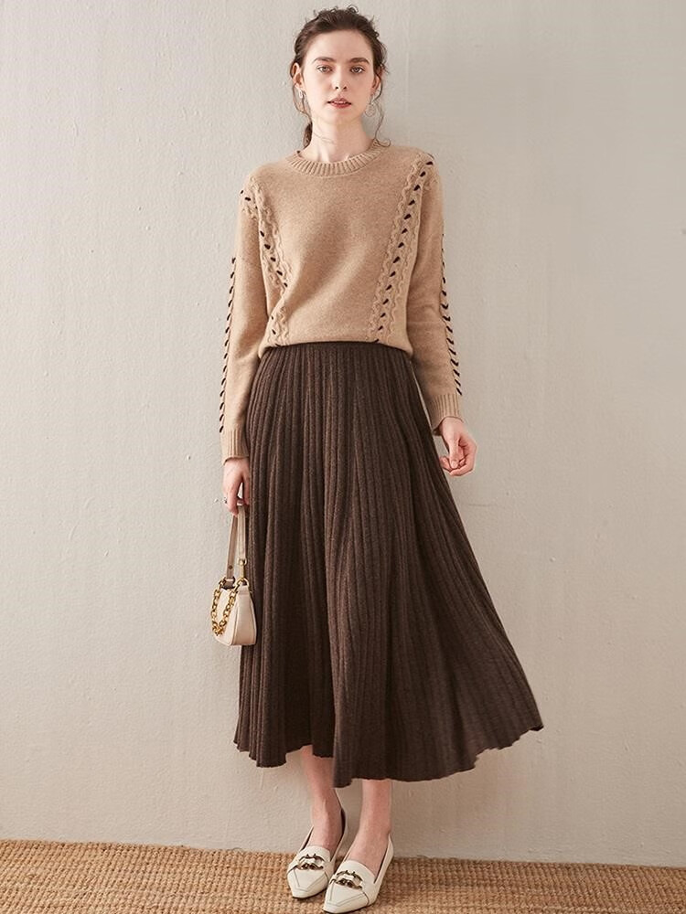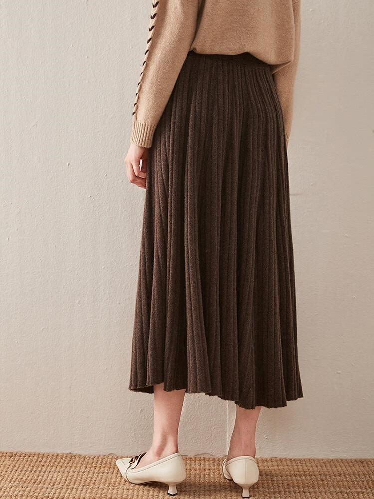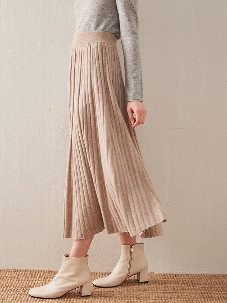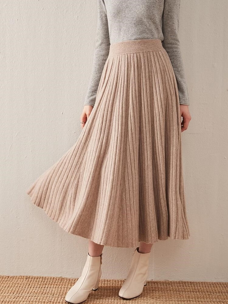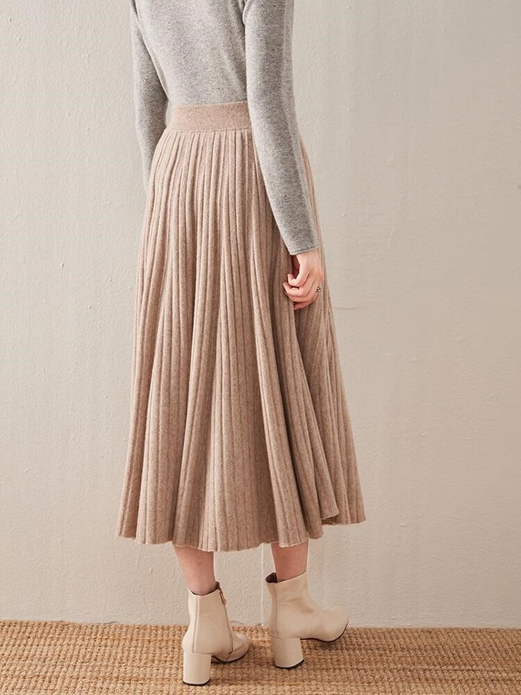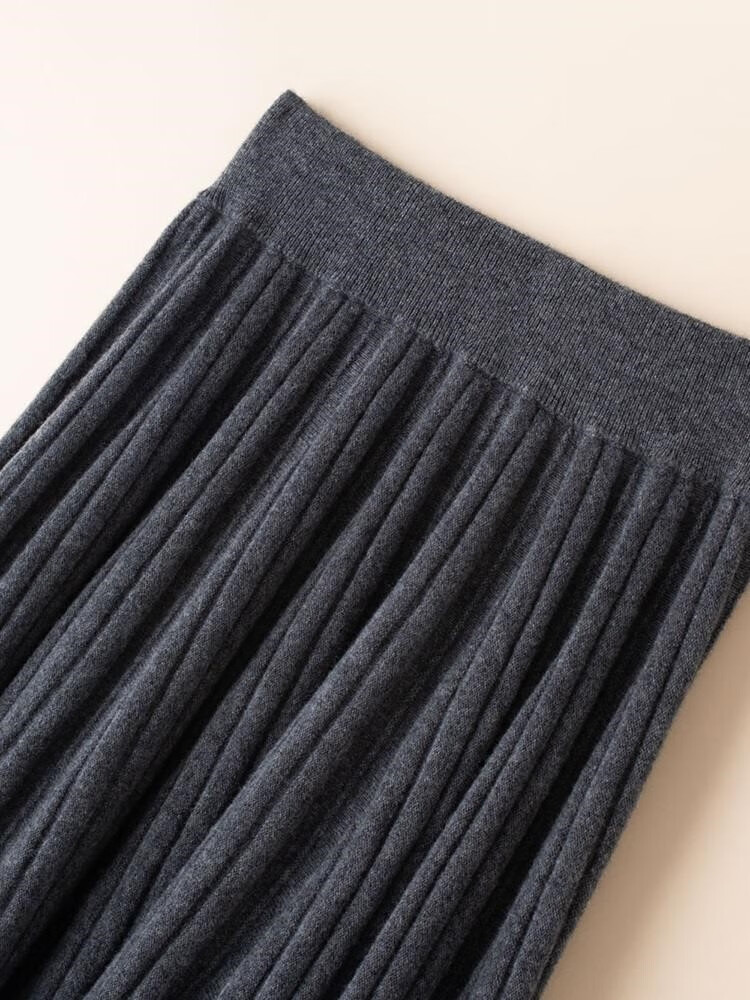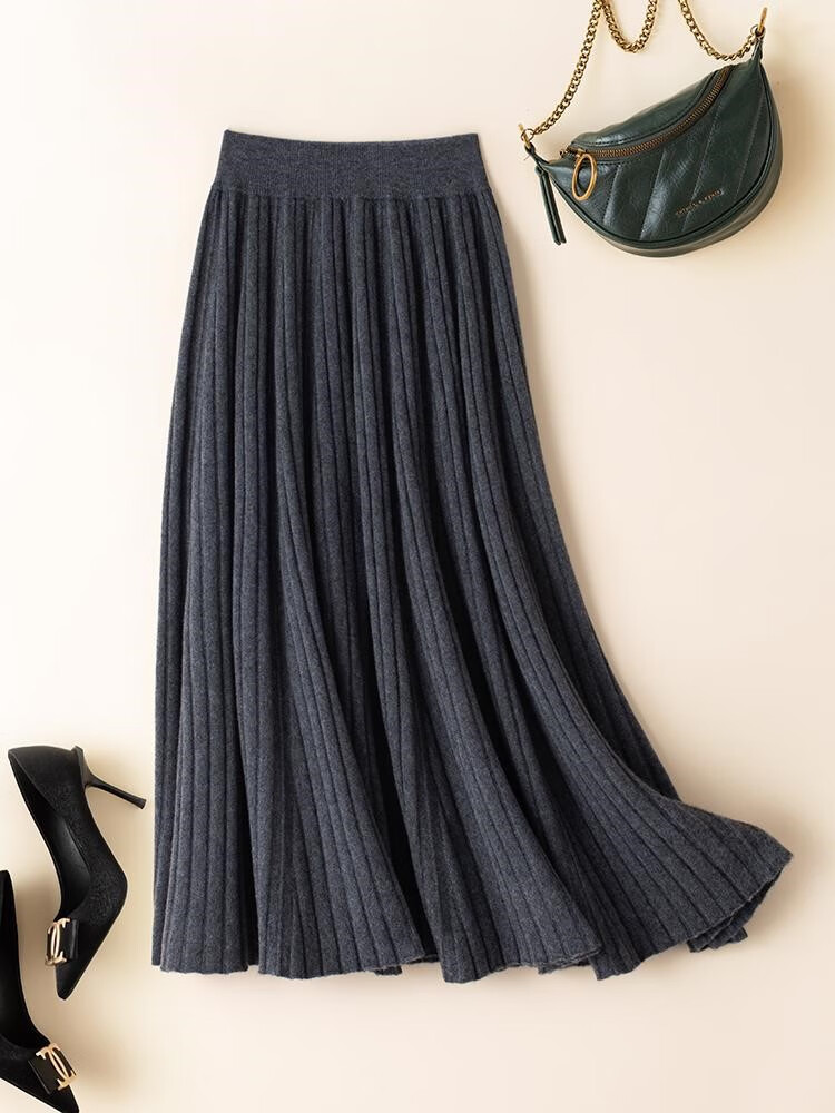 EMZ鄂尔多斯100纯羊毛半身裙女秋冬中长款高腰百褶大摆裙A字裙针织裙 黑色 黑色 2XL