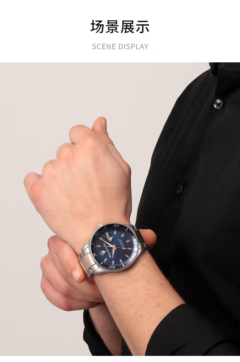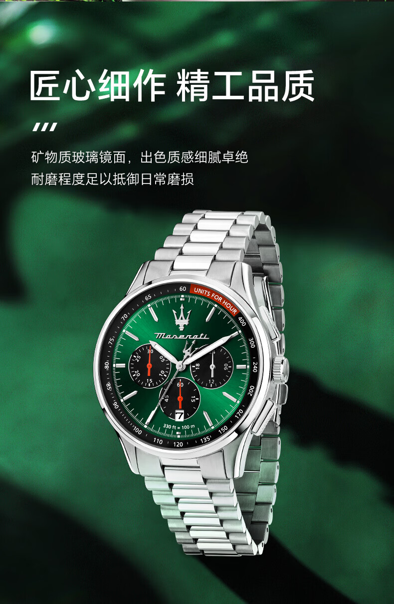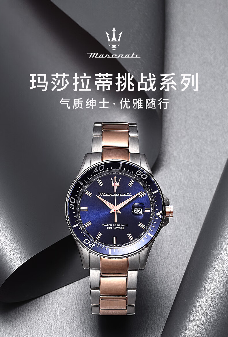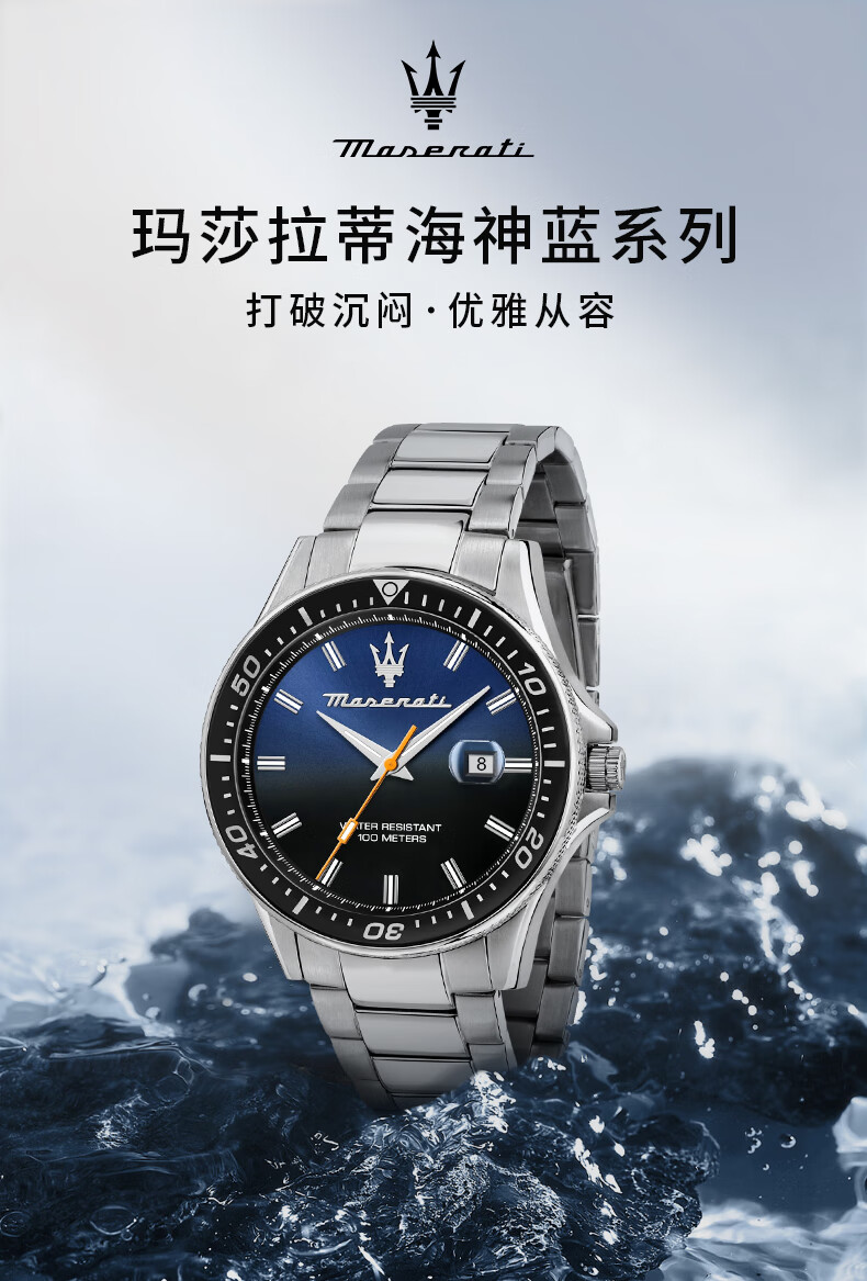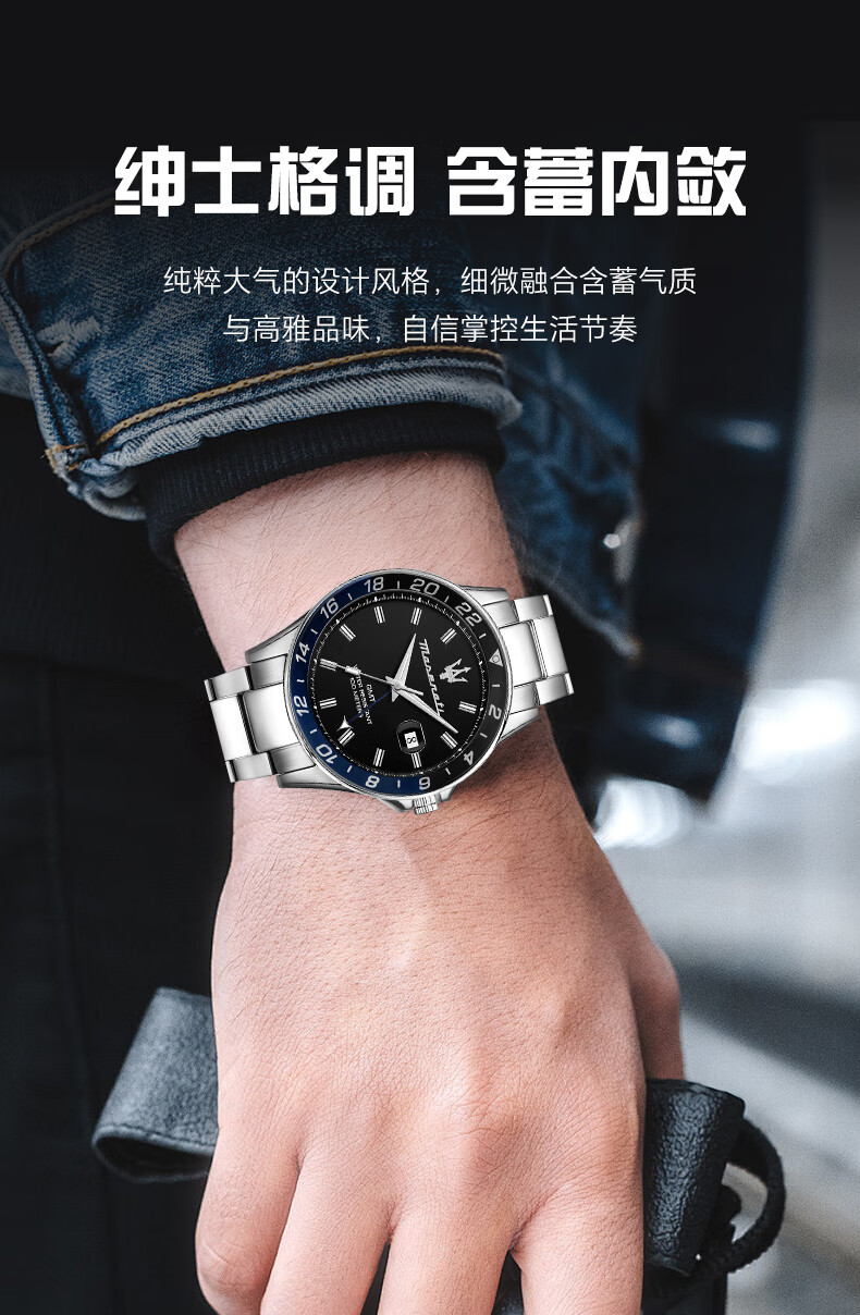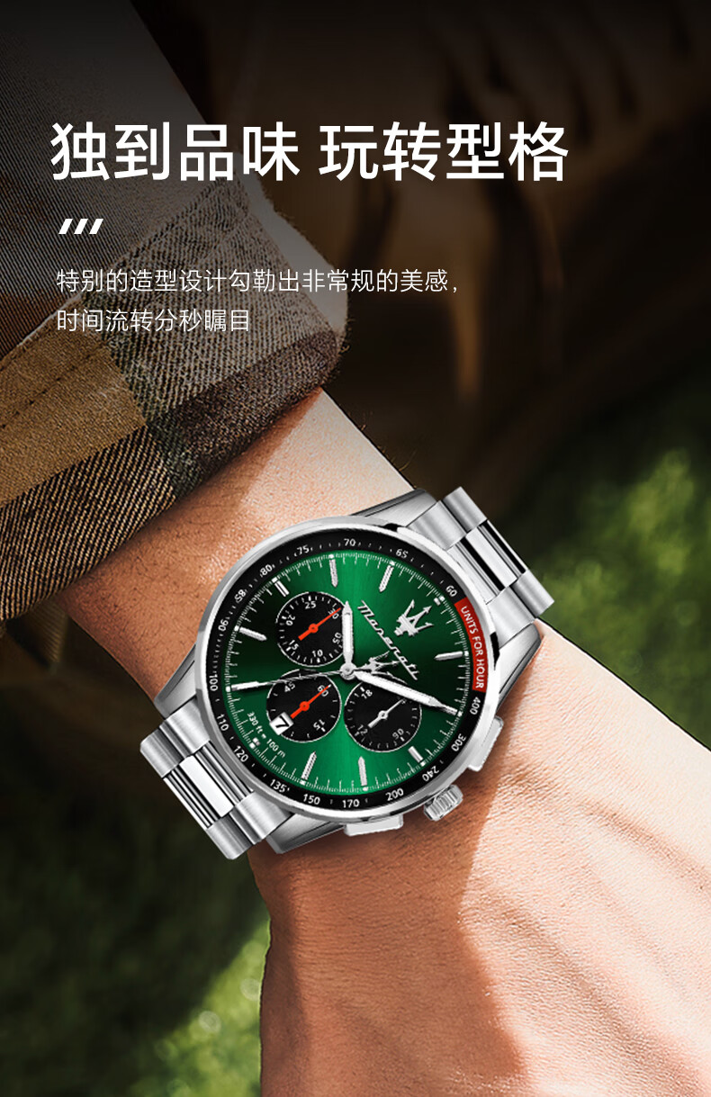 玛莎拉蒂(MASERATI)手表男绿水鬼潮流运动名表欧美正品石英表轻奢高级感男士圣诞礼物 【人气】普鲁士蓝 R8853140003
