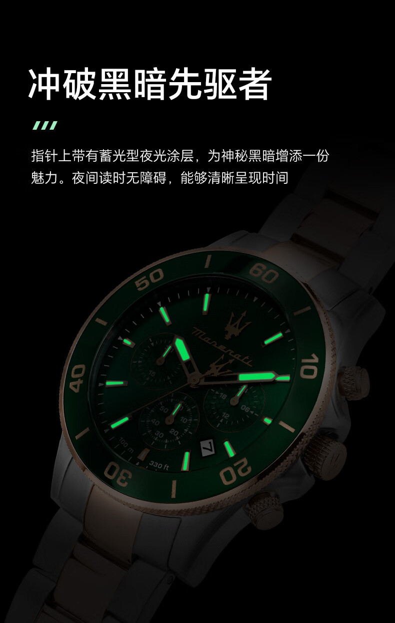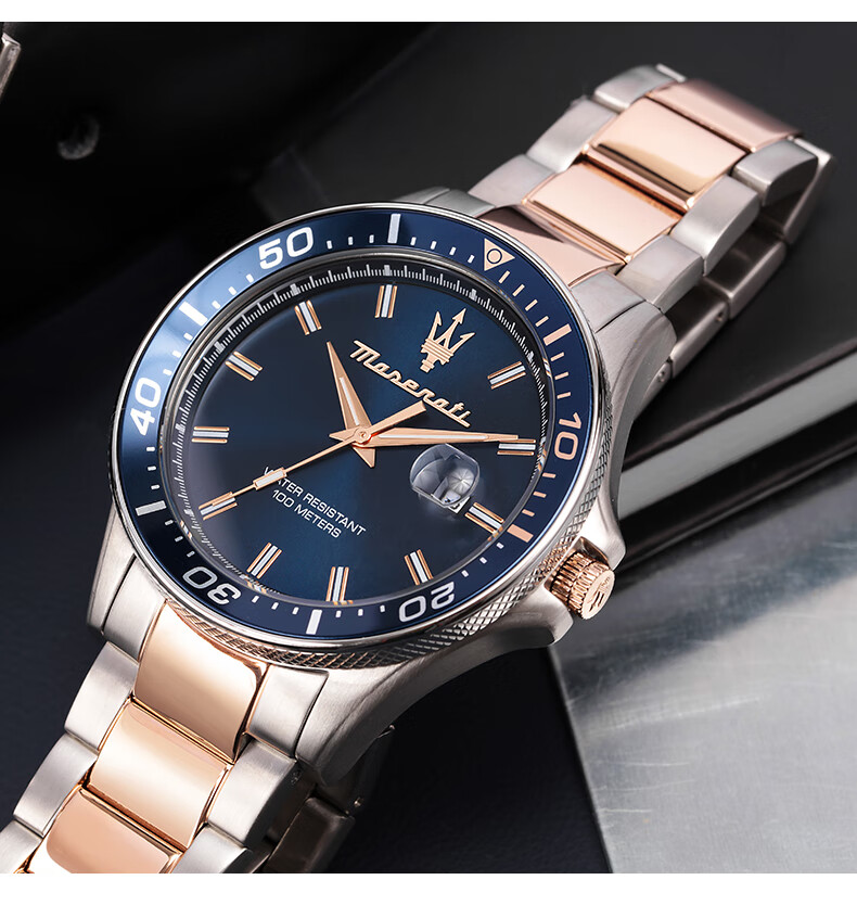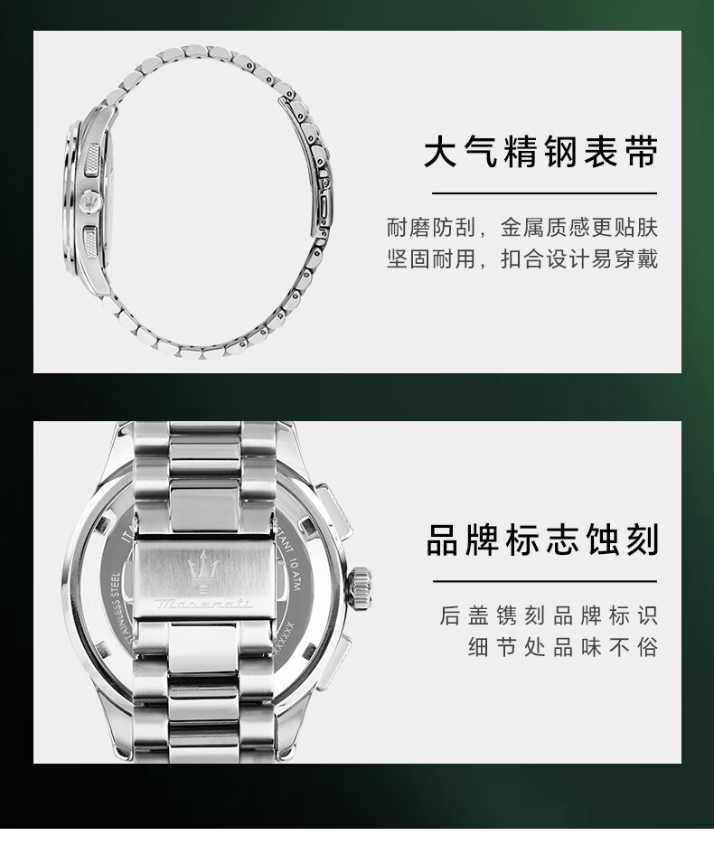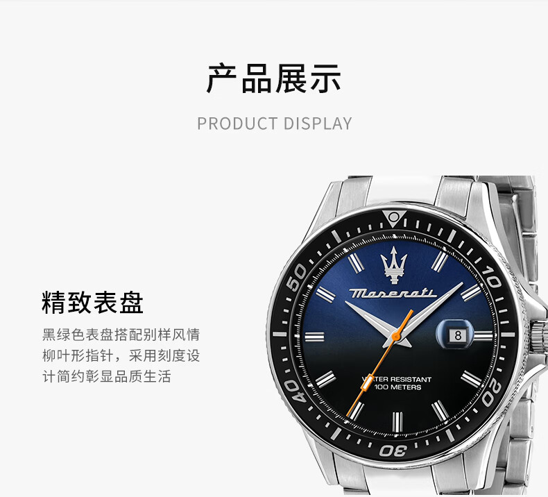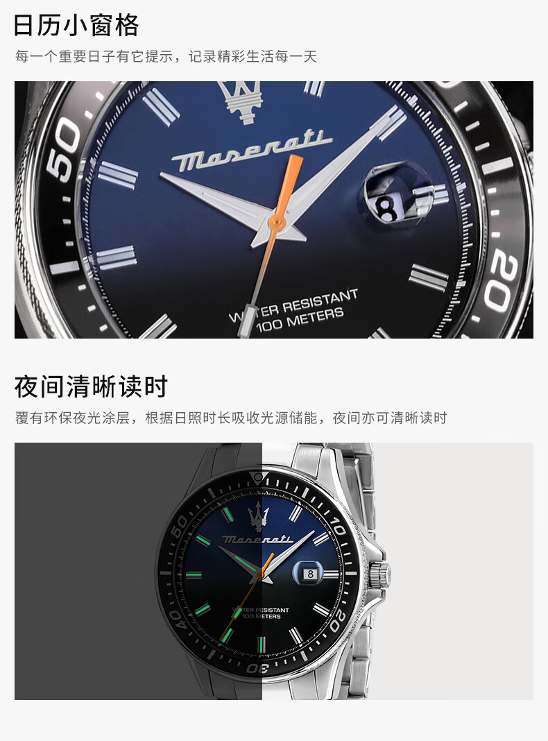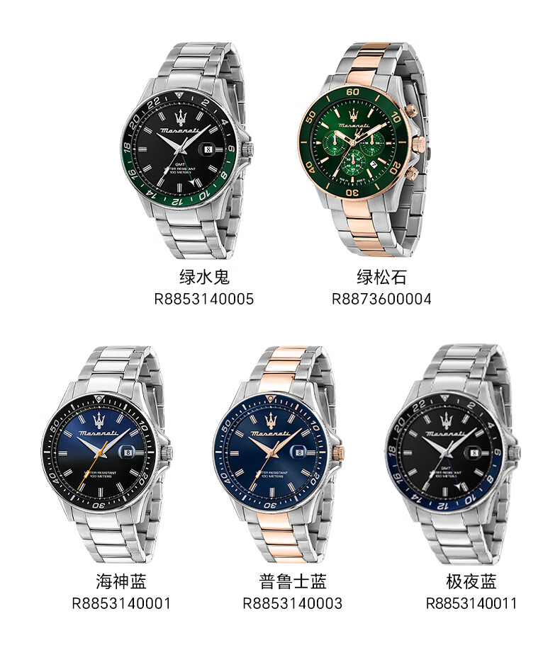 玛莎拉蒂(MASERATI)手表男绿水鬼潮流运动名表欧美正品石英表轻奢高级感男士圣诞礼物 【人气】普鲁士蓝 R8853140003