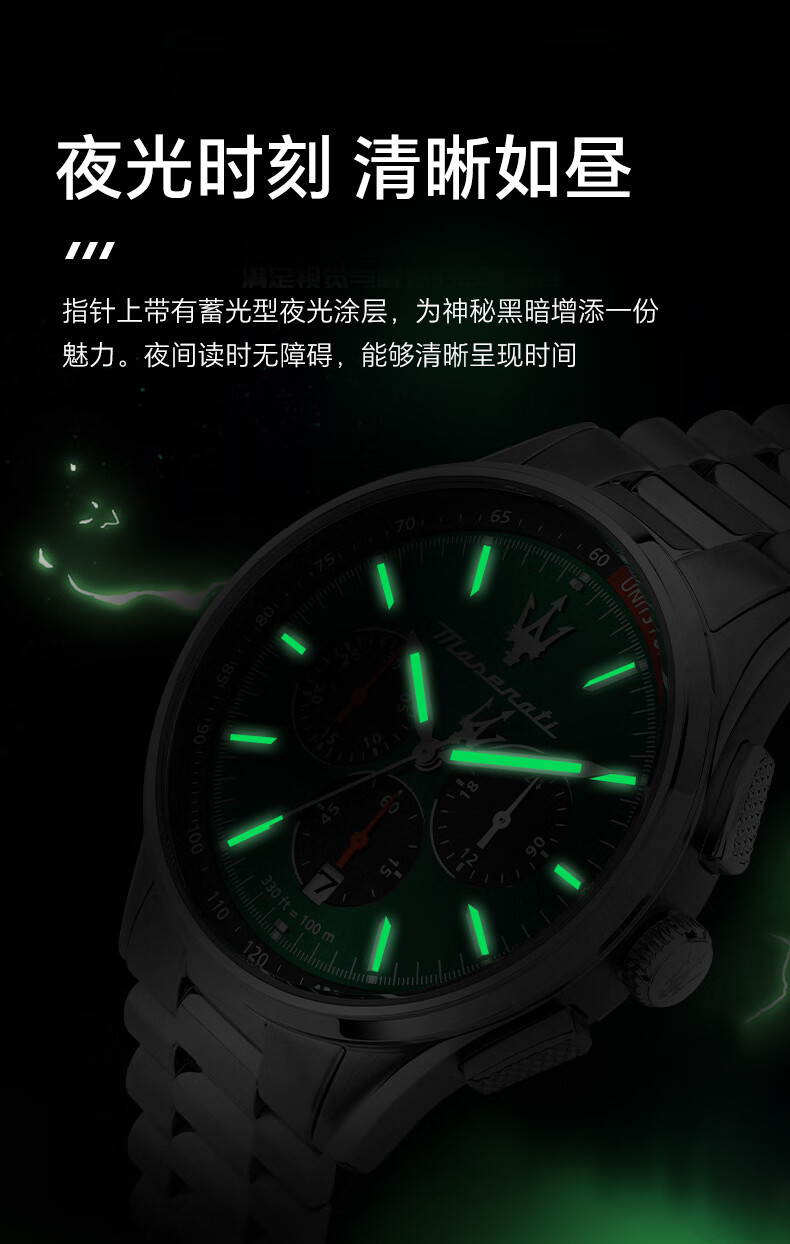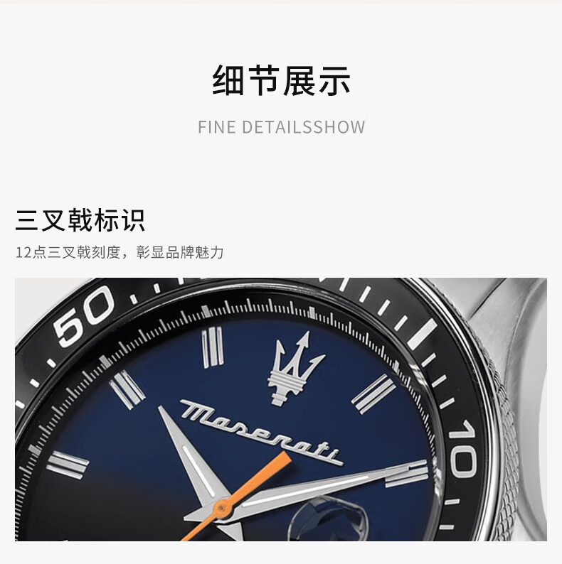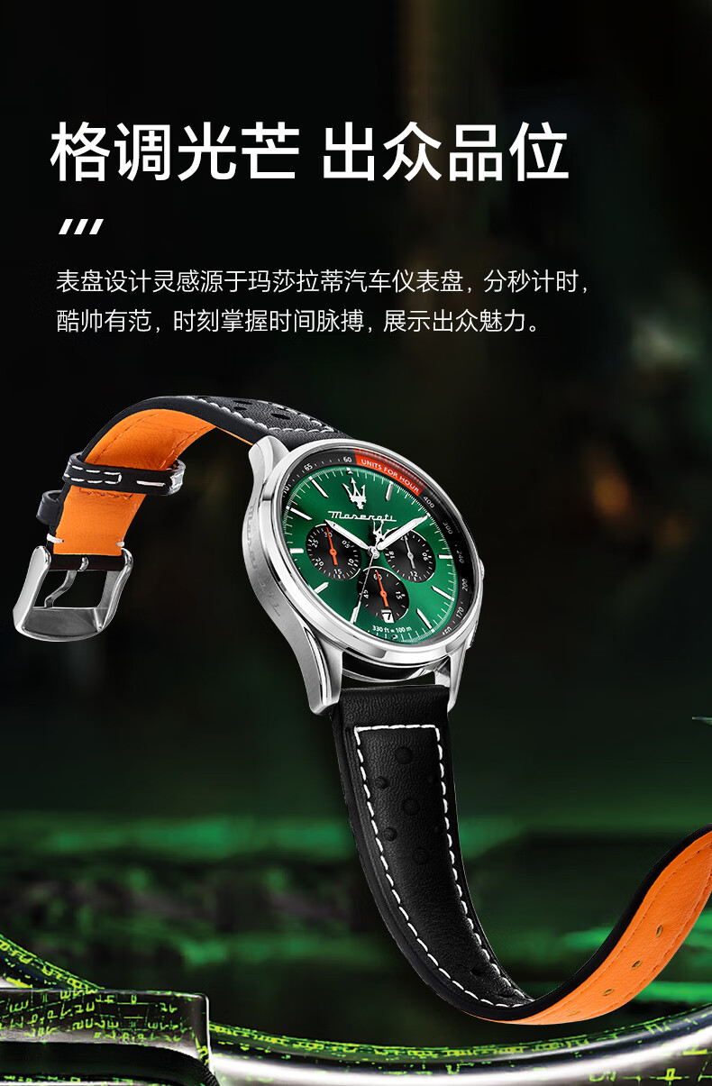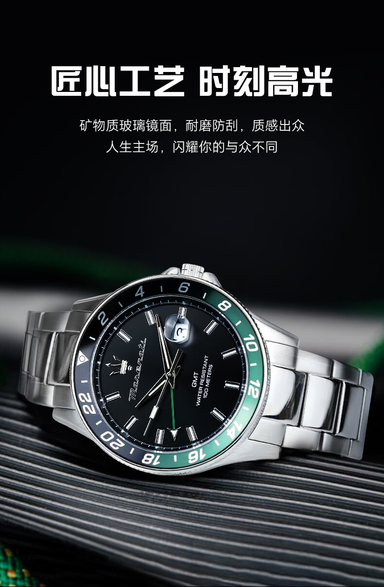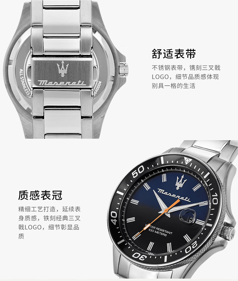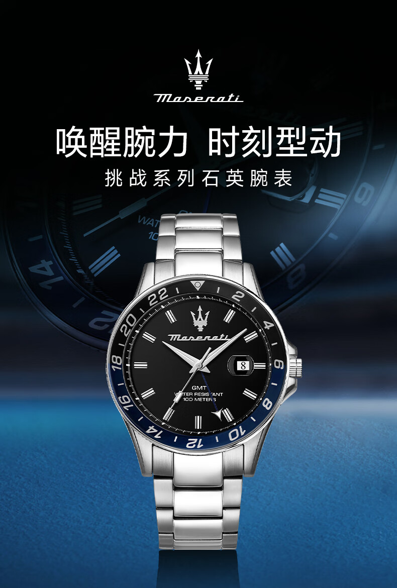 玛莎拉蒂(MASERATI)手表男绿水鬼潮流运动名表欧美正品石英表轻奢高级感男士圣诞礼物 【人气】普鲁士蓝 R8853140003