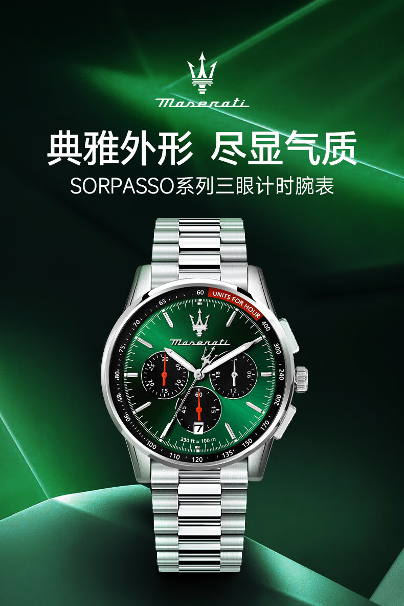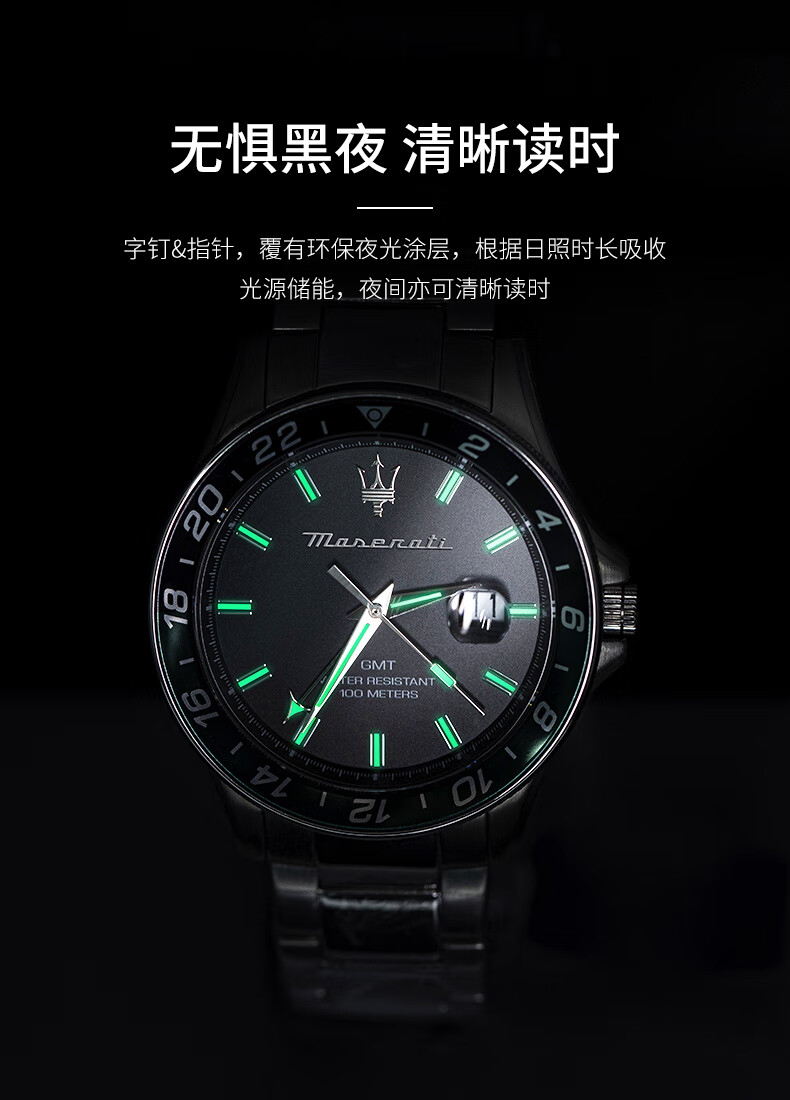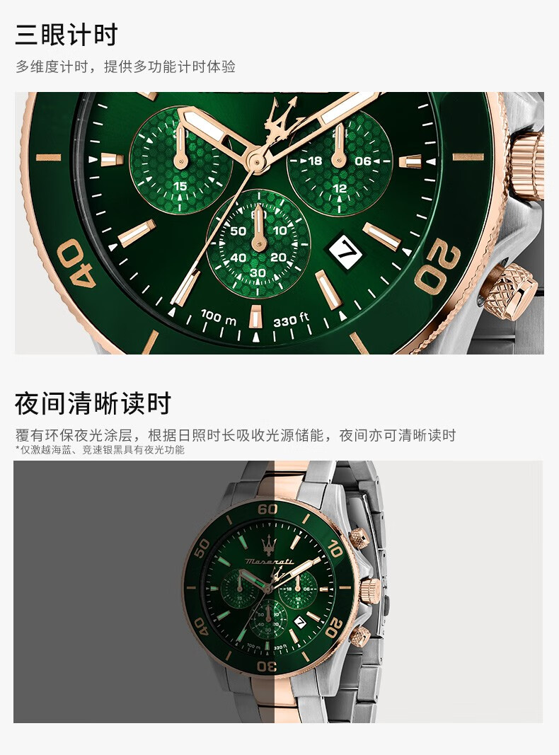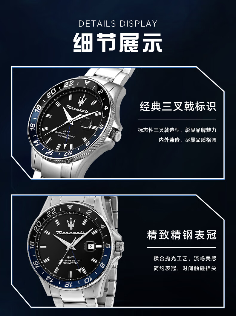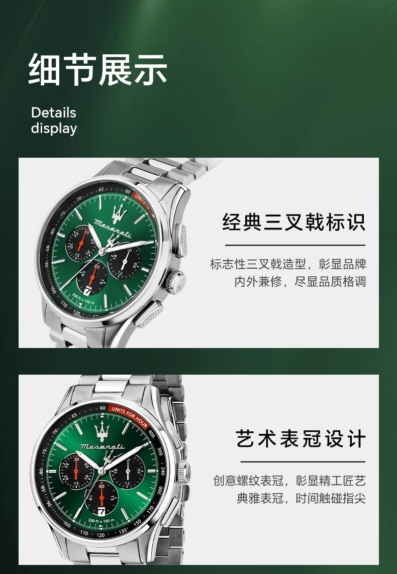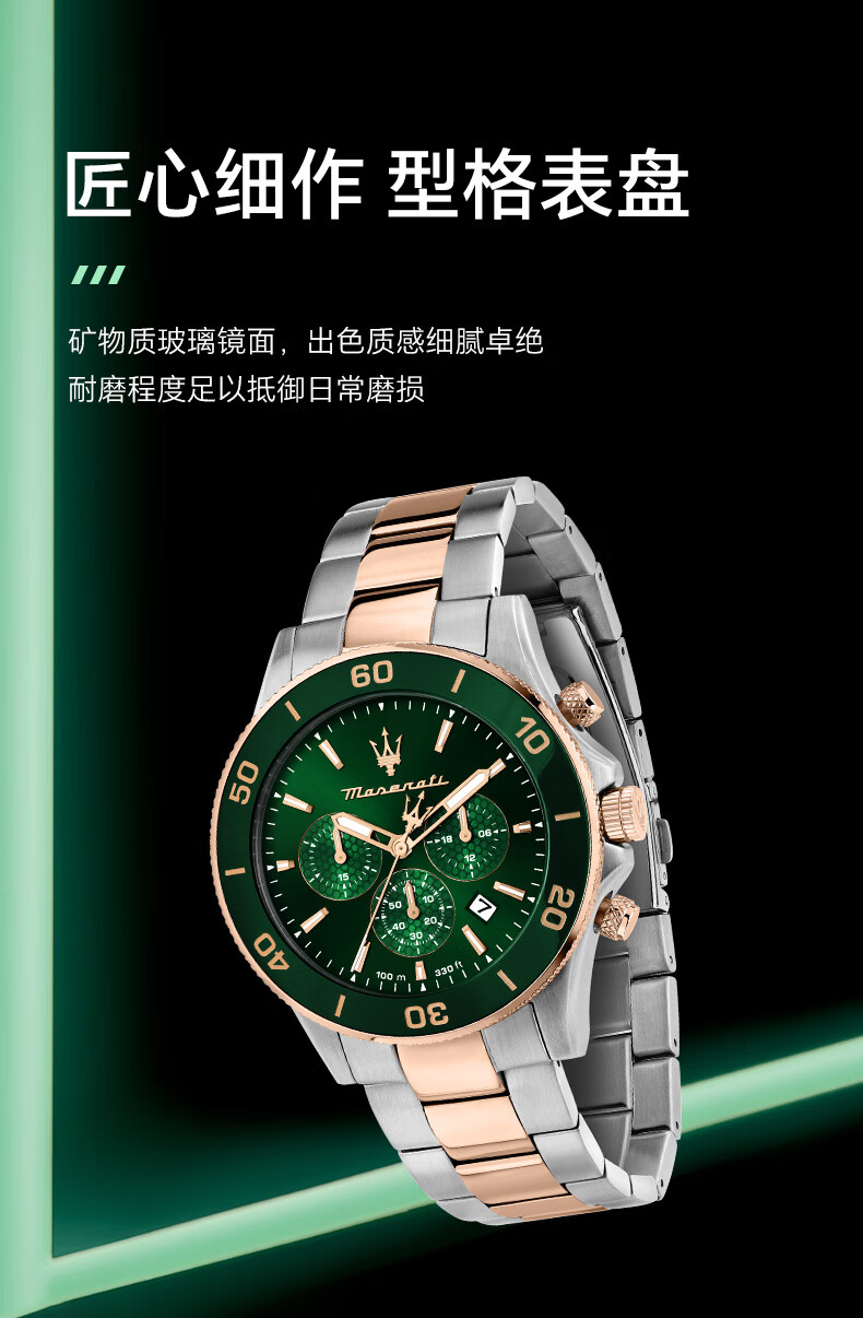 玛莎拉蒂(MASERATI)手表男绿水鬼潮流运动名表欧美正品石英表轻奢高级感男士圣诞礼物 【人气】普鲁士蓝 R8853140003