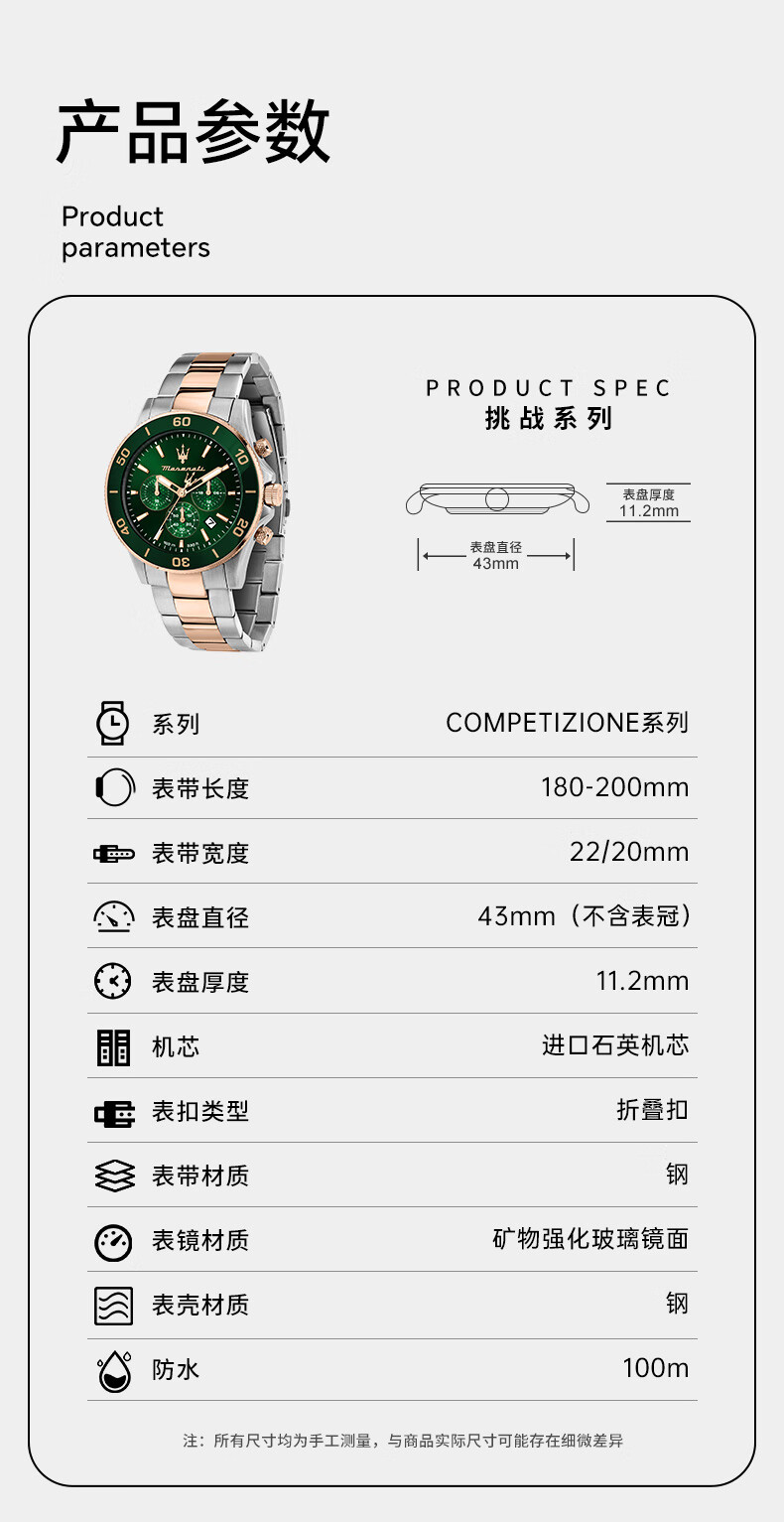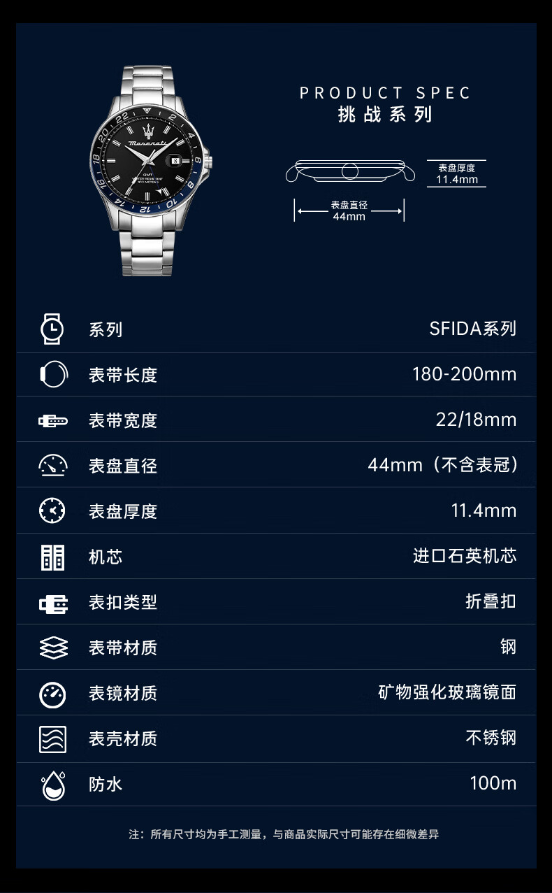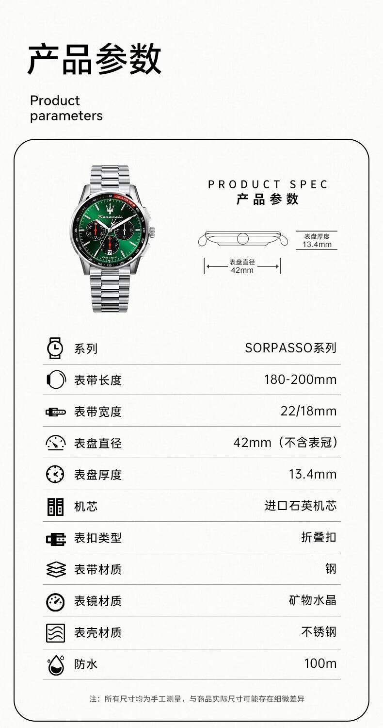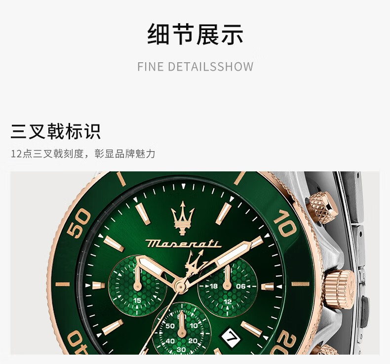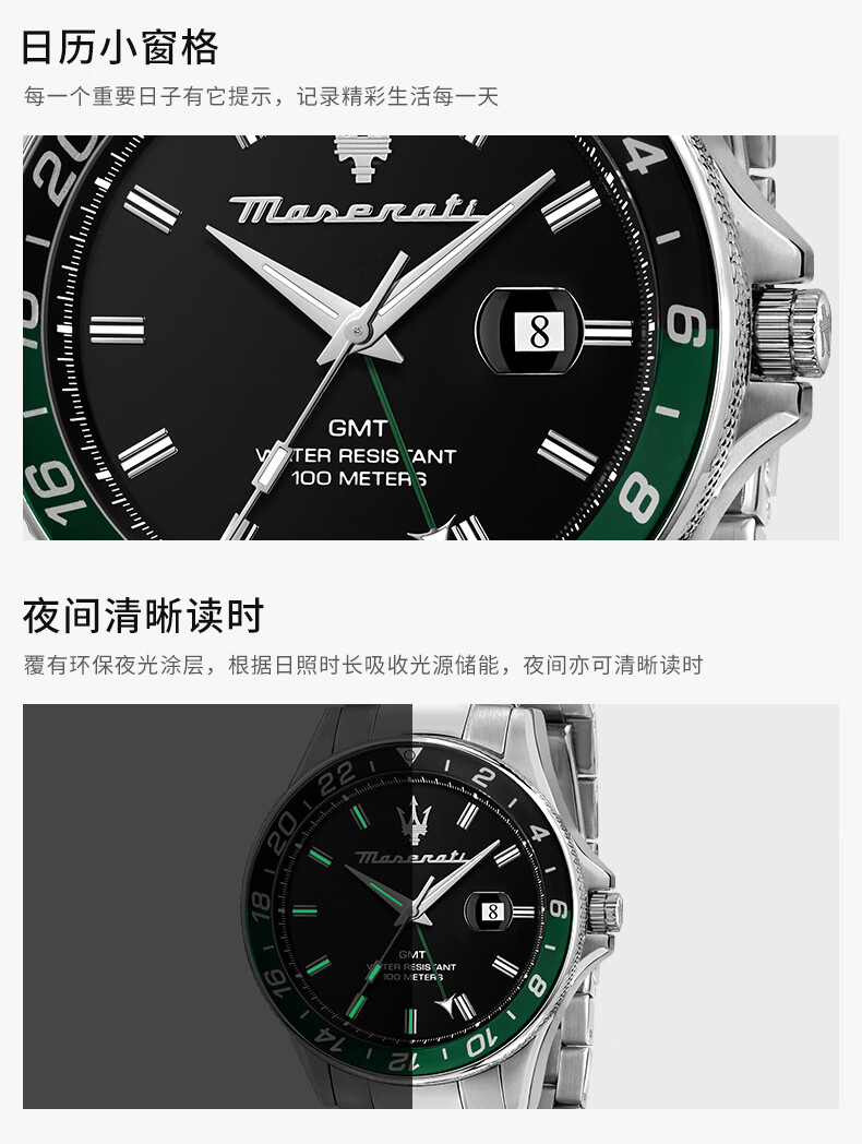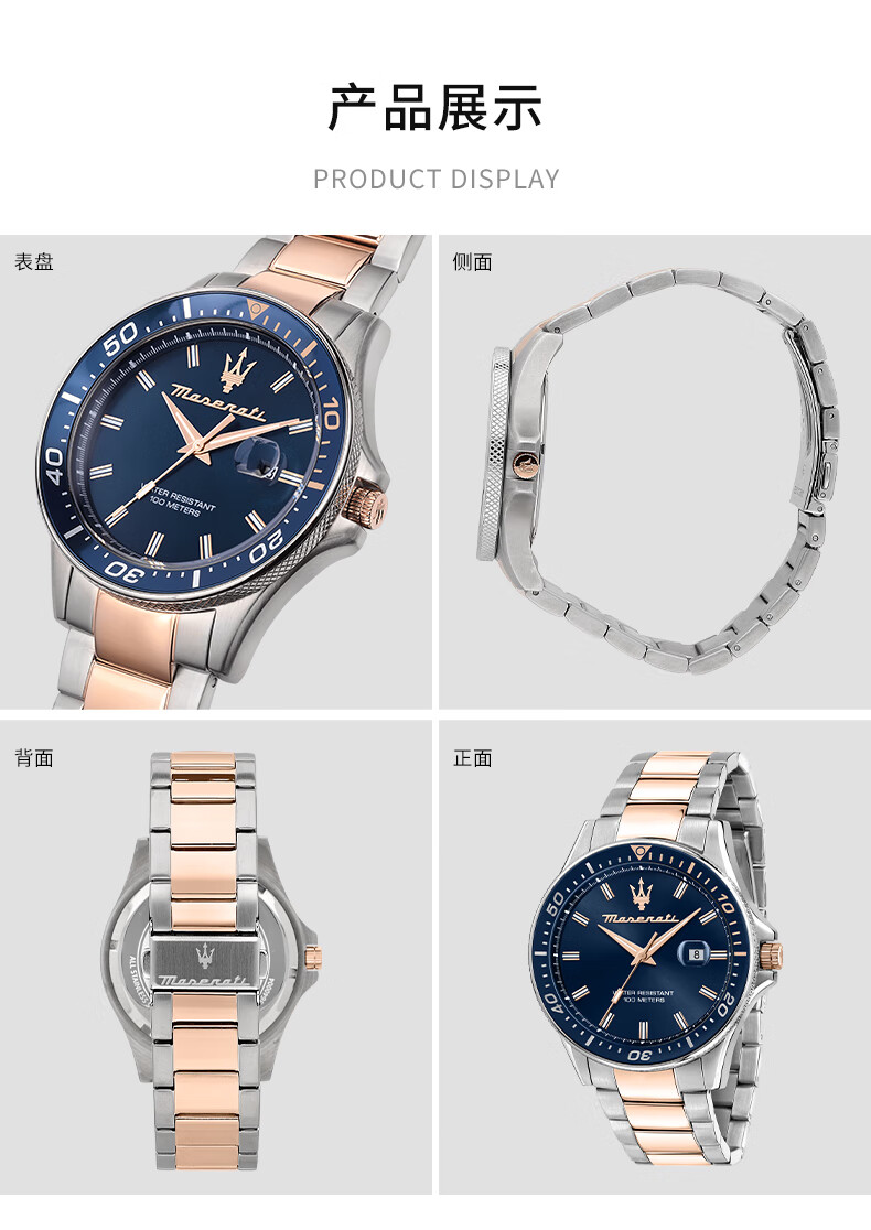 玛莎拉蒂(MASERATI)手表男绿水鬼潮流运动名表欧美正品石英表轻奢高级感男士圣诞礼物 【人气】普鲁士蓝 R8853140003