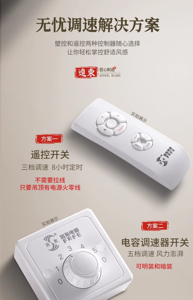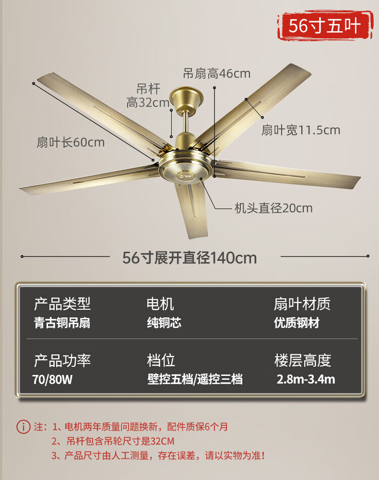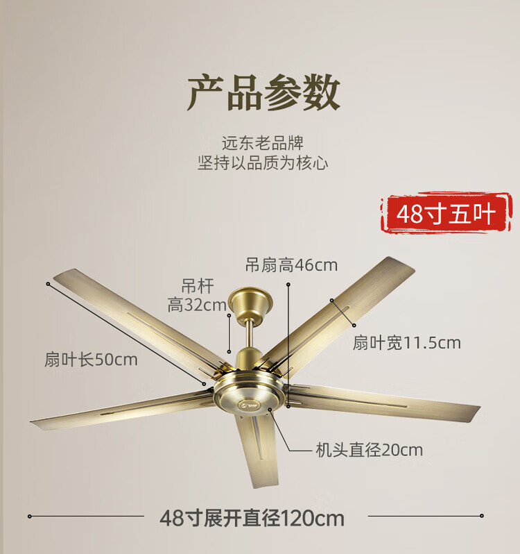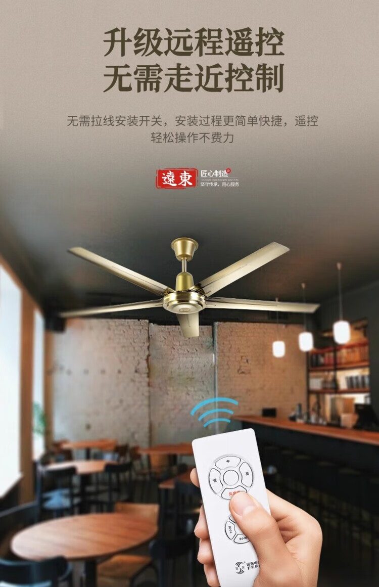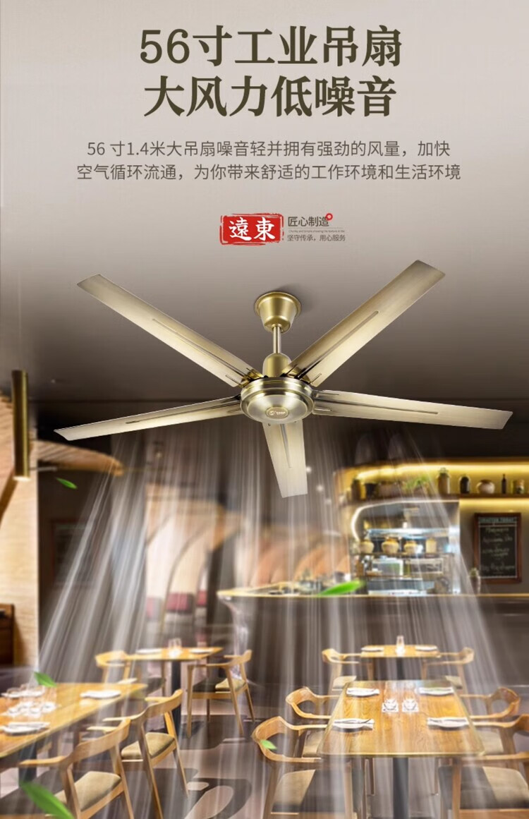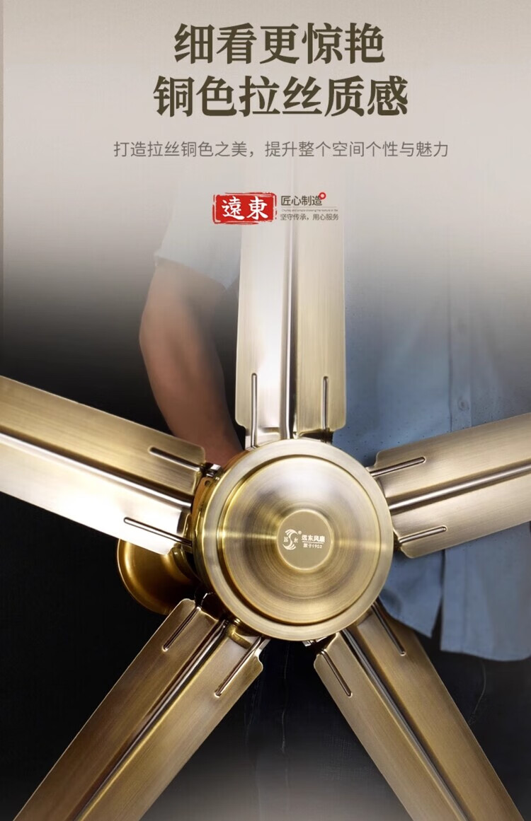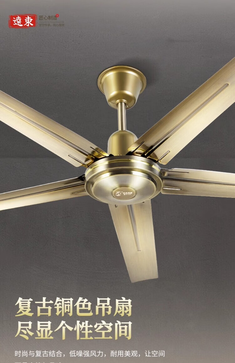 远东工业吊扇家用客厅餐厅学校仓库古铜色复古吊扇风扇老式大风力 56寸五叶古铜色壁控【纯铜电机】
