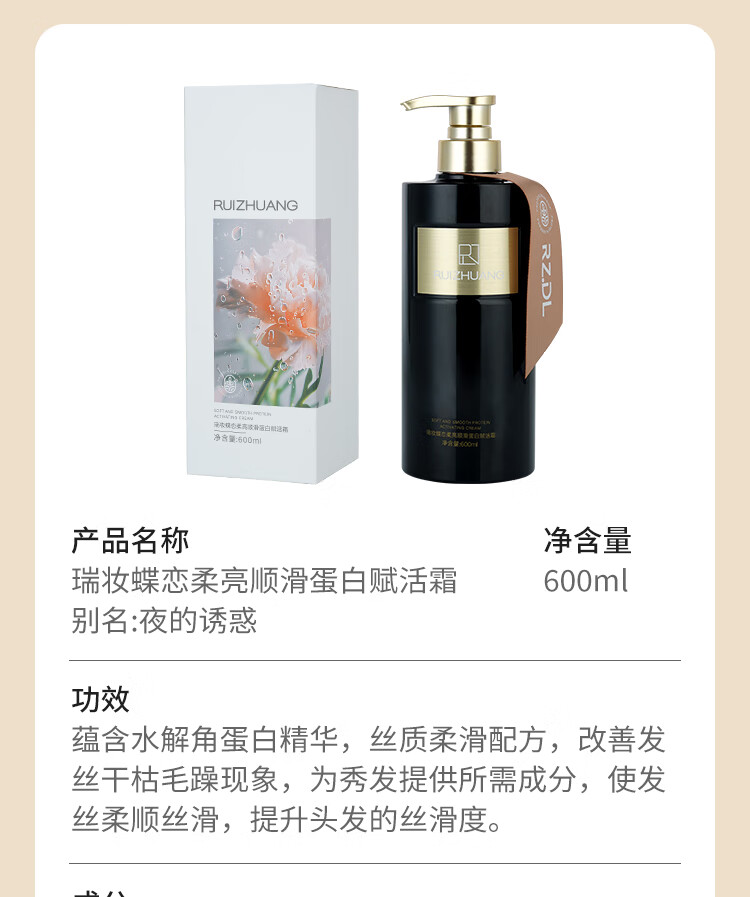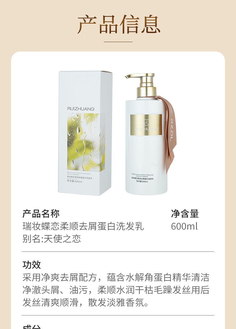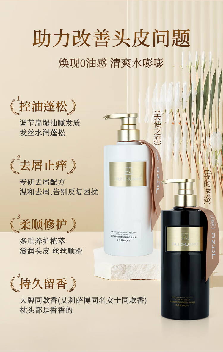 瑞妆蝶恋RZDL香水洗发水护发素去屑止痒控油蓬松修护滋润柔顺亮滑洗护套装 【天使之恋】洗+【夜的诱惑】护600ml*2
