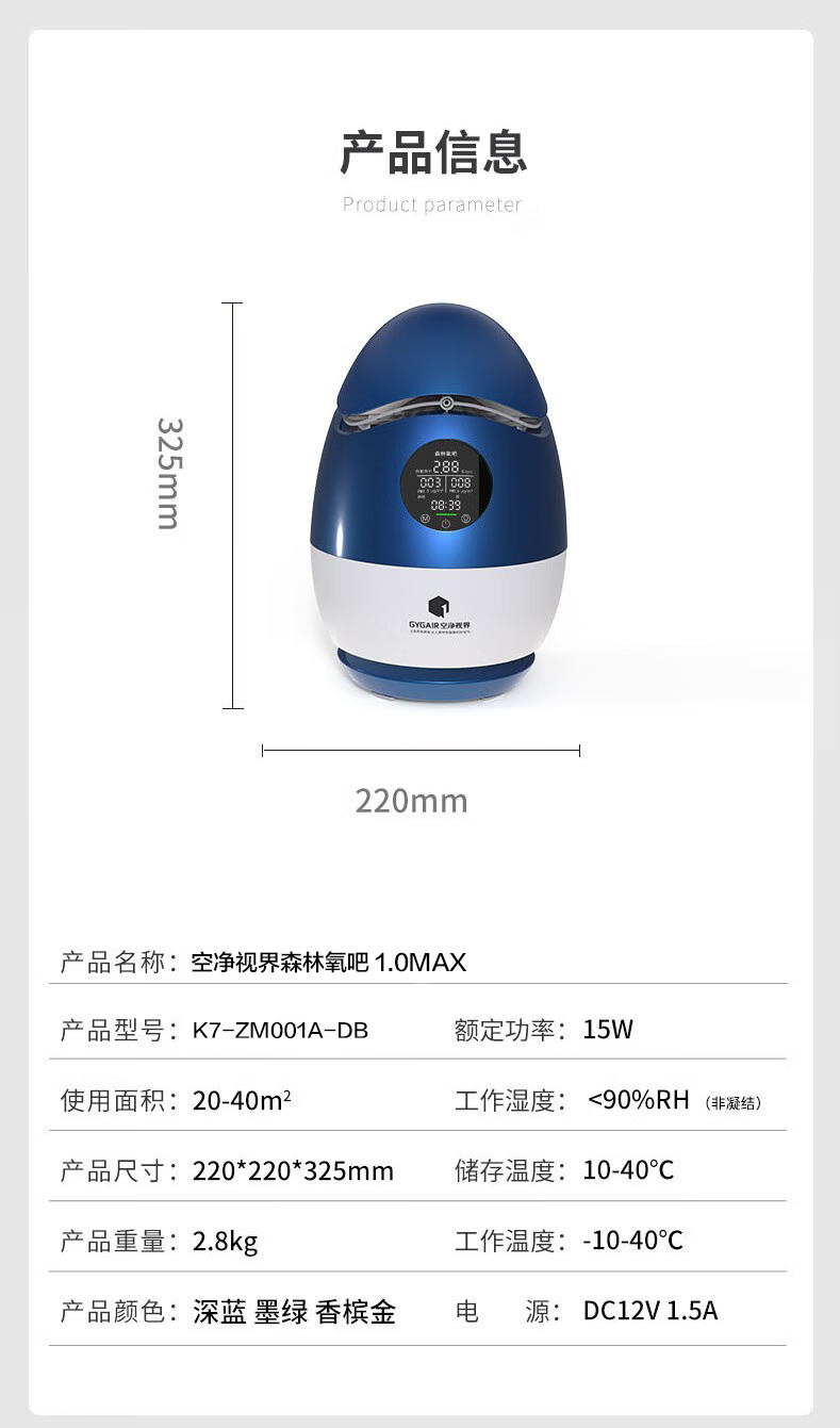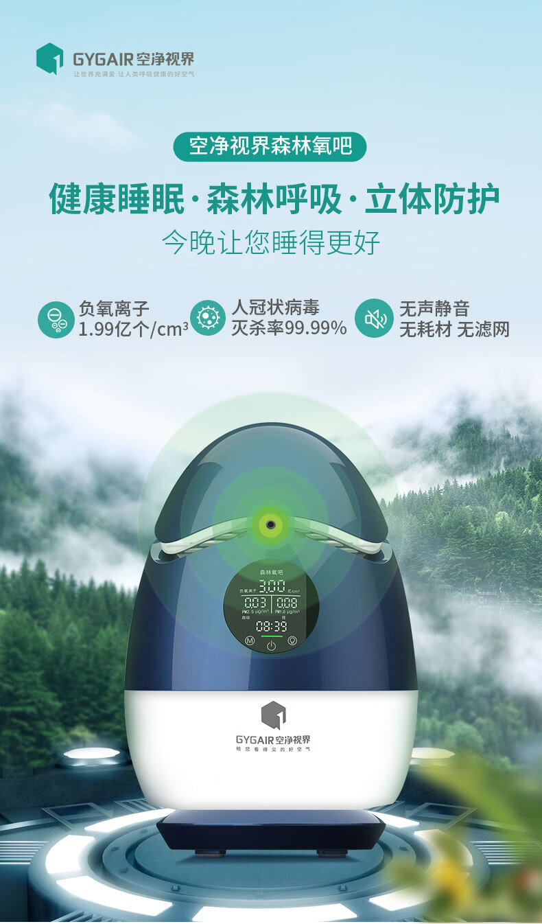 GYGAIR空净视界森林氧吧新版1.0max空气净化器清源界森林氧吧蛋有效缓解鼻炎除甲醛除菌杀毒负离子发生器 深蓝色
