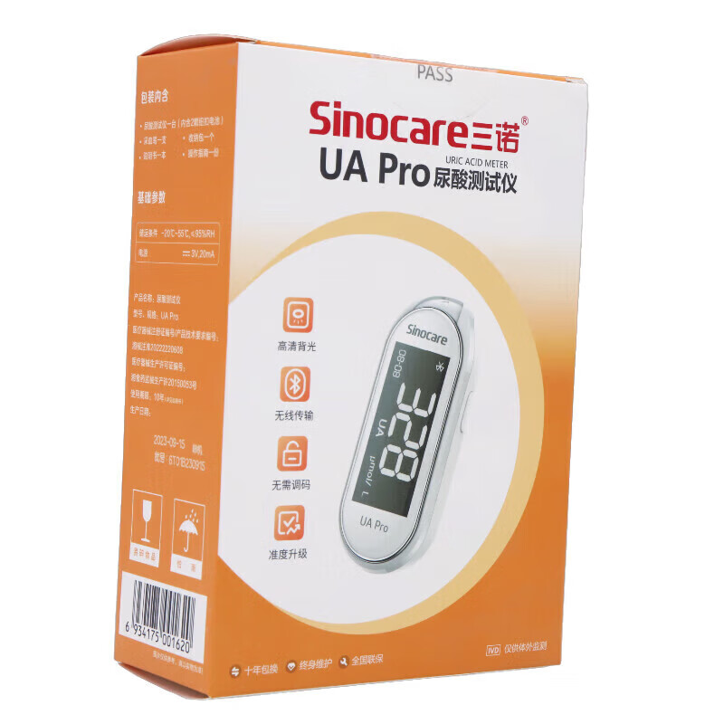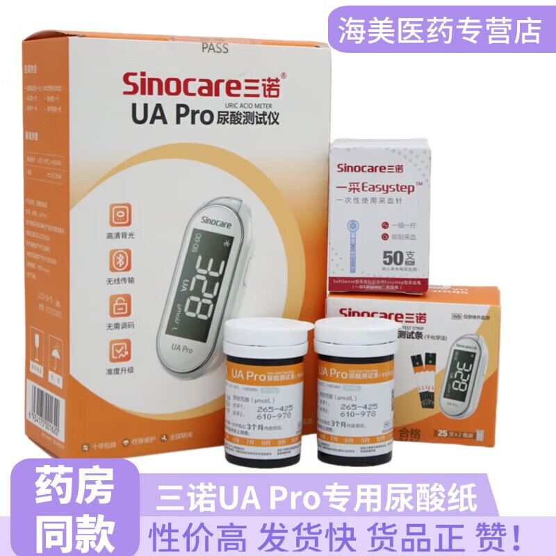 三诺(Sinocare)UAPro尿酸条尿酸检测仪准确通风医用蓝牙连接传输数据UA1 +50采血 25片尿酸试纸