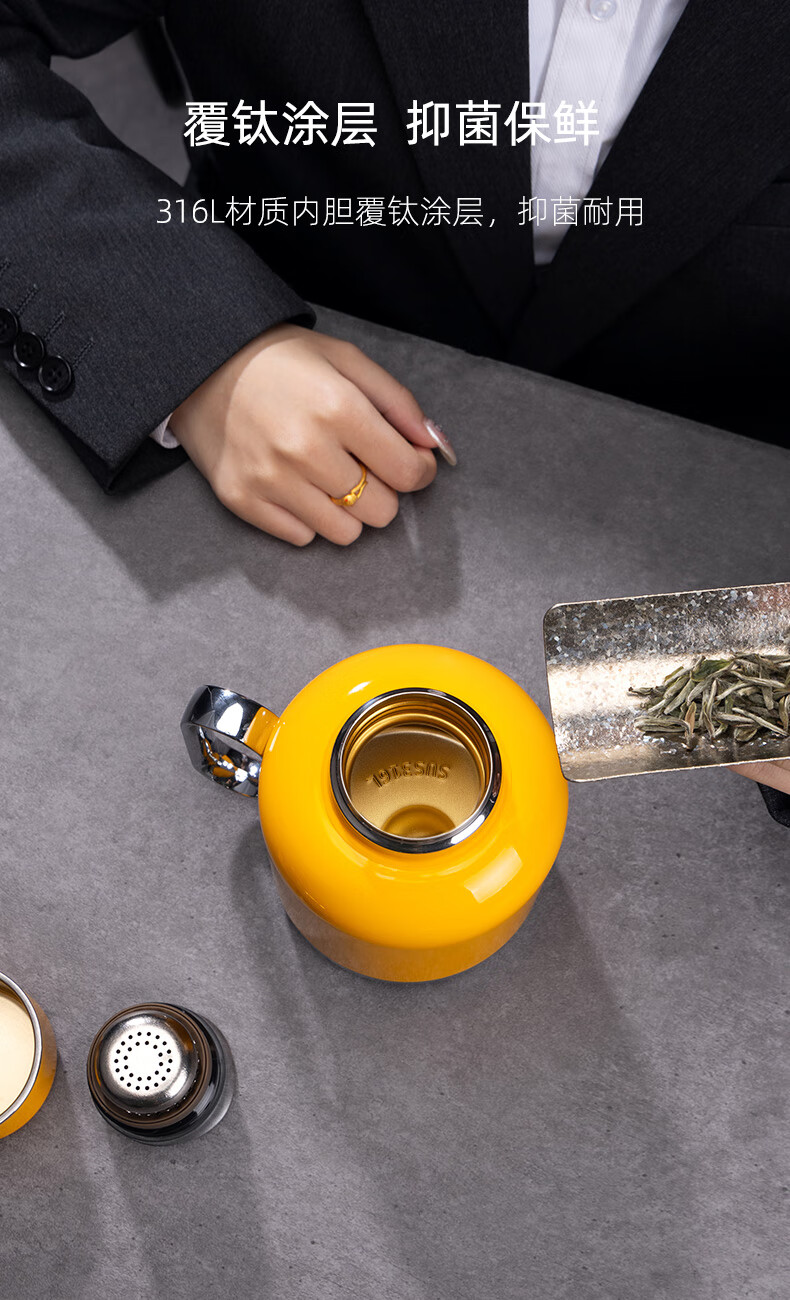 尚明(SAMADOYO)便携焖茶壶抑菌镀钛户外旅行保温杯家用办公茶水分离焖泡水杯茶具 天青色 600ml