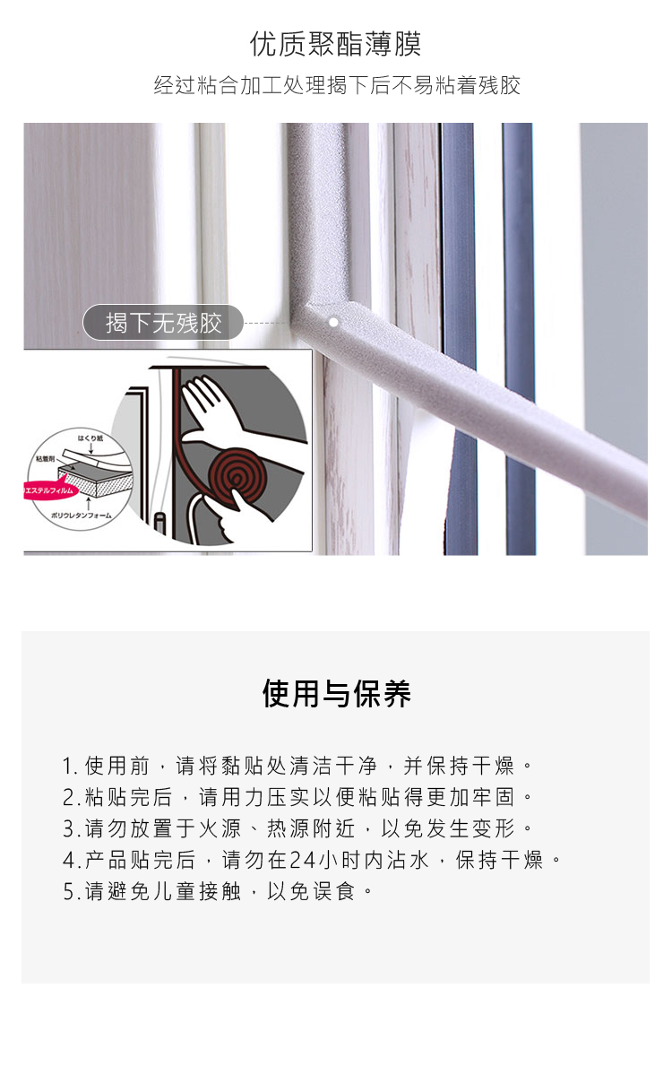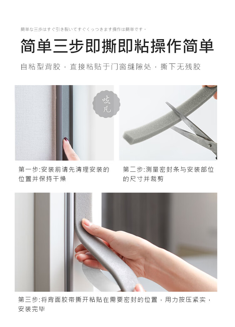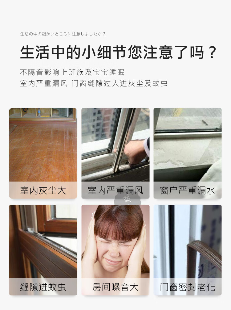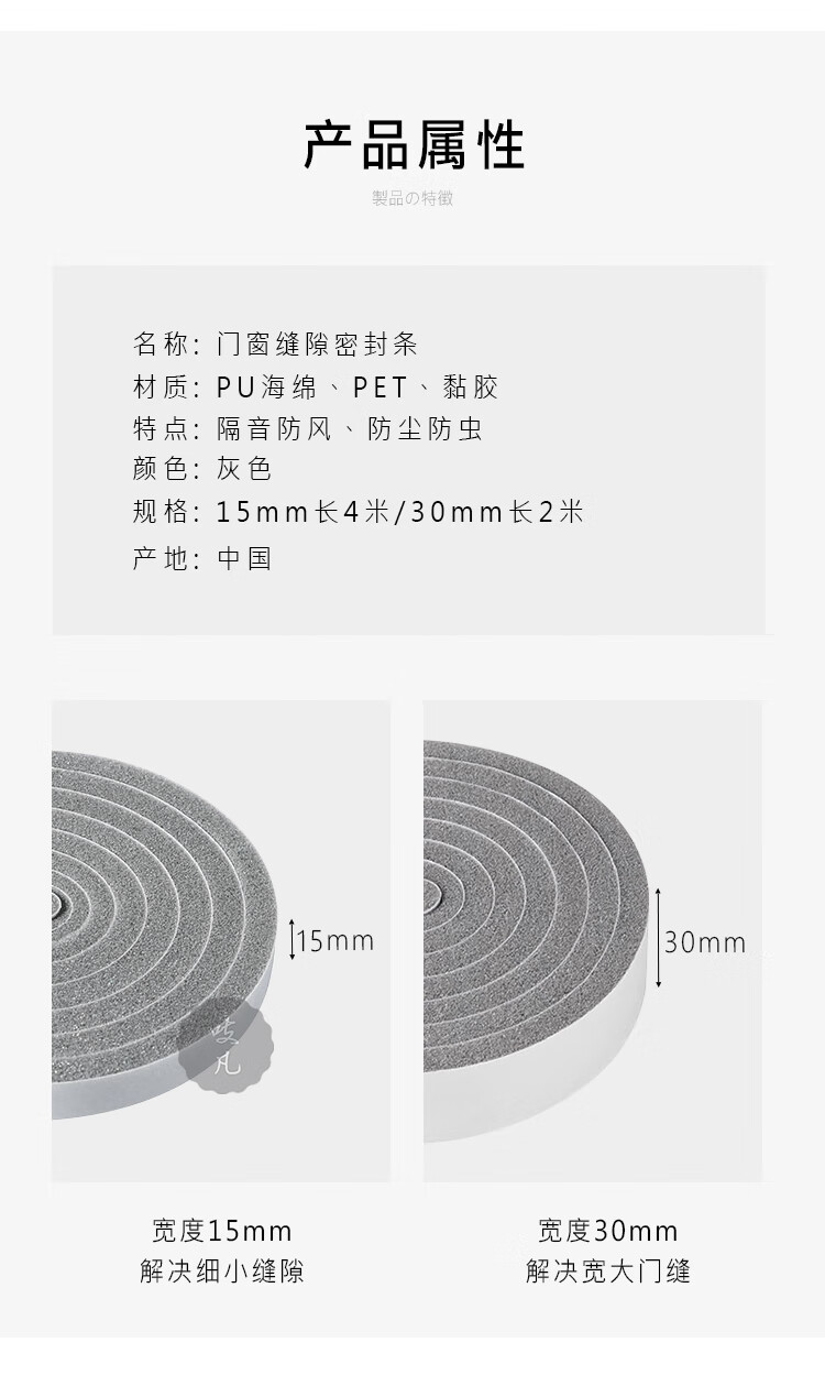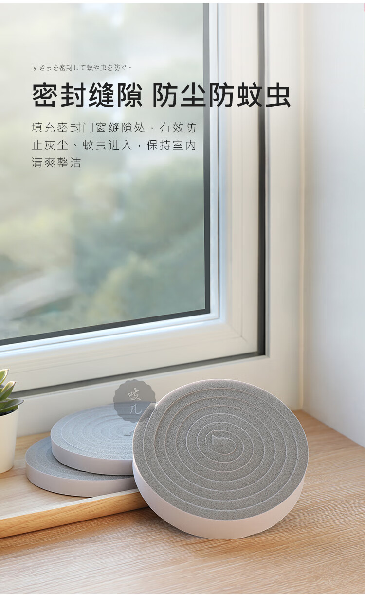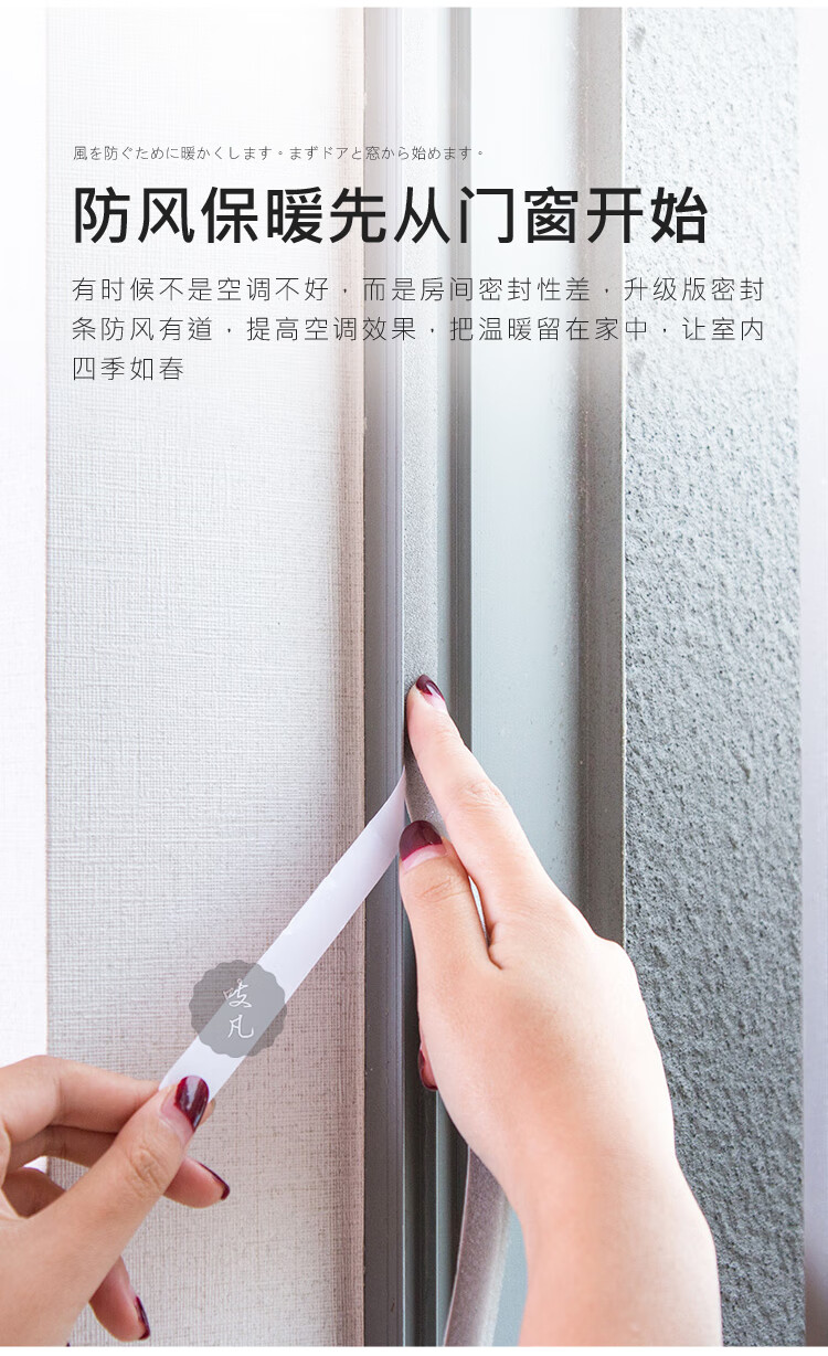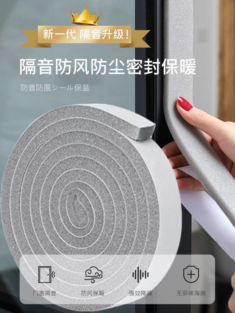 KINBATA窗户密封条门窗缝隙防风隔音贴门缝门底房门防噪音神器自粘型挡条 标准款 1.5cm*2米【3包共6卷】