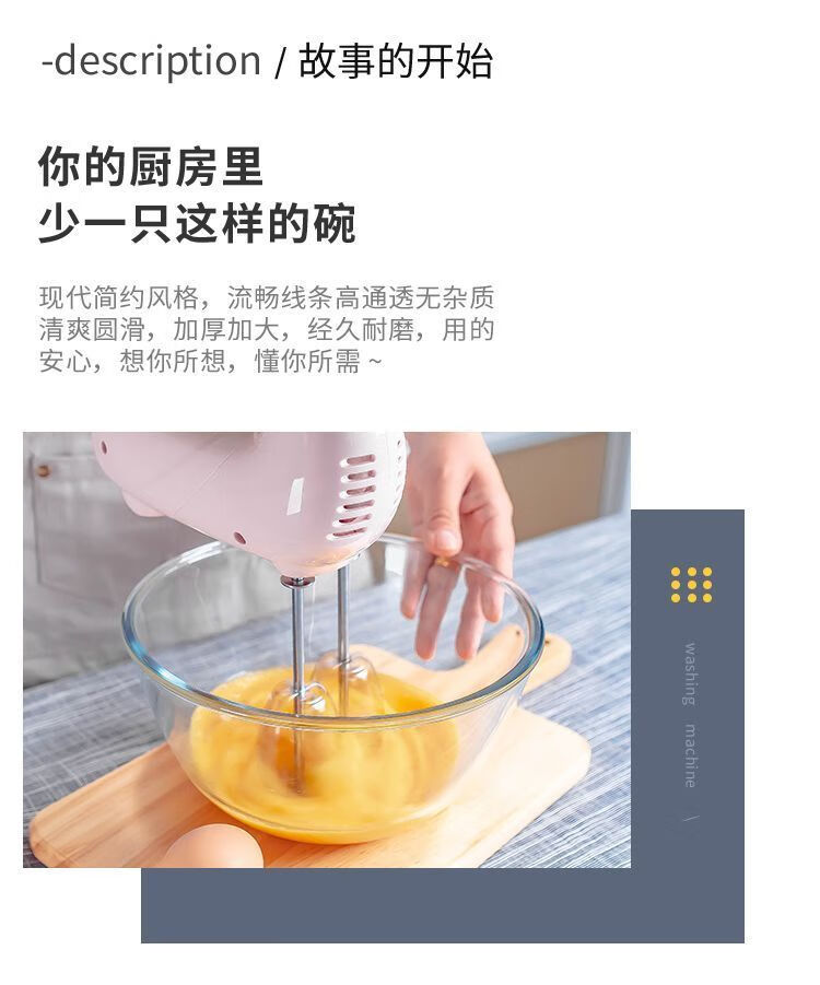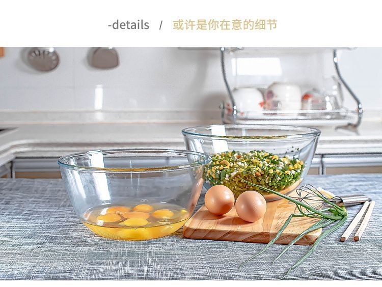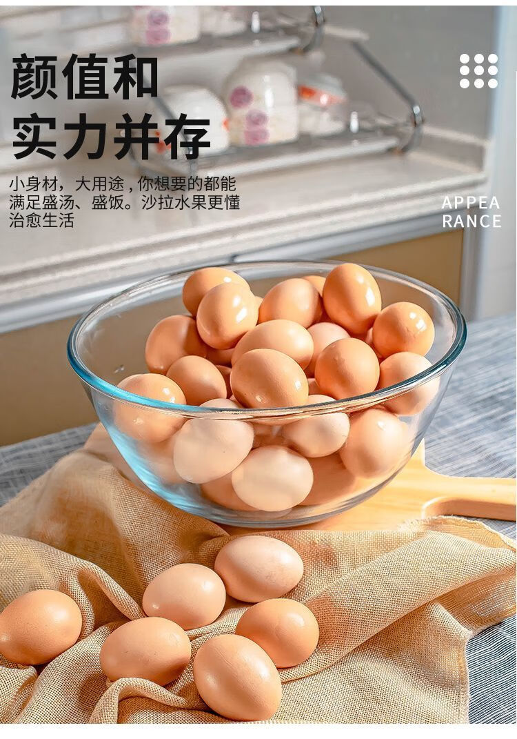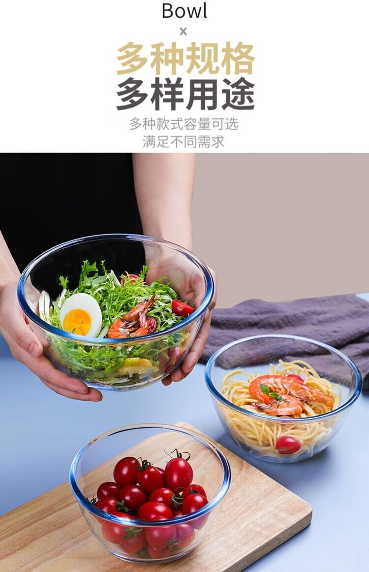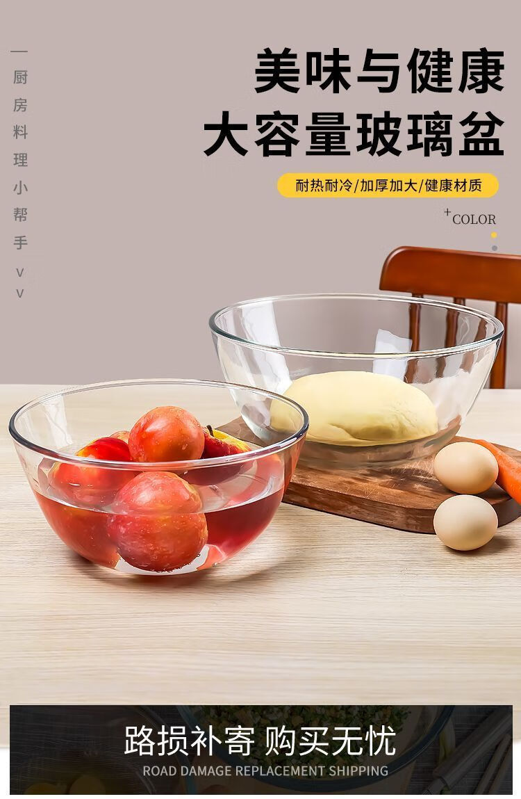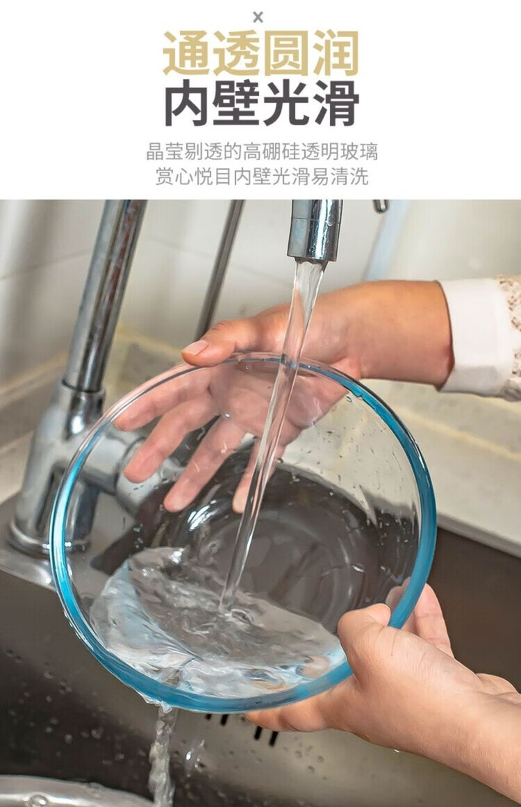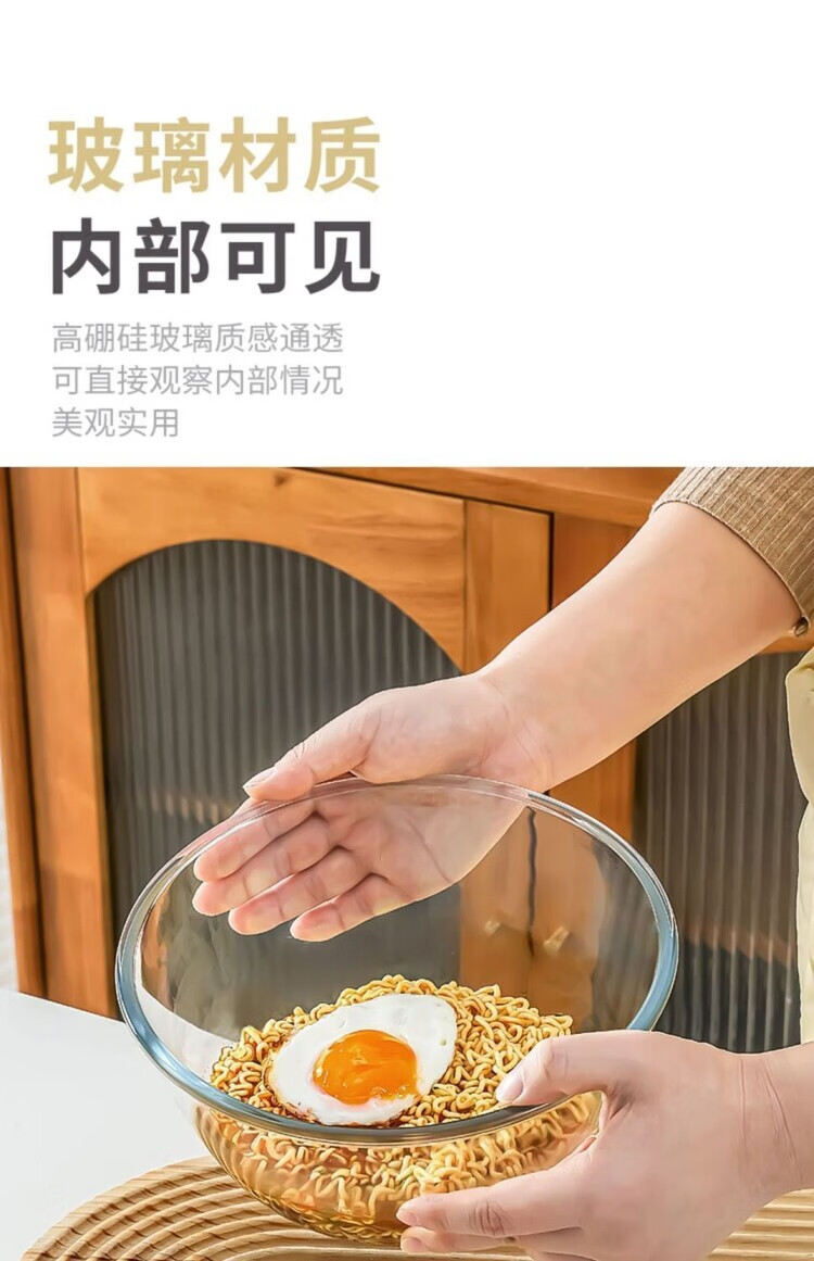 简漾高硼硅加厚大号沙拉碗汤碗汤盆耐热家用玻璃和面盆圆形打蛋玻璃盆 透明色2100ml面盆 升级款
