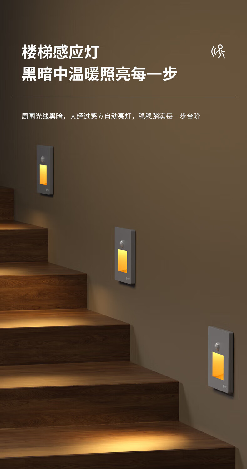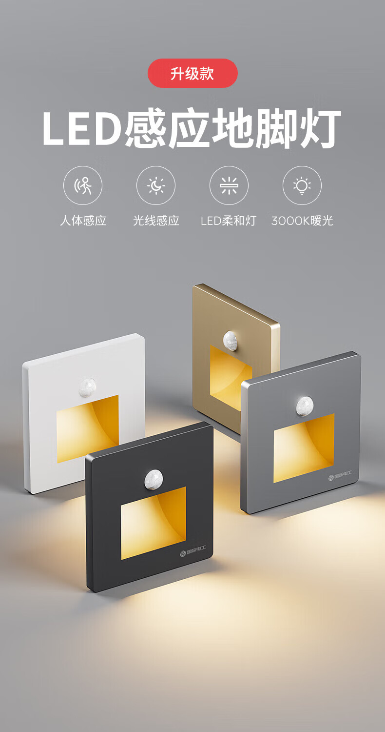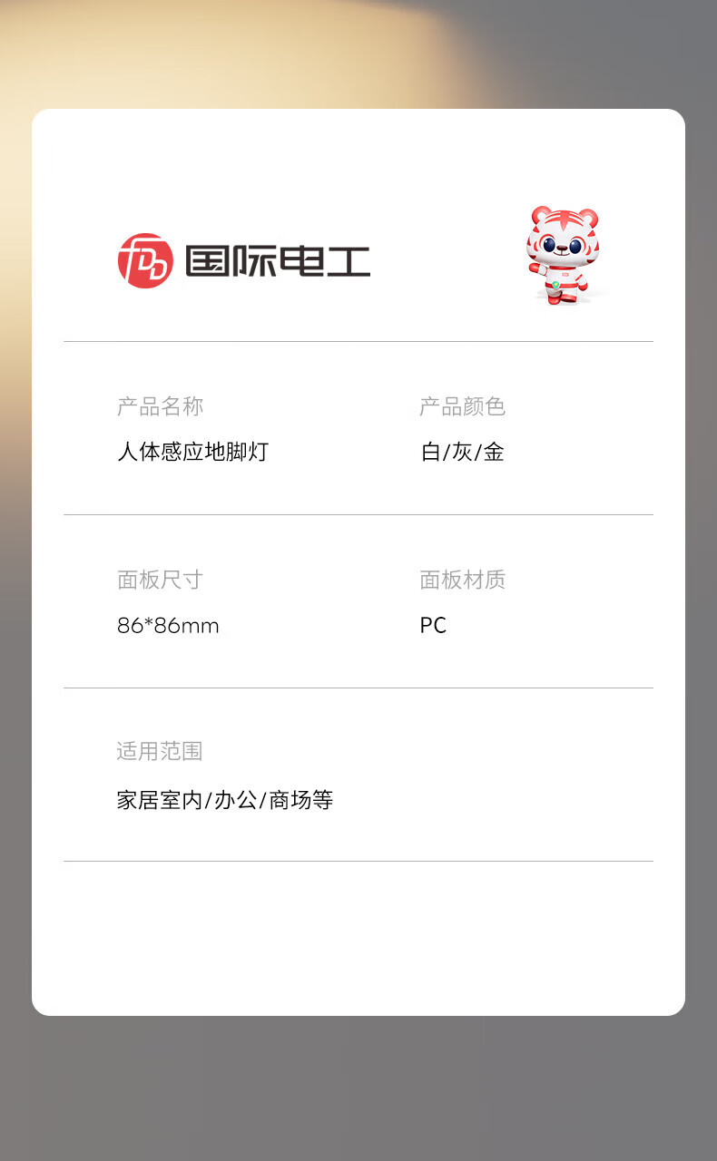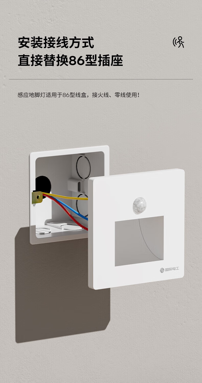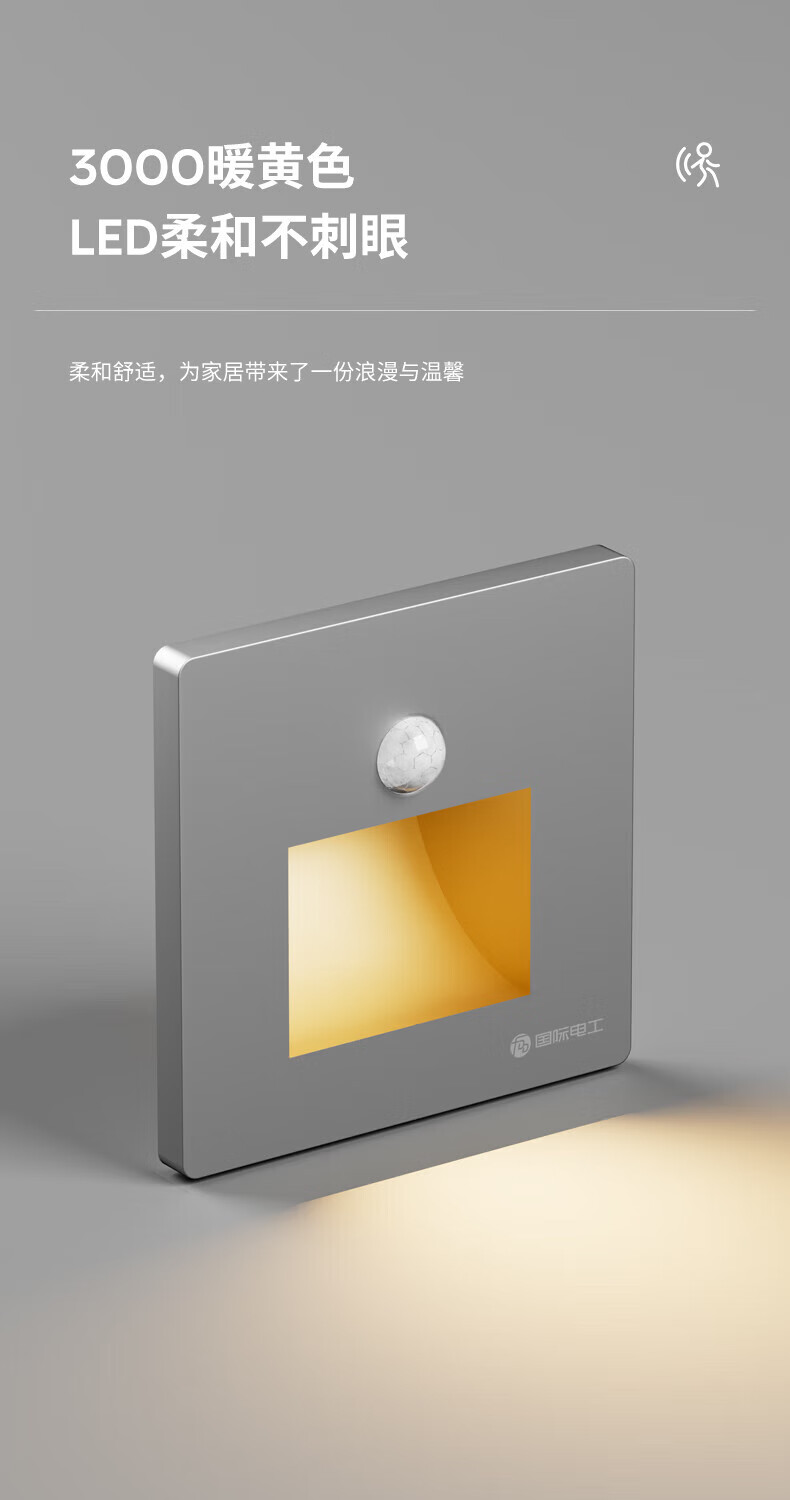 国际电工智能感应隐藏插座电工86型地脚灯带led小夜灯床头照明超薄墙壁 金色开关控制地脚灯 暖光
