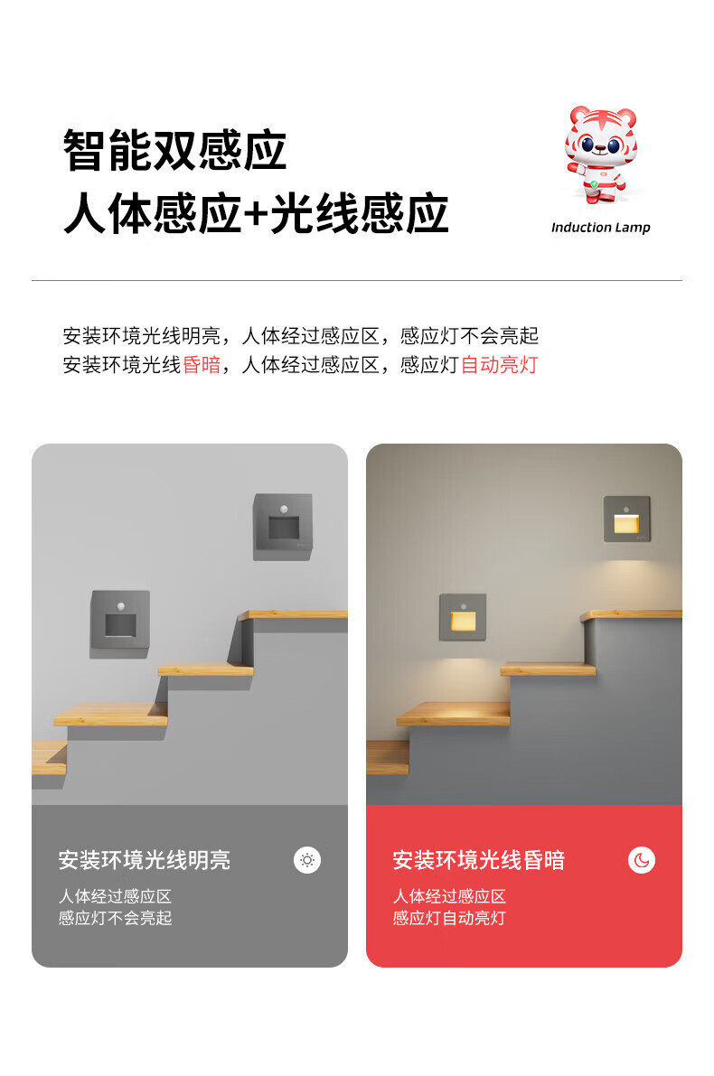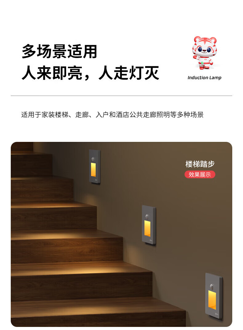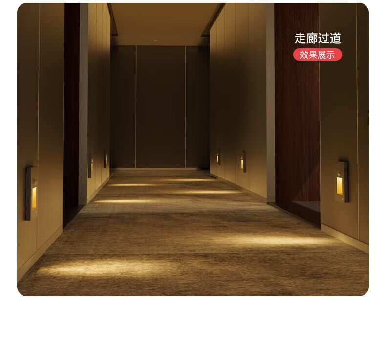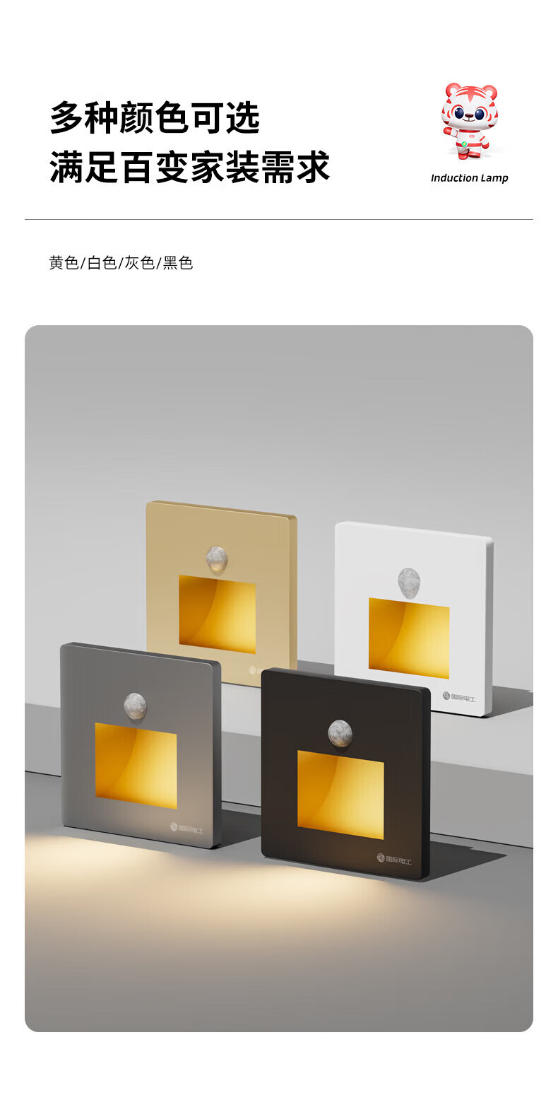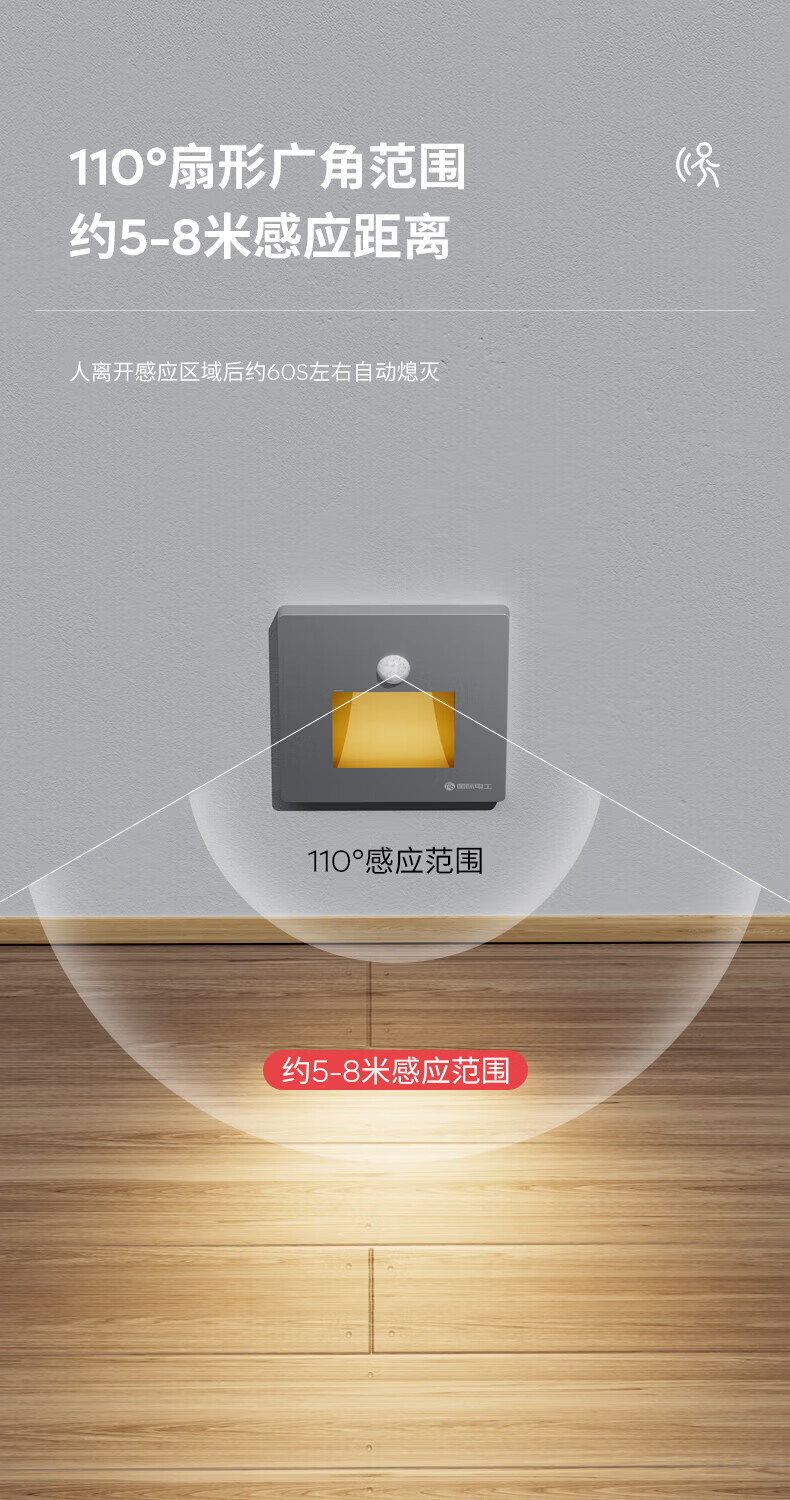 国际电工智能感应隐藏插座电工86型地脚灯带led小夜灯床头照明超薄墙壁 金色开关控制地脚灯 暖光