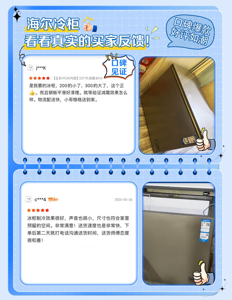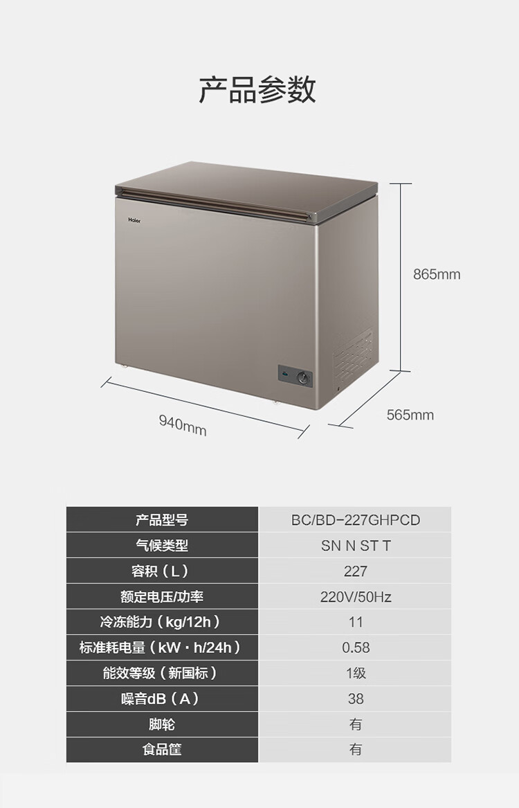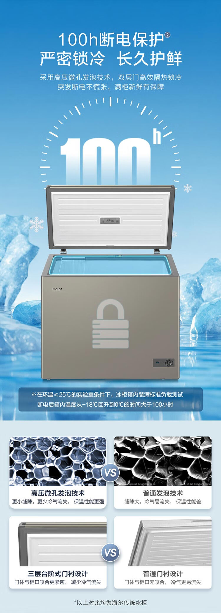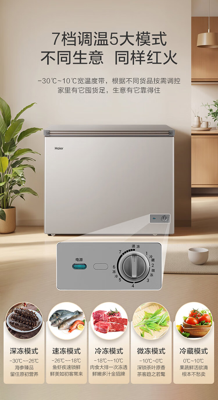海尔(Haier)227升单温低霜小冰柜家用商用冷藏柜冷冻柜两用冰柜小型冰箱小型冷柜宝蓝BC/BD-227GHPCD国家补贴