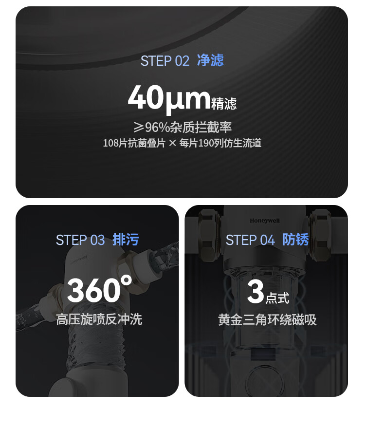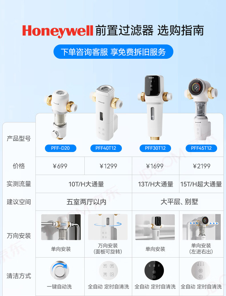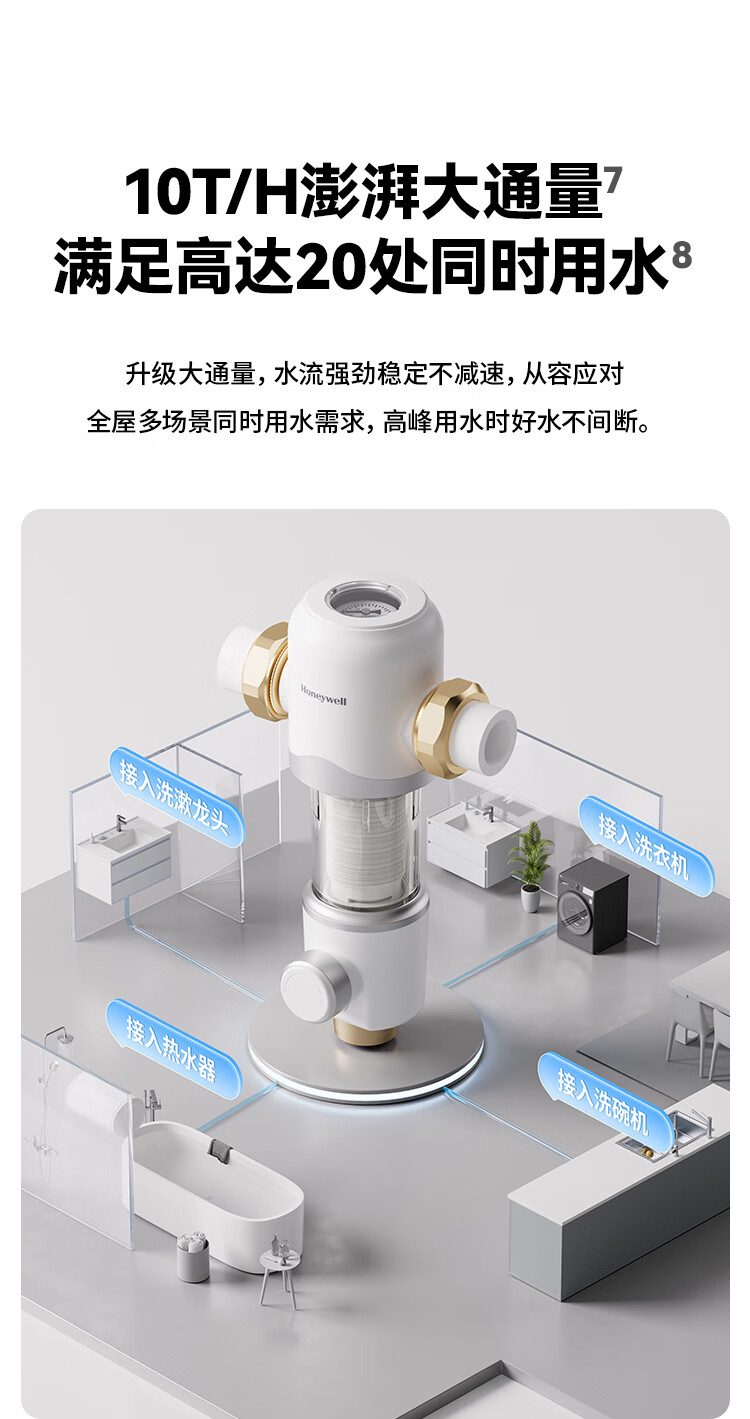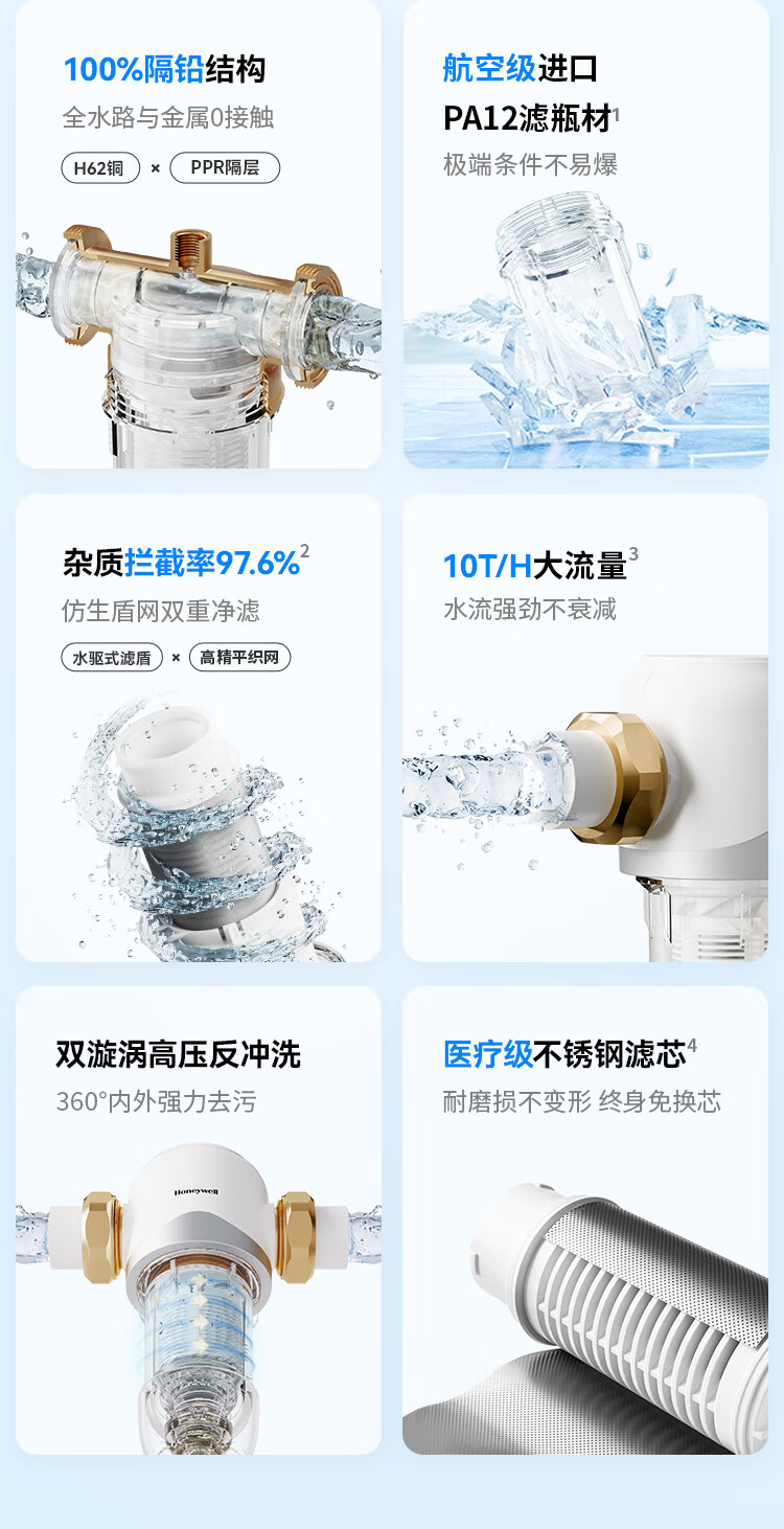 霍尼韦尔(Honeywell)前置过滤器 10T大通量反冲洗 母婴级净水器排行前十名 防爆全屋净水器厨房家用0铅0双酚A 国家补贴 滤盾过滤·10T