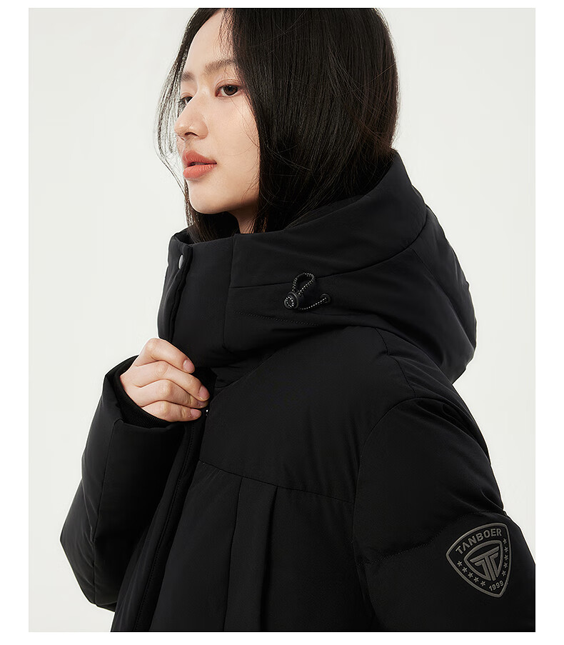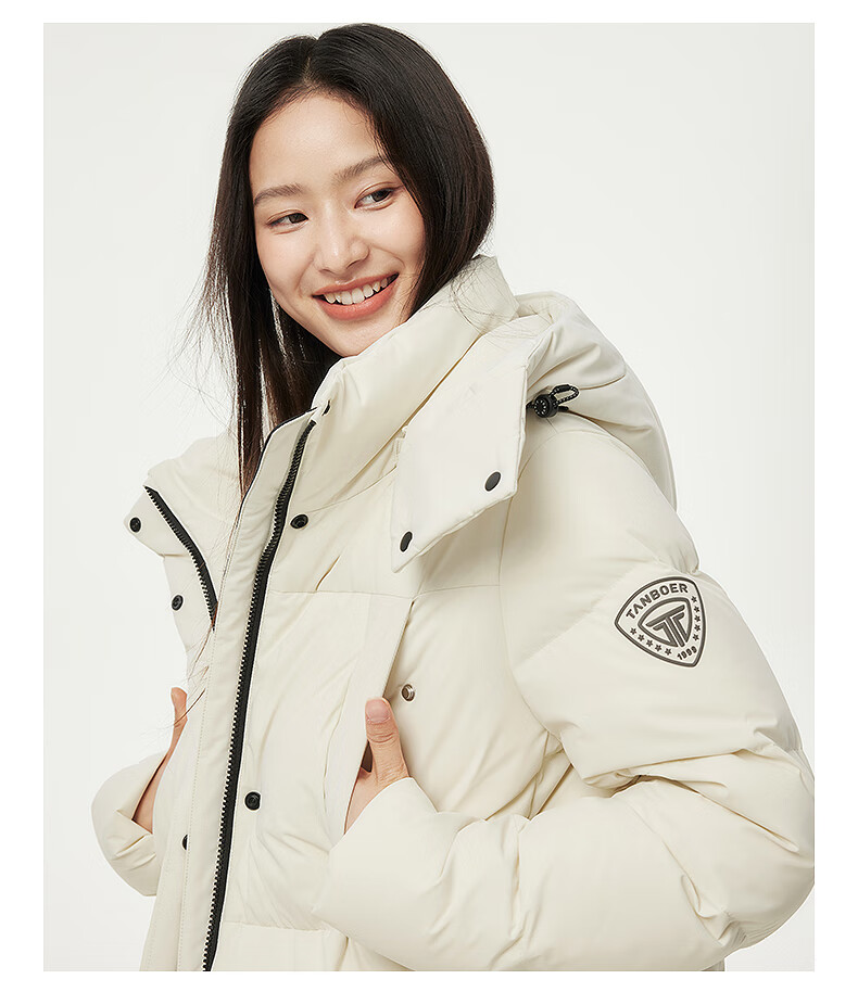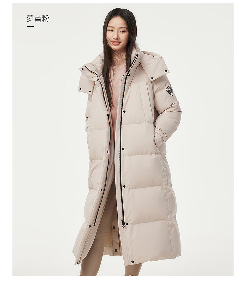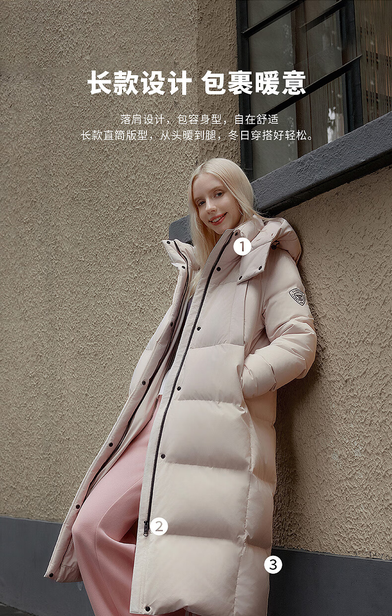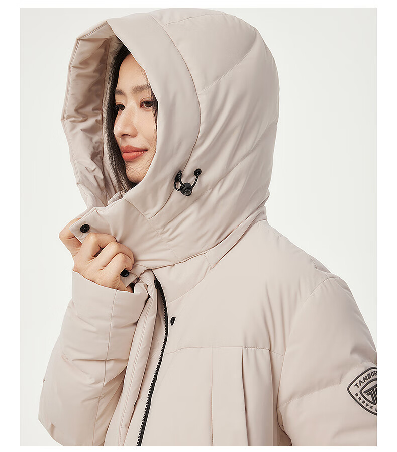 坦博尔羽绒服女中长款可脱卸帽时尚休闲保暖外套厚550836T 萝黛粉 160