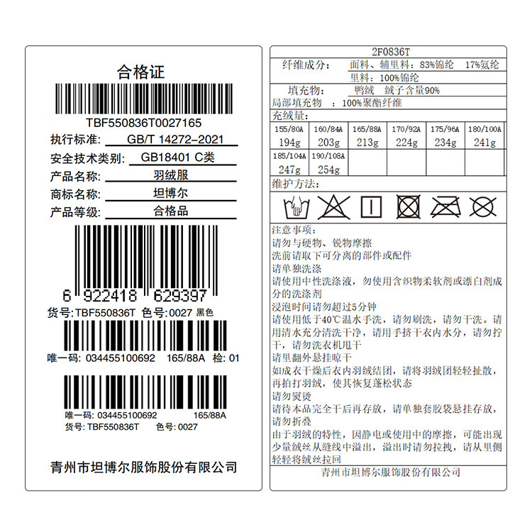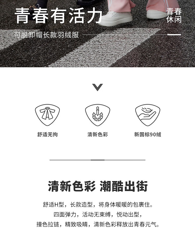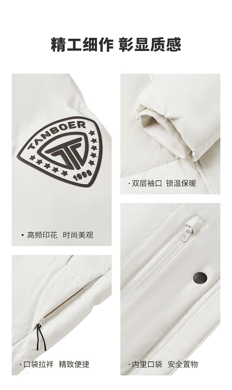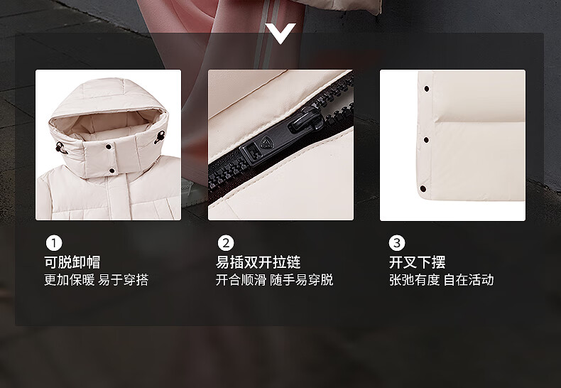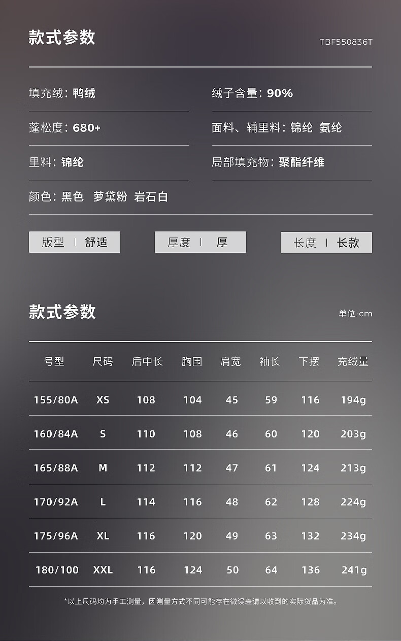 坦博尔羽绒服女中长款可脱卸帽时尚休闲保暖外套厚550836T 萝黛粉 160