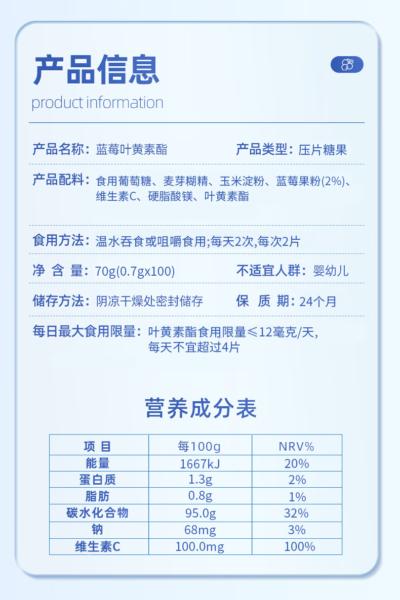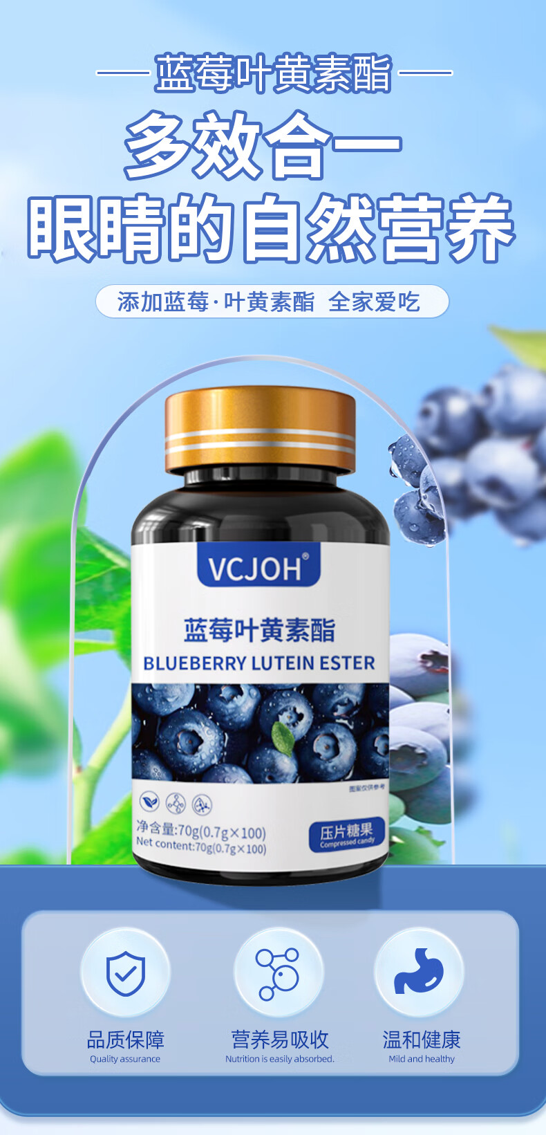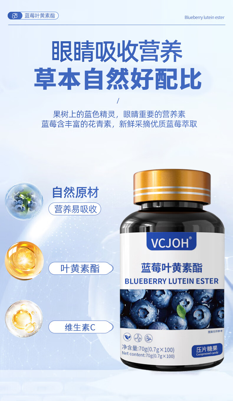 Hong Kong VCJOH Limited蓝莓叶黄素酯片儿童青少年学生中老年眼睛营养100粒/瓶大容量 100粒*5瓶 【囤货性价比】