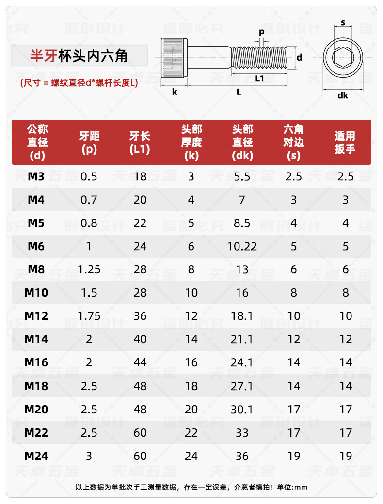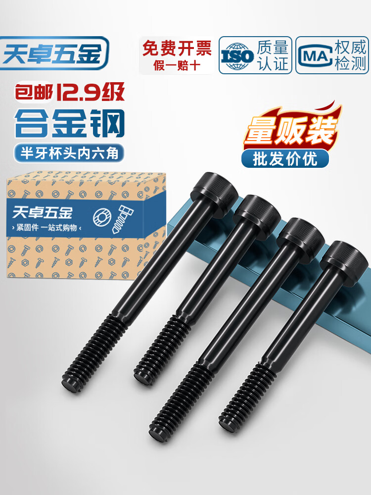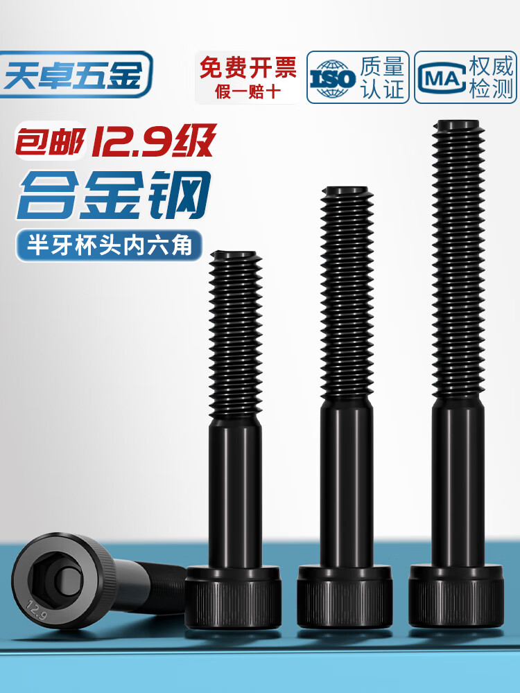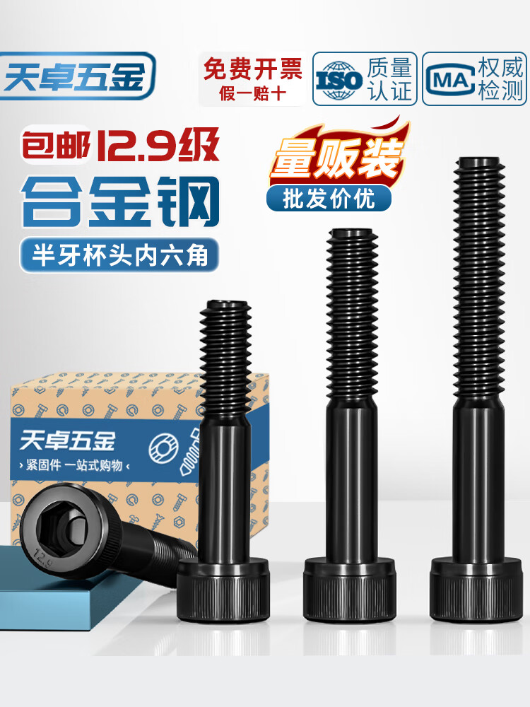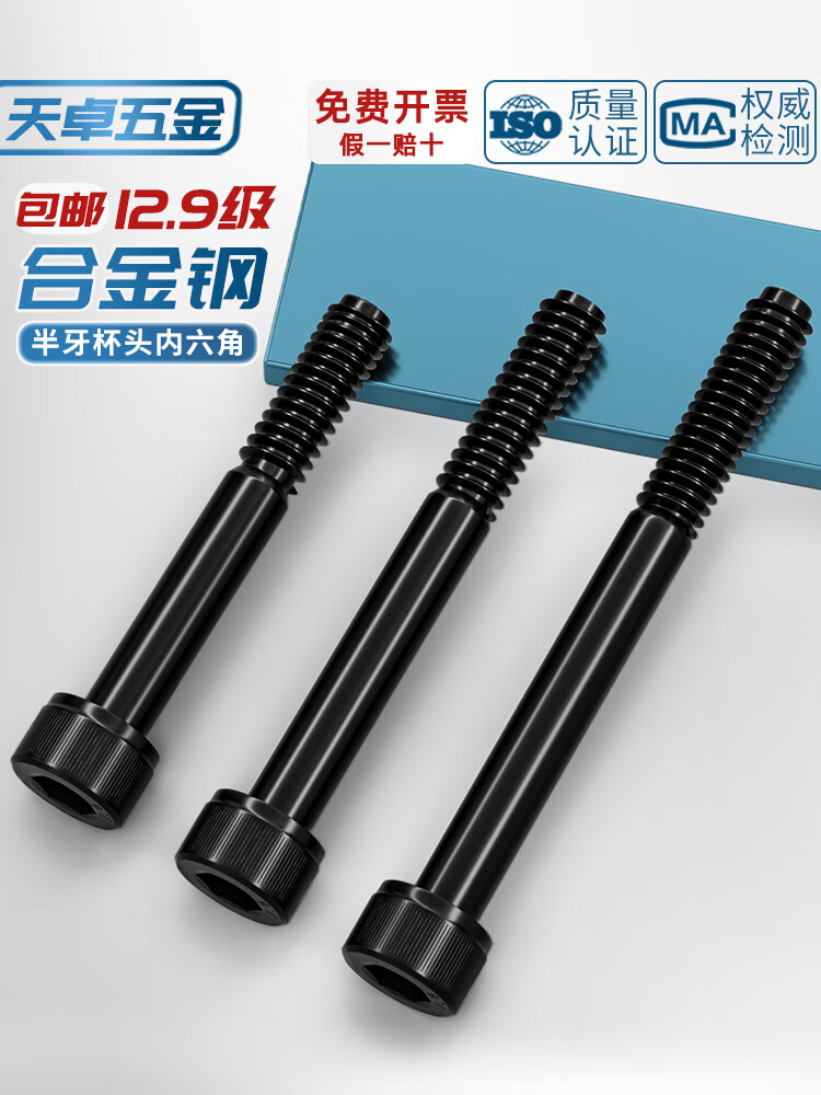 天卓五金半牙12.9级高强度内六角螺丝杆加长圆柱头螺钉M5M6M8M10M12M16M20 ---螺丝表层涂有【防锈油】---