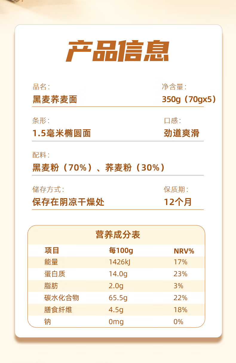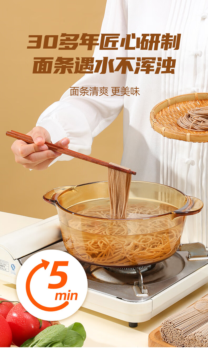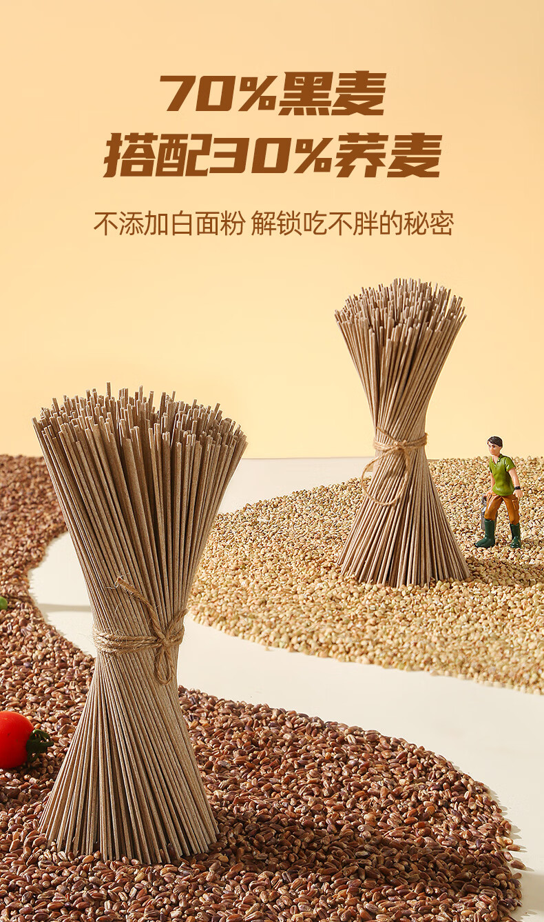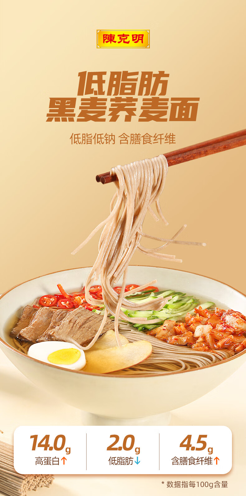 陈克明黑麦荞麦面5连包 非油炸健身代餐杂粮粗粮挂面低脂代餐70g*5