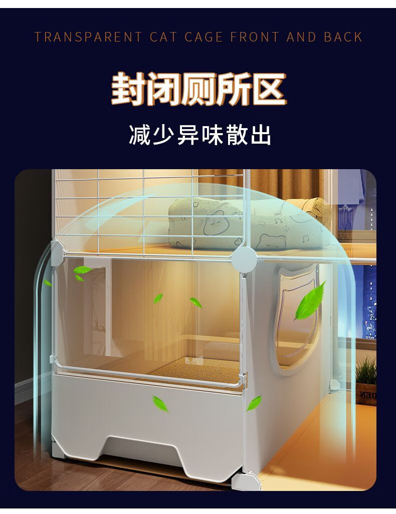 蔻丝猫别墅厕所一体超大空间猫笼子家用室内猫窝四季通用全景猫屋舍