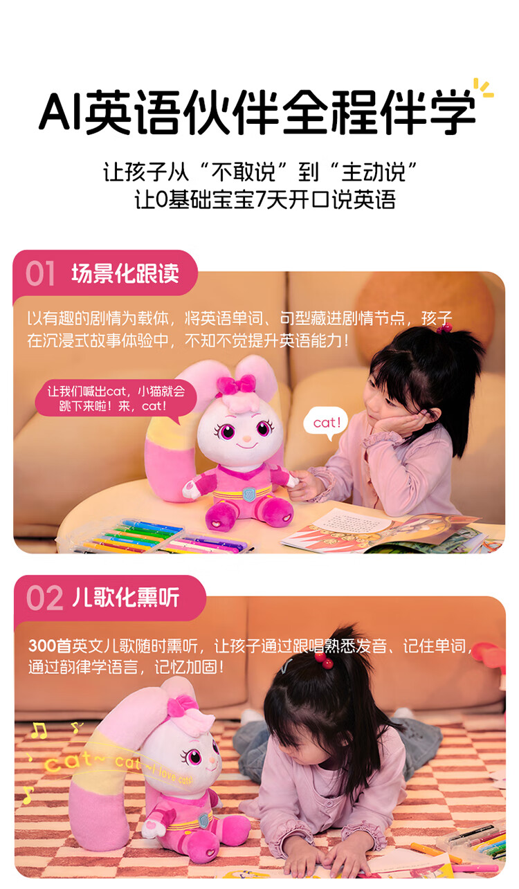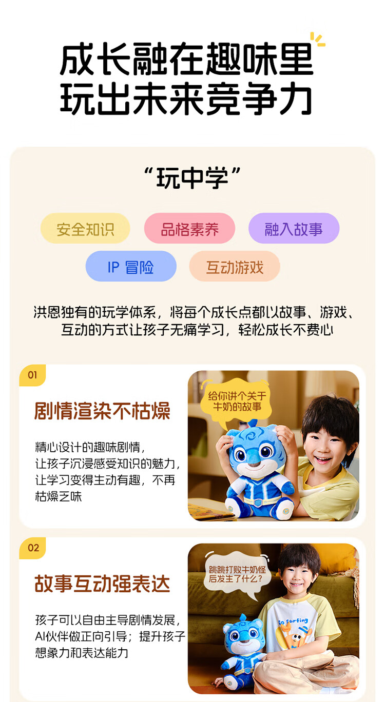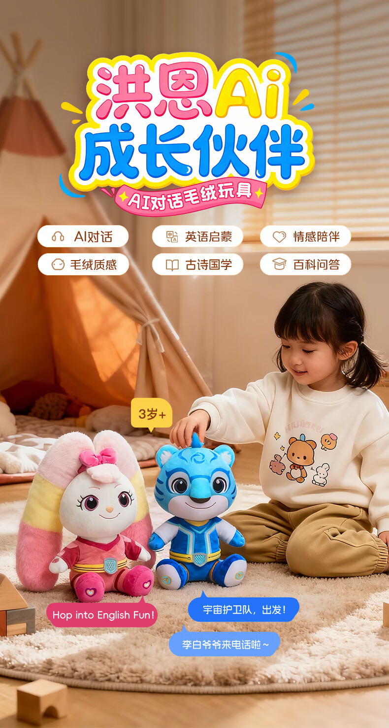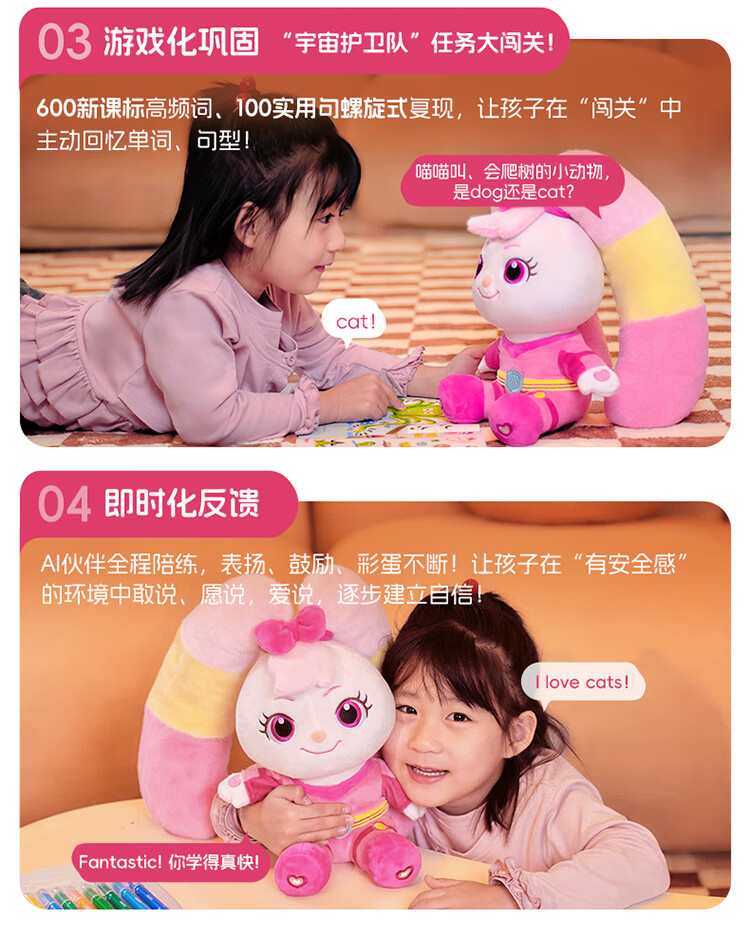 洪恩AI伙伴智能对话 毛绒玩偶玩具早教益智互动故事机生日圣诞礼物 彩虹兔