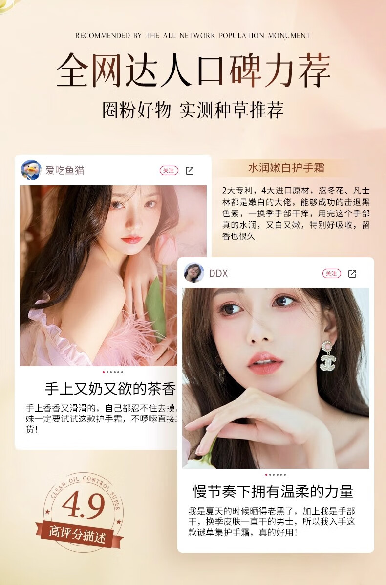谜草集护手霜香氛防裂干燥粗糙补水滋润手膜保湿嫩白去死皮男女可用 【清冷白茶味】水漾香氛护手霜*1瓶
