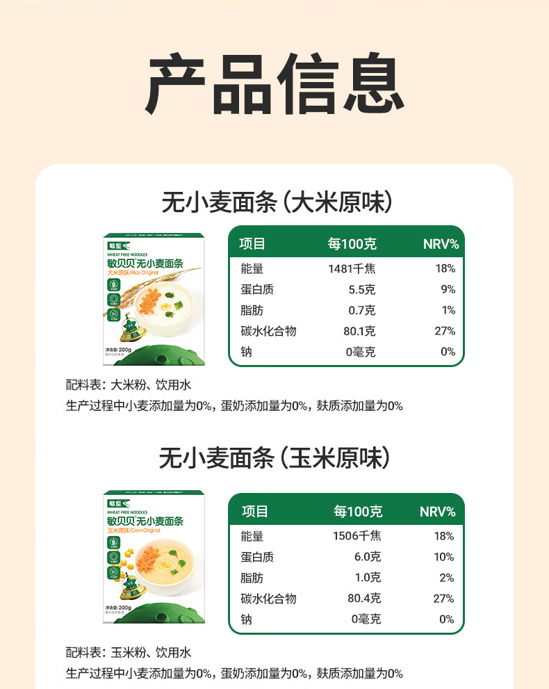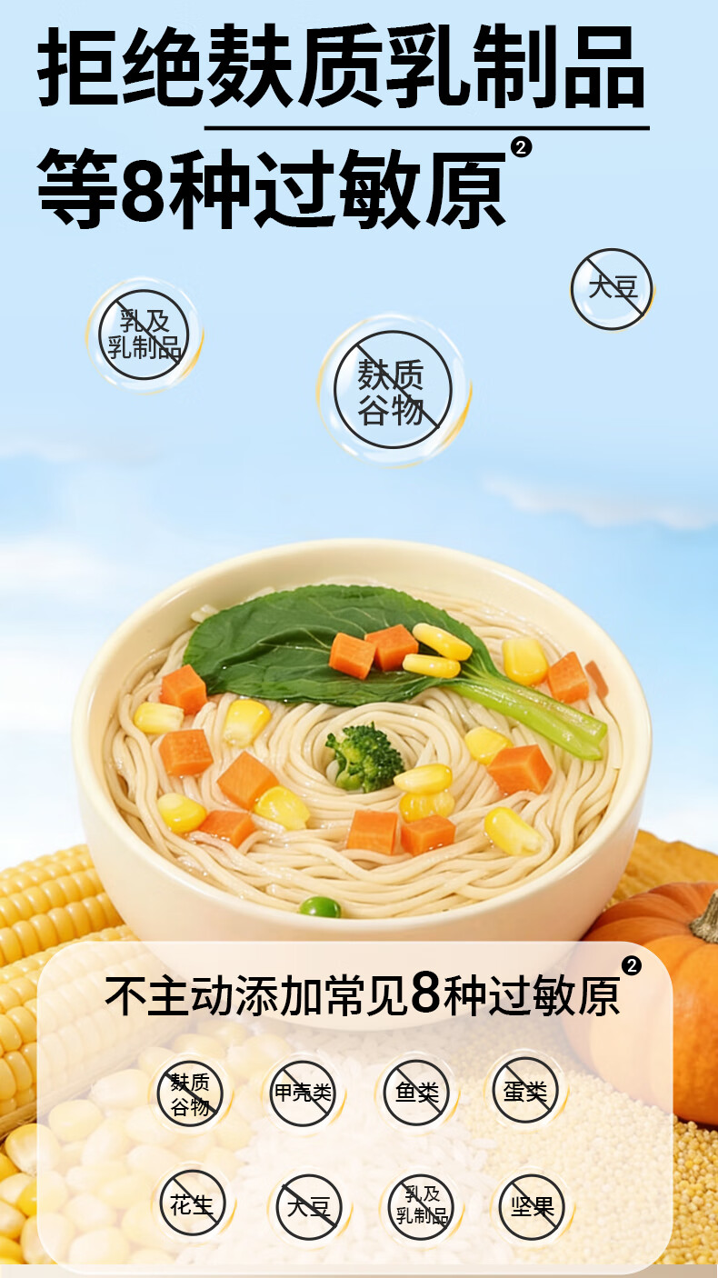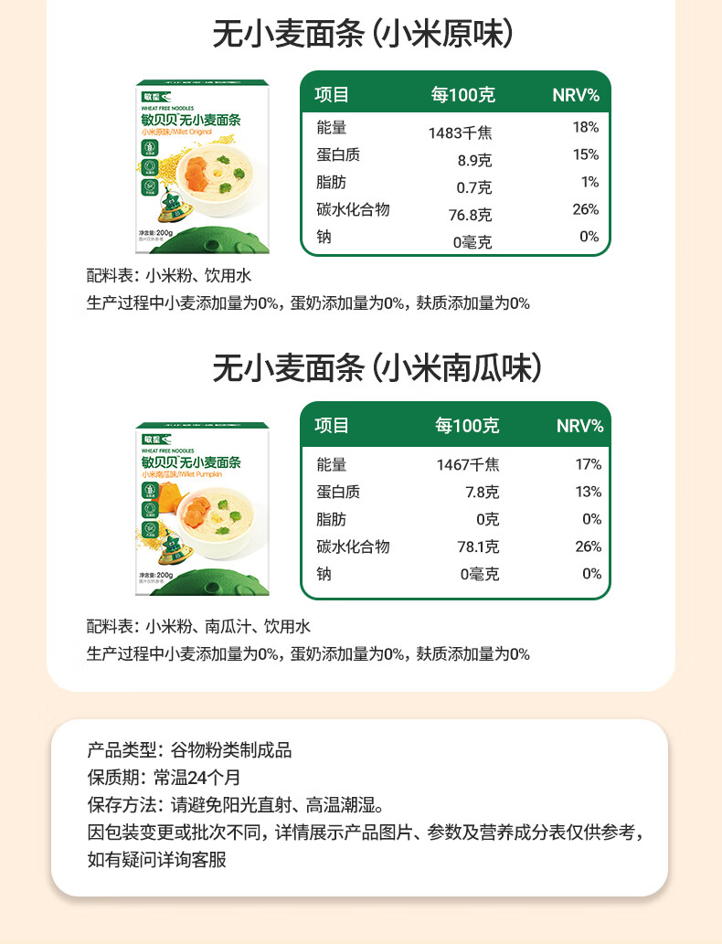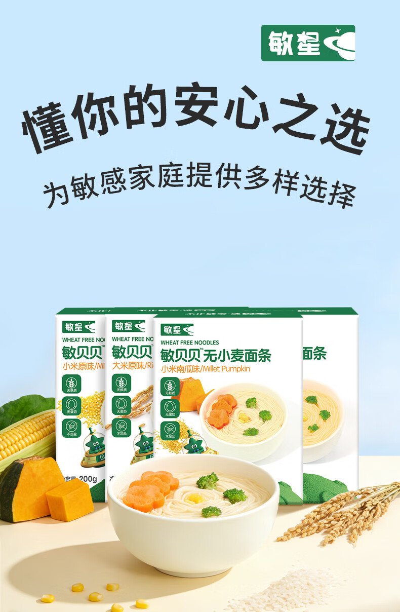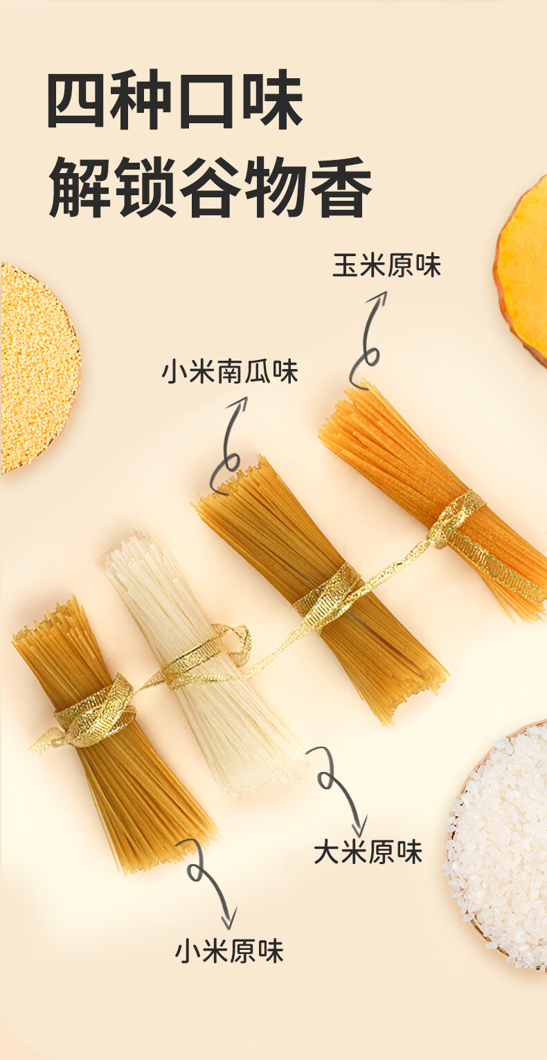 敏星大米小米玉米面条无小麦麸质不加鸡蛋牛奶盐送婴儿童宝宝辅食谱 小米原味200g*1盒