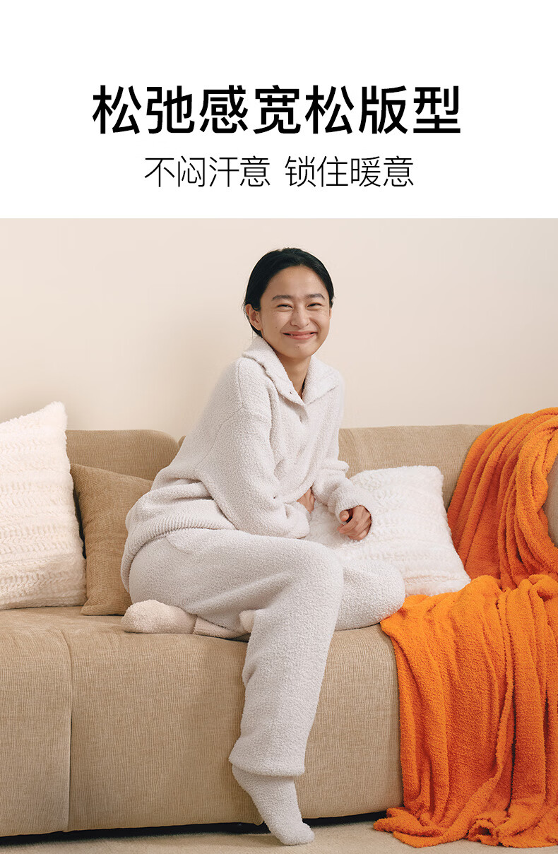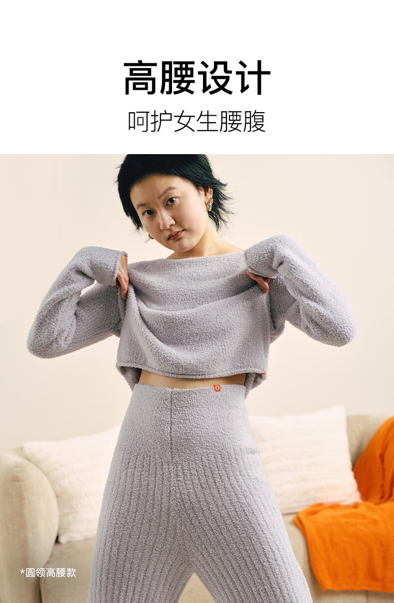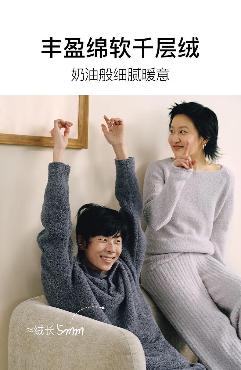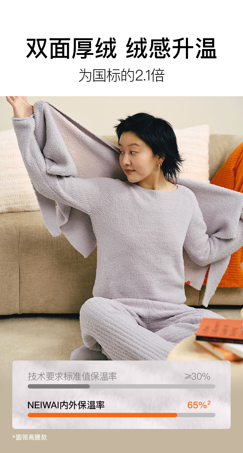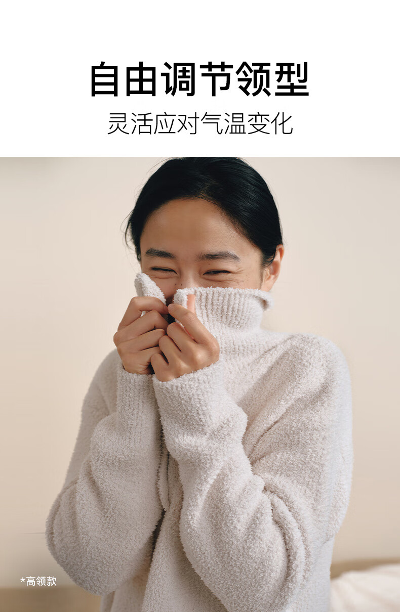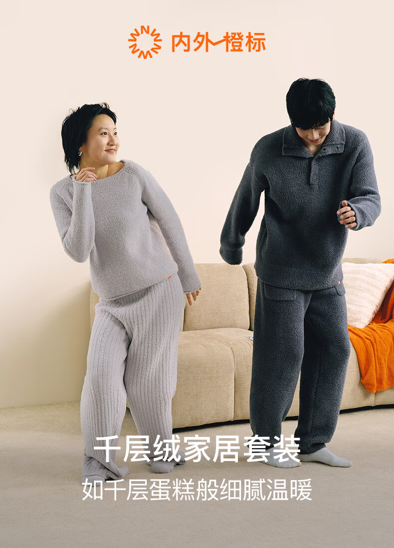 内外橙标情侣千层绒圆领高领睡衣家居服套装可外穿保暖半边绒圣诞礼物 女士高领-桦木米 L (女120-130斤,男130-150斤)
