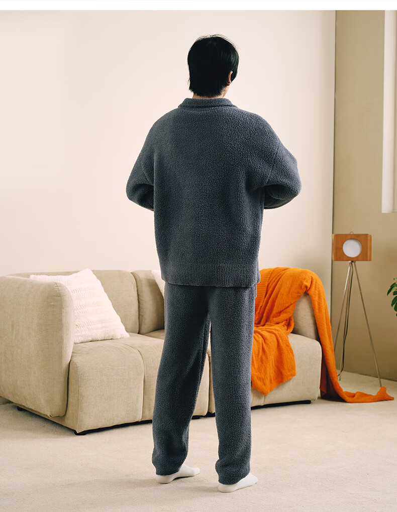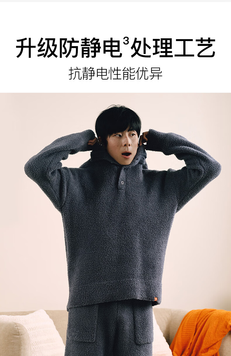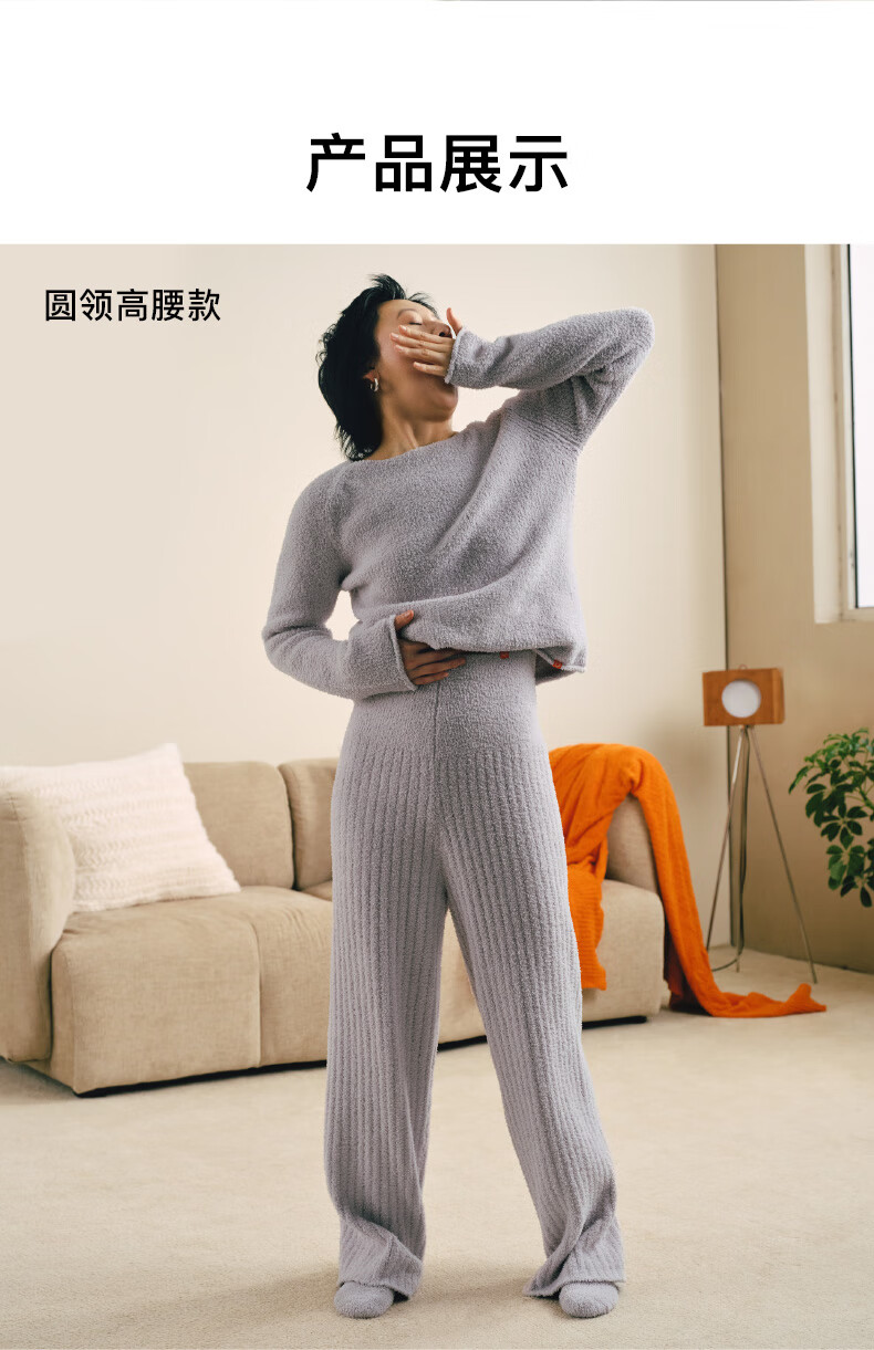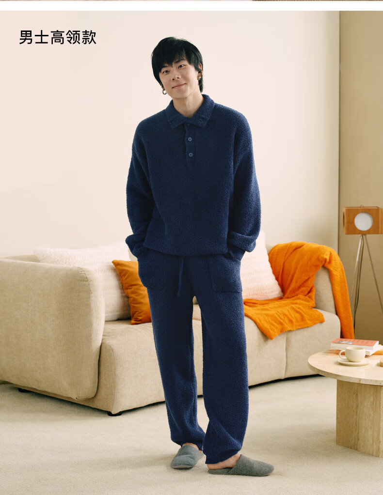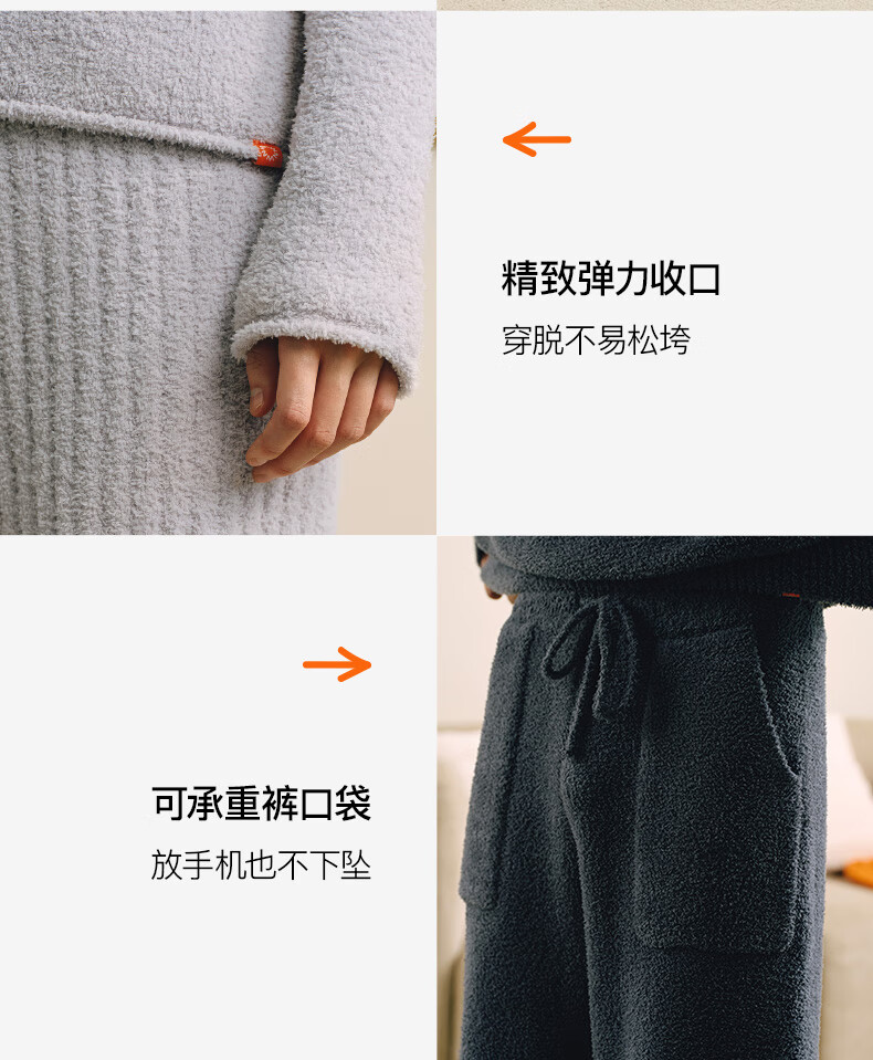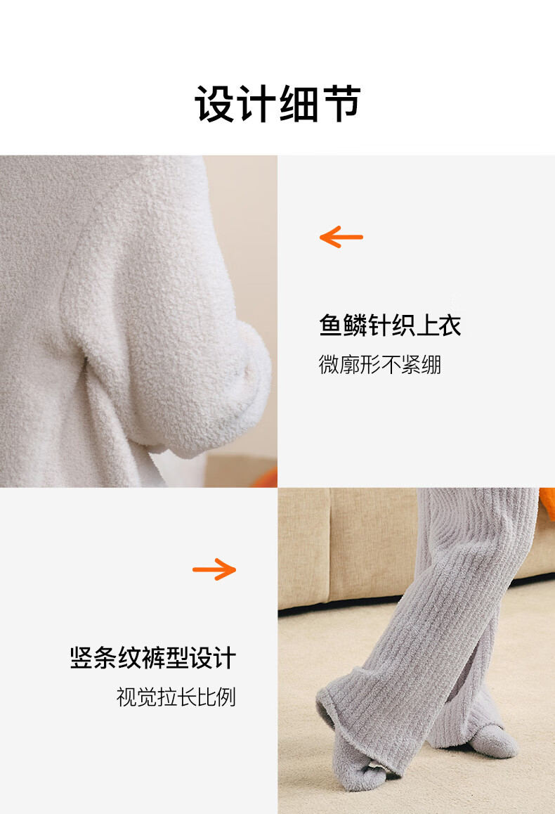 内外橙标情侣千层绒圆领高领睡衣家居服套装可外穿保暖半边绒圣诞礼物 女士高领-桦木米 L (女120-130斤,男130-150斤)