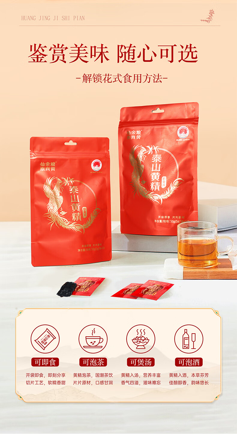 仙余粮泰尚黄泰山黄精即食片茶黑芝麻丸 九蒸九晒男士滋补中药材泡酒独立包装 3袋凤鸣黄精即食片 10袋*3袋