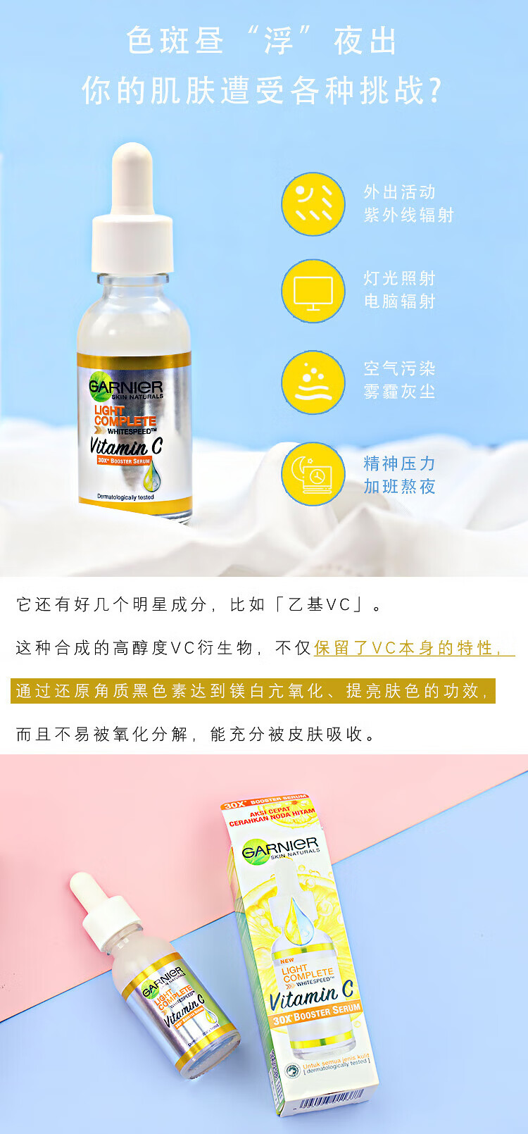 卡尼尔(Garnier)泰国377嫩白提亮嫩肤精华液瞬白烟酰胺vc毛孔收缩淡化痘印 身体乳400ml